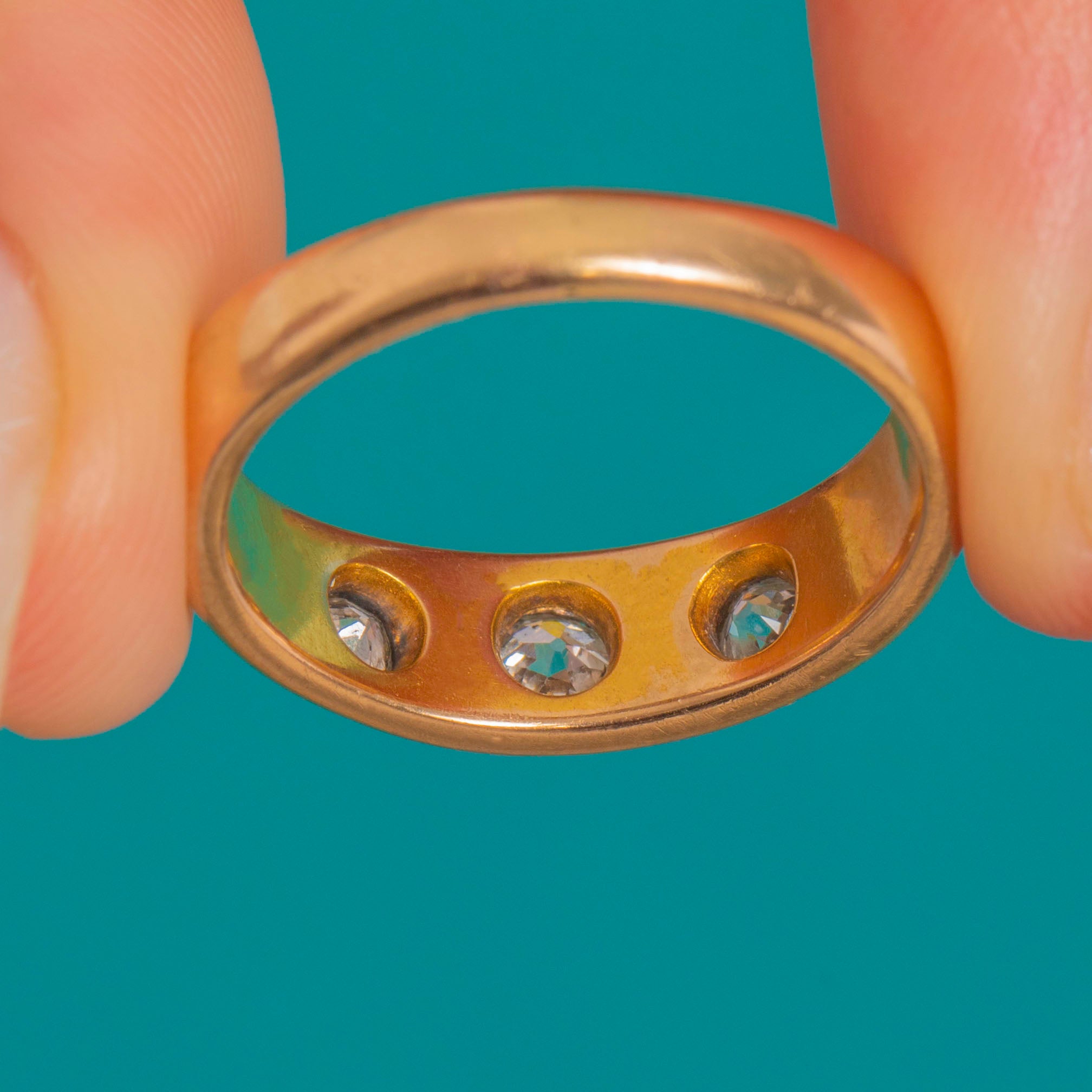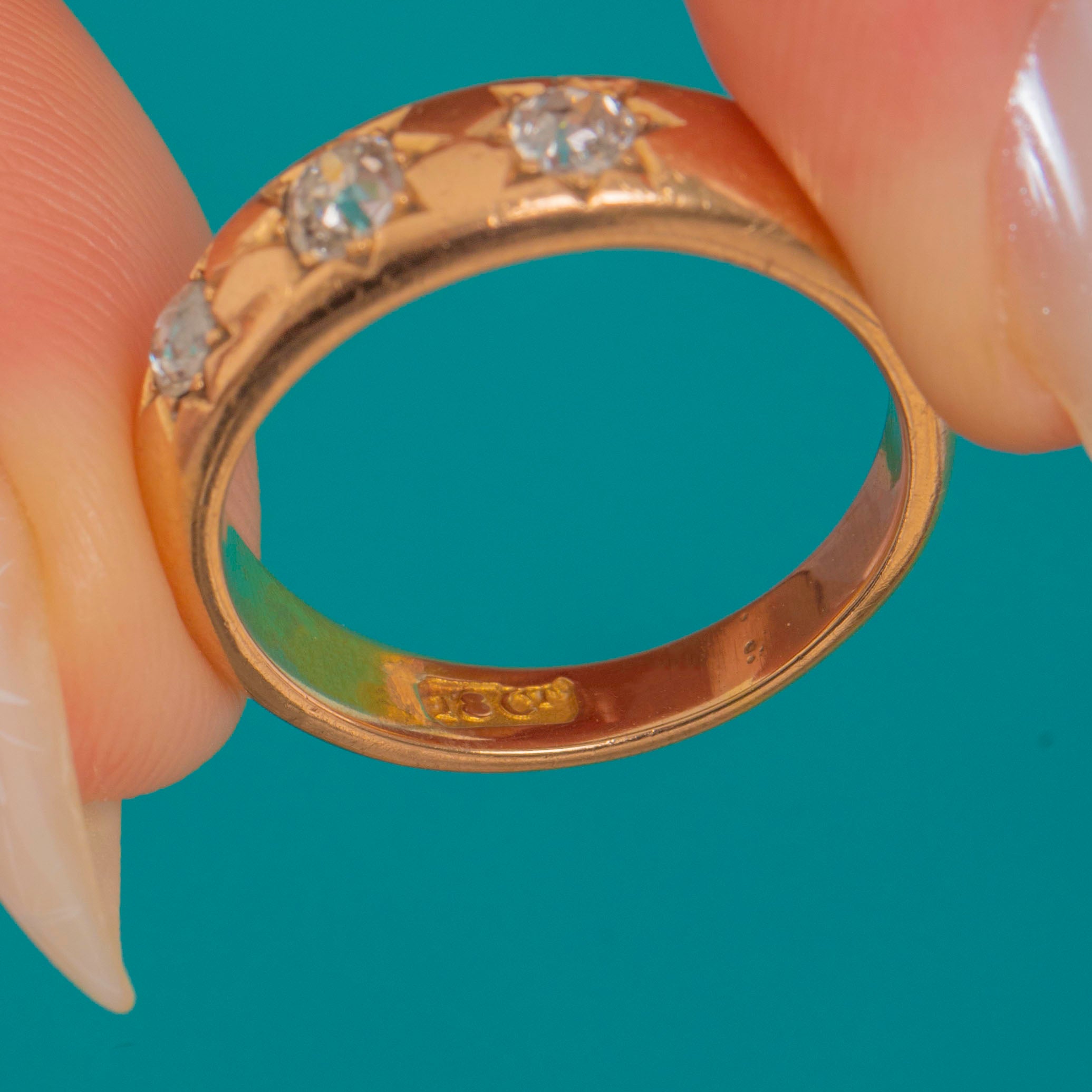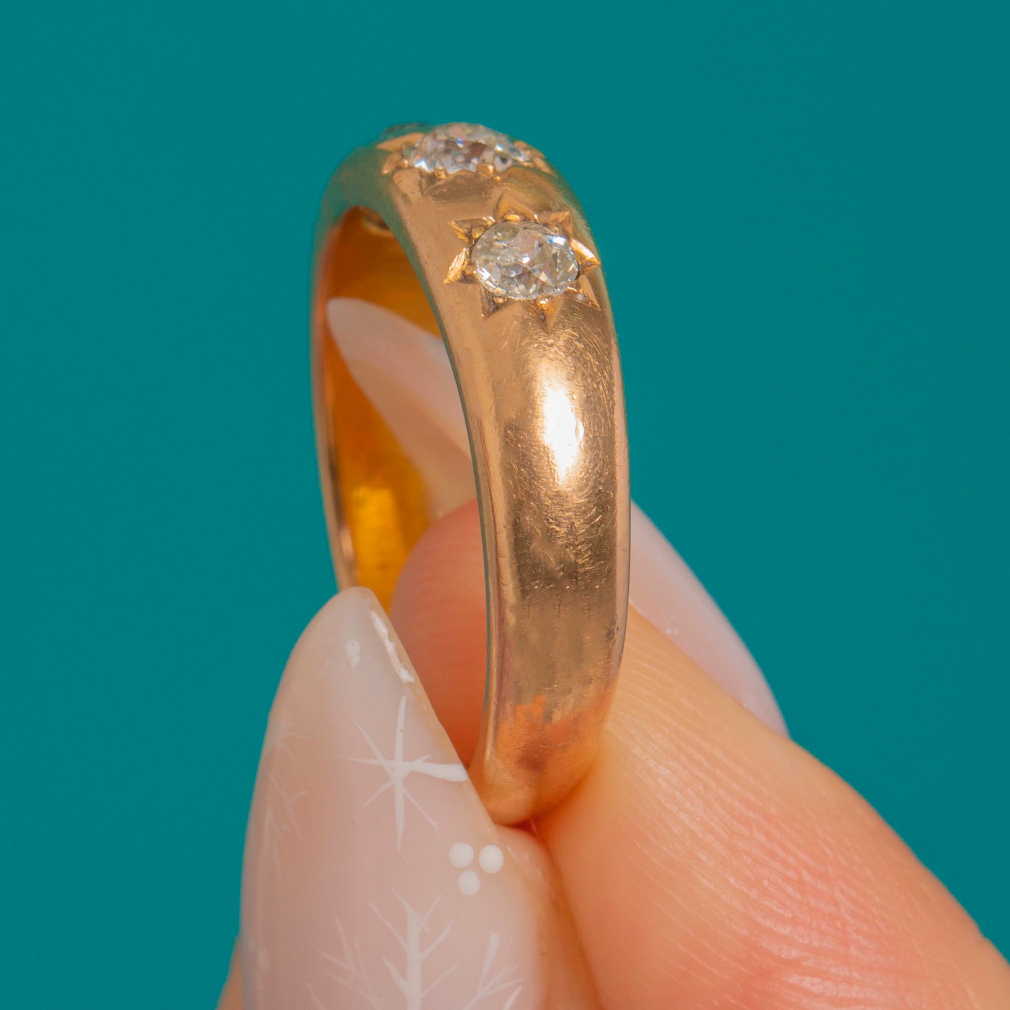 A beautifully timeless Victorian gypsy ring, crafted in warm 18ct Gold and set with three sparkling Old Mine Cut Diamonds totalling approximately 0.50ct. The star settings are such a signature detail of the era — protective, practical, and endlessly charming.