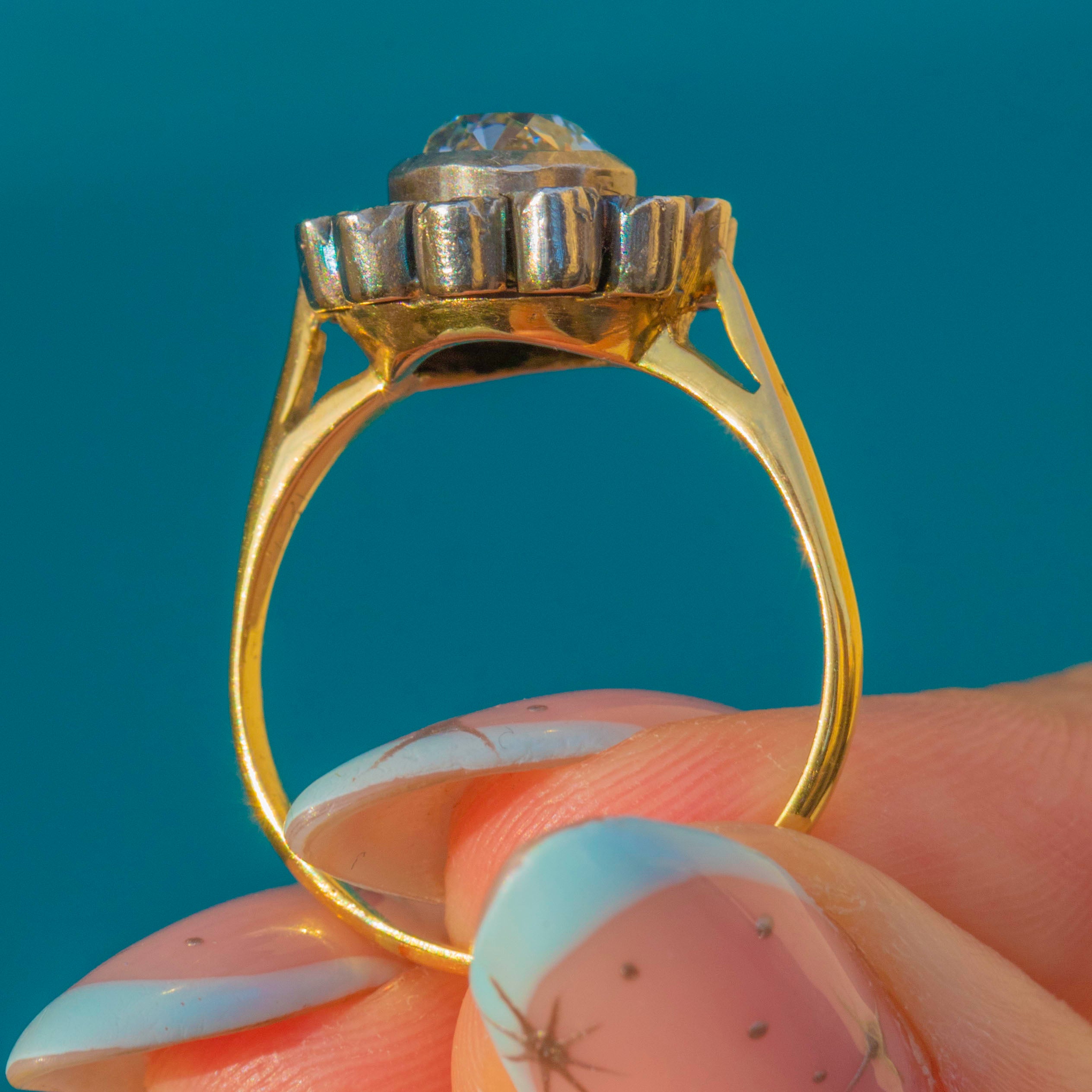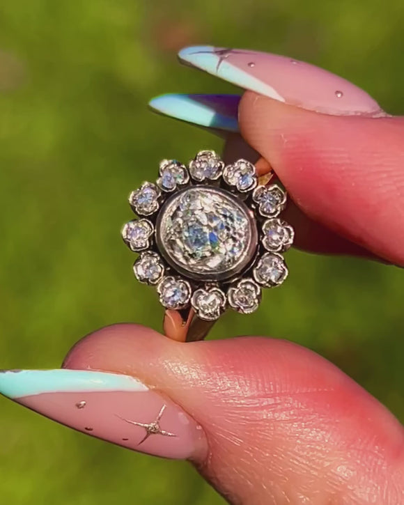 1.35ct Antique 18ct Gold Old Mine Cut Diamond Cluster Engagement Ring