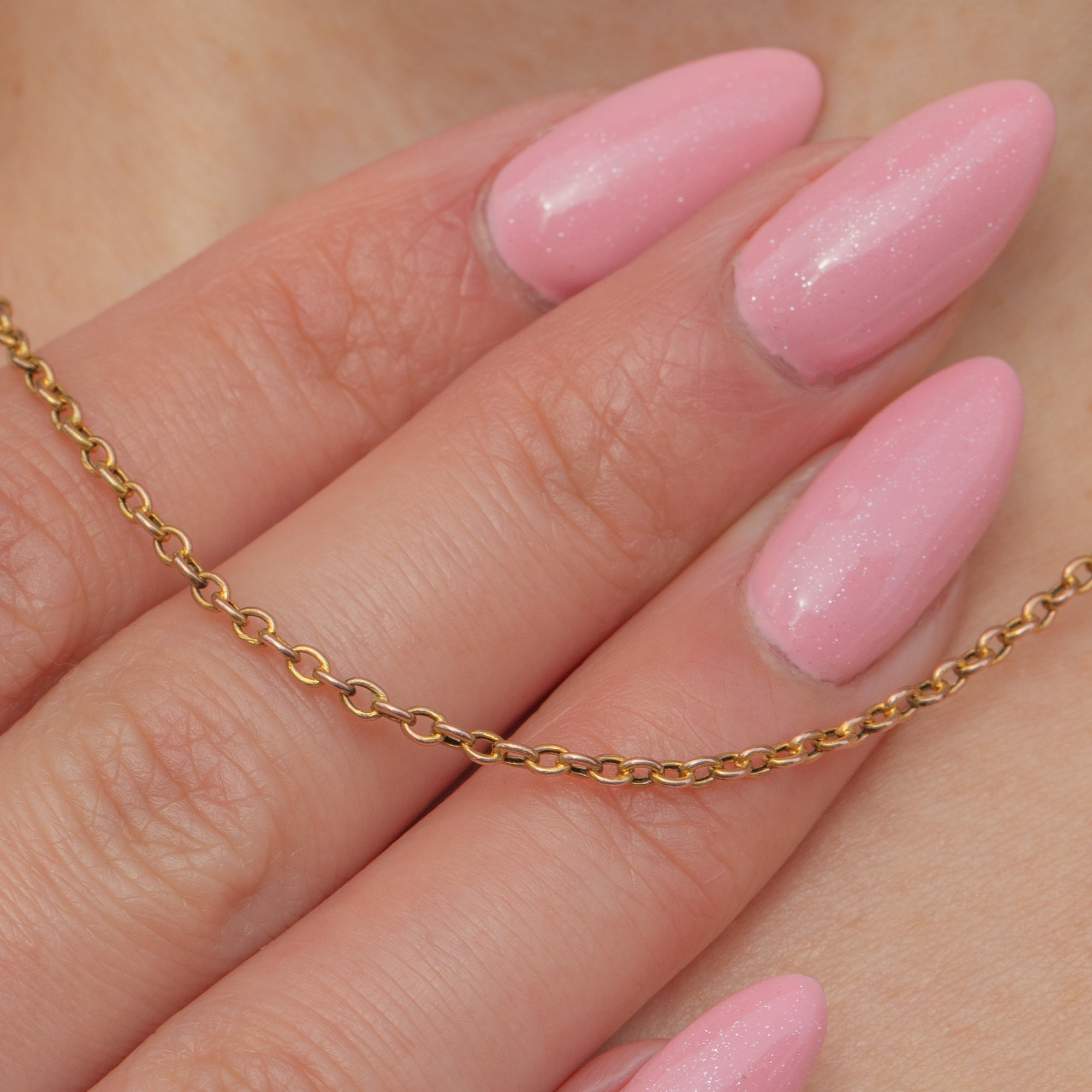 This 14.5" antique 9ct Gold skinny pendant chain is the perfect everyday staple. Victorian Gold chains are beloved for their elegance and versatility—and she’s no exception. Ideal for suspending your favourite dainty pendants or layering effortlessly into your neck stack, she brings understated charm to any look.