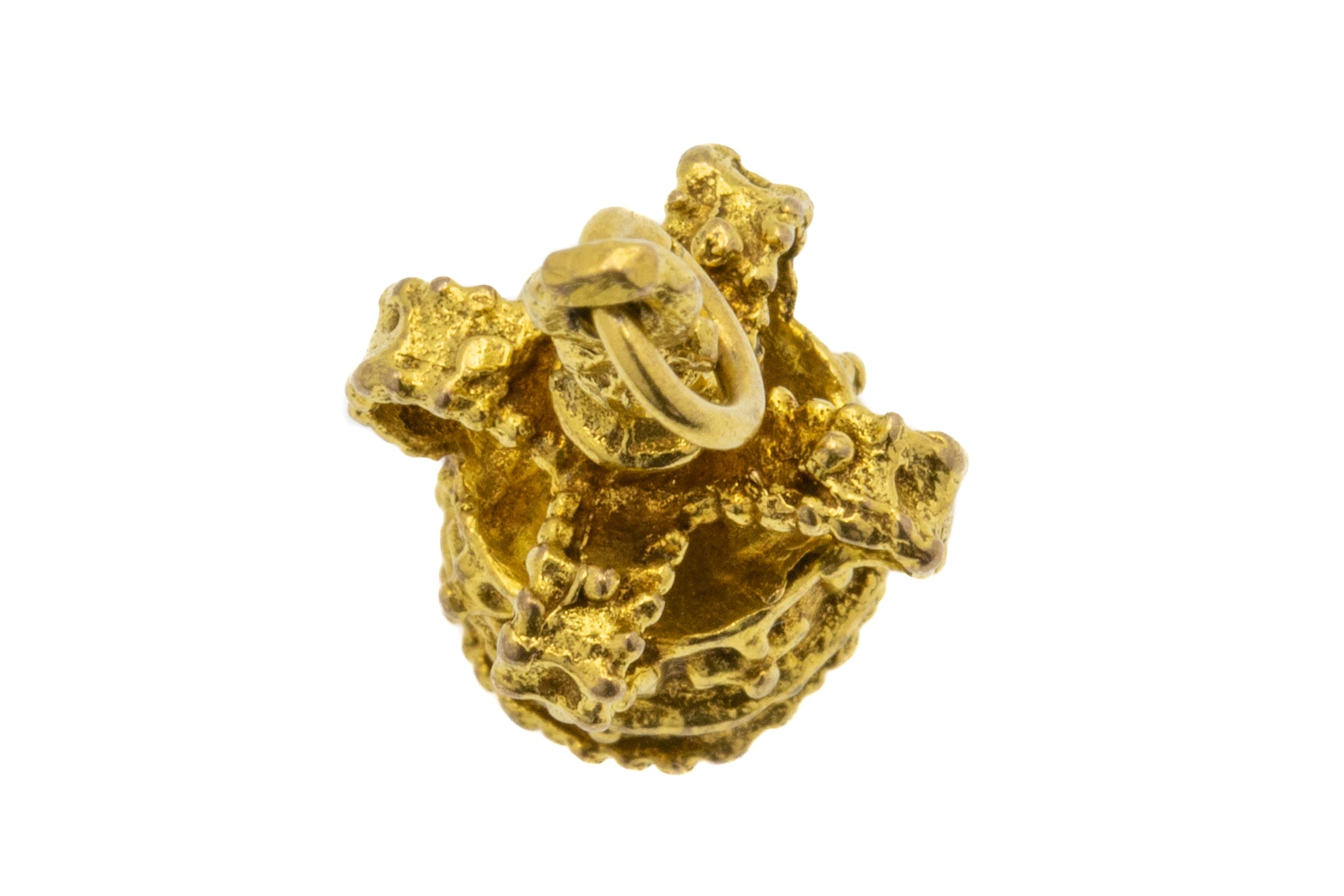EXCELLENT. A glorious 14ct Gold crown charm pendant in excellent condition! She has amazing fine detailing throughout, with a jump ring for easy. The crown has kept its shape tremendously well, and the Golden hue has remained splendid! There is very little wear overall, making this the perfect piece for anyone looking for a touch of royalty.