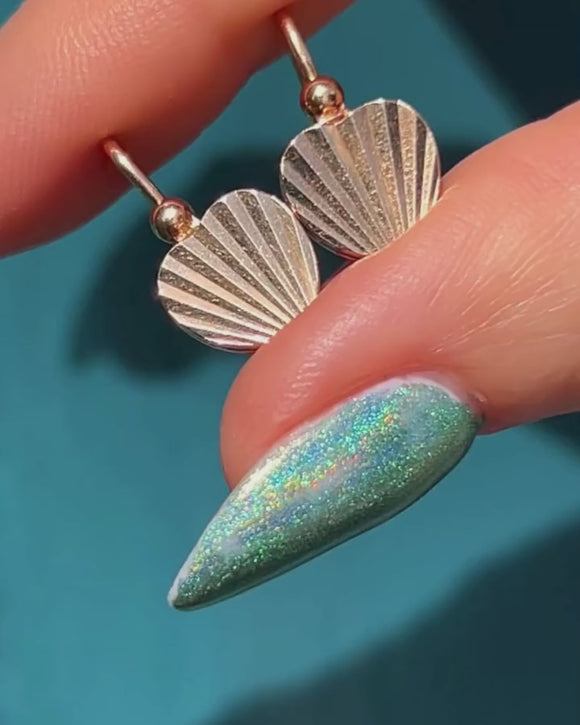 If you're looking for the perfect pair for daily wear, then look no further than these cute 14ct Gold heart Dormeuse earrings! Crafted from solid 14ct Gold, each heart boasts striking ridged details that catch the light beautifully.