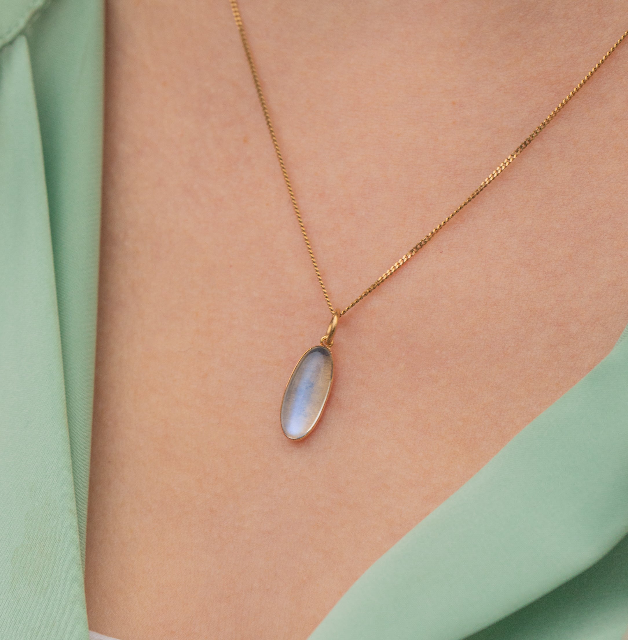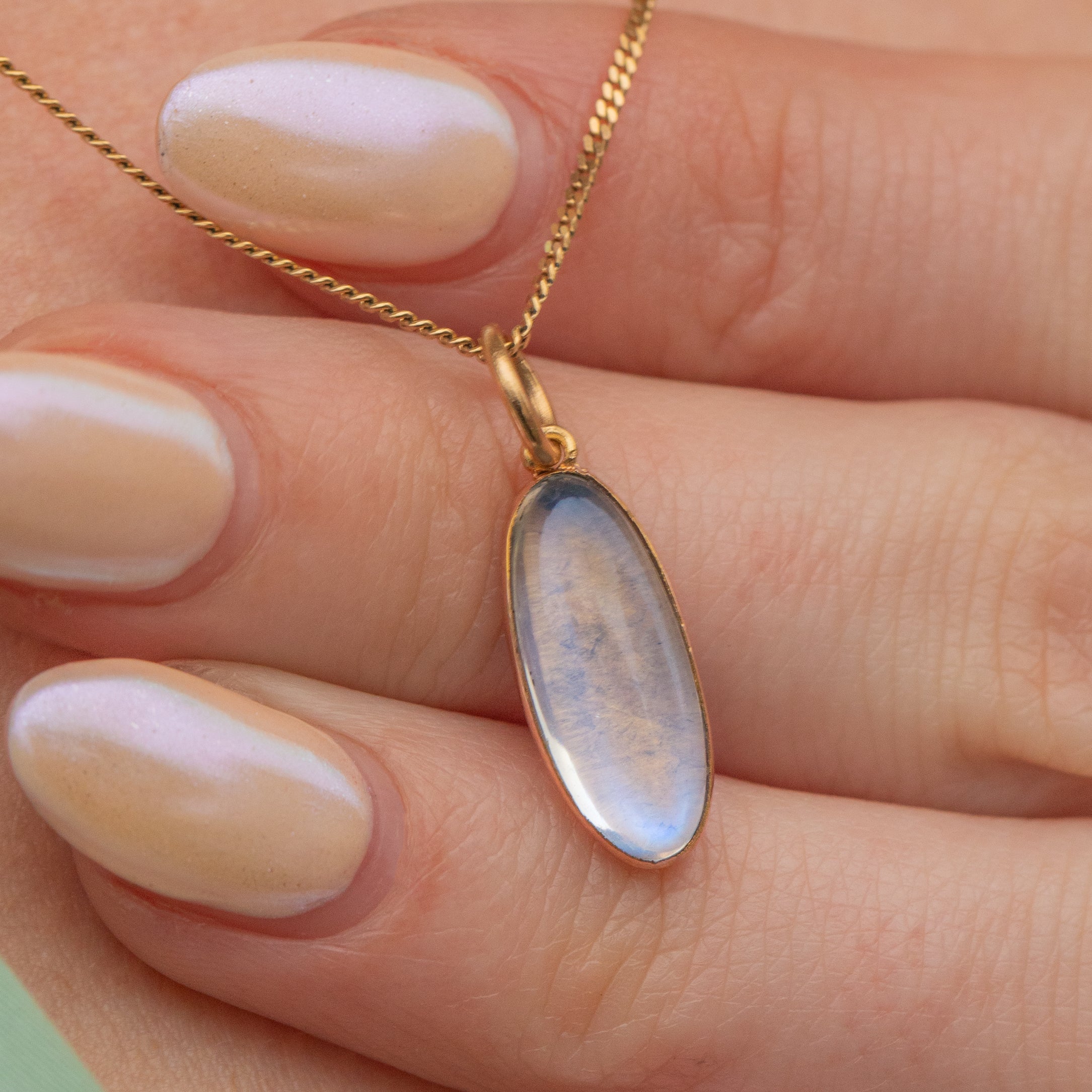 The cabochon cut of the stone offers a smooth and polished finish, reminiscent of an otherworldly feeling that transports you back in time. This Victorian Moonstone pendant truly embodies the magic of antique jewellery and has stood as a testament to the skilled craftsmanship of a bygone era