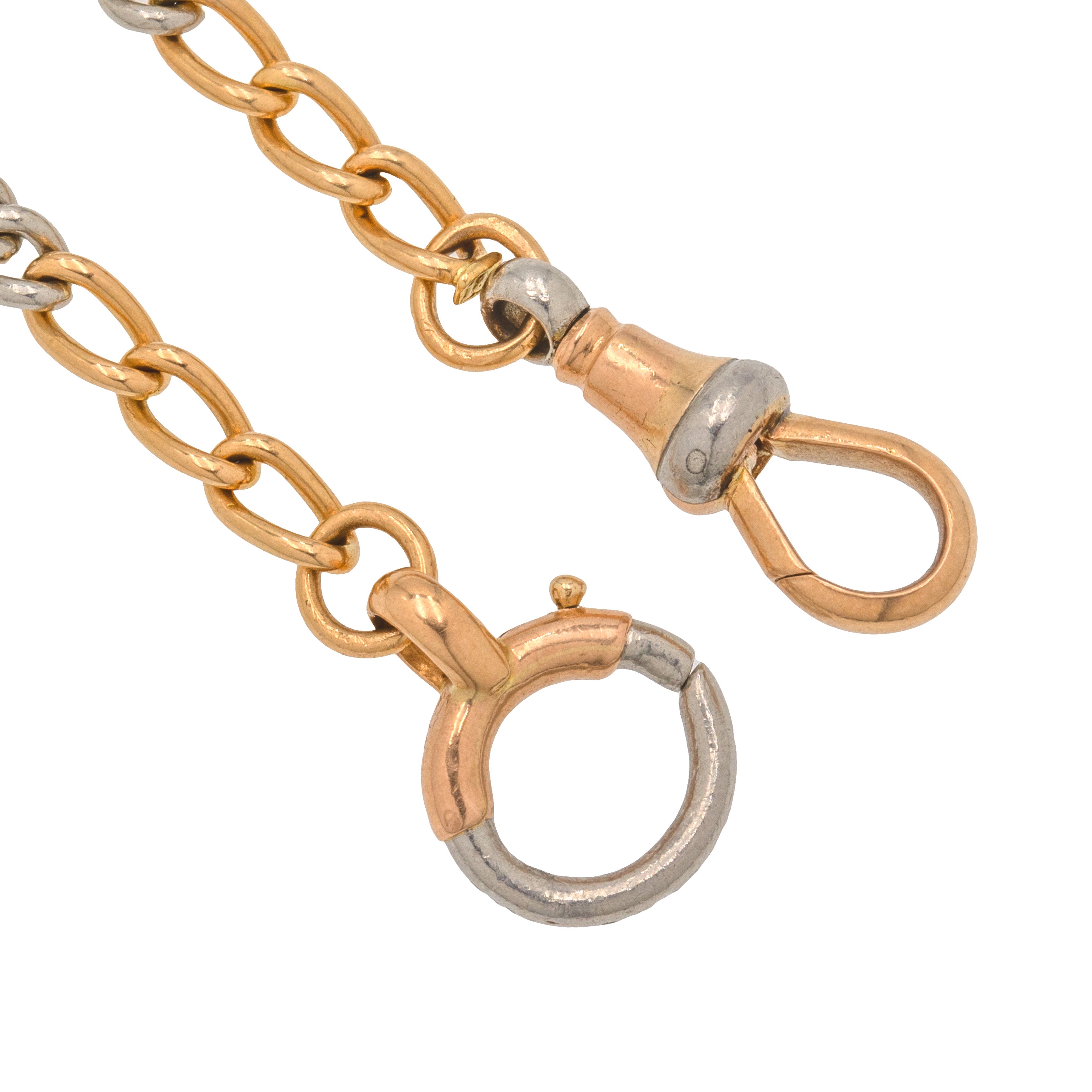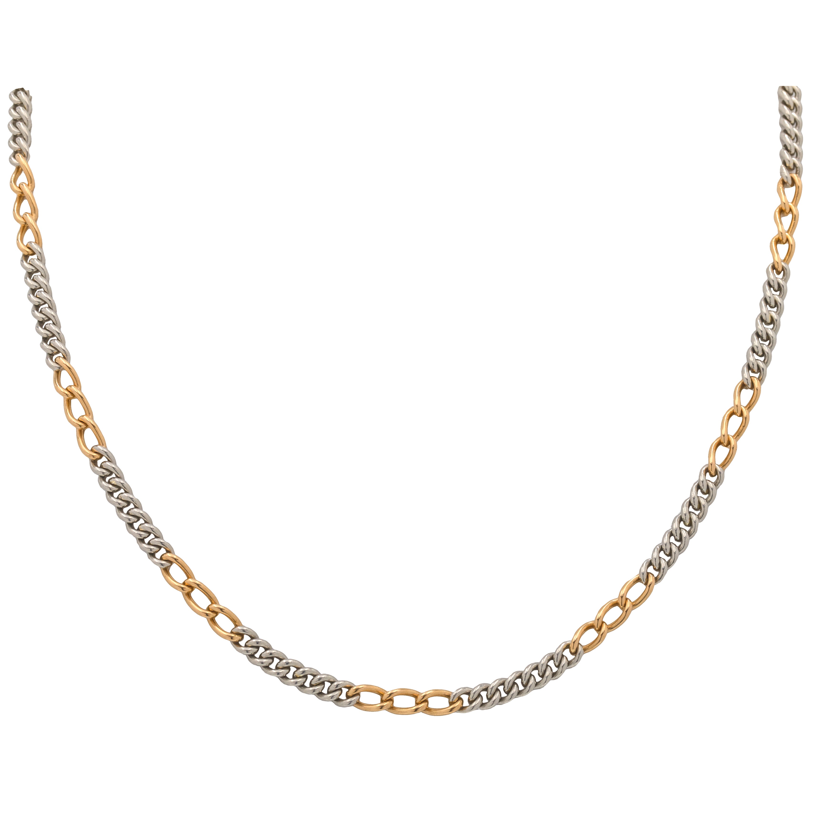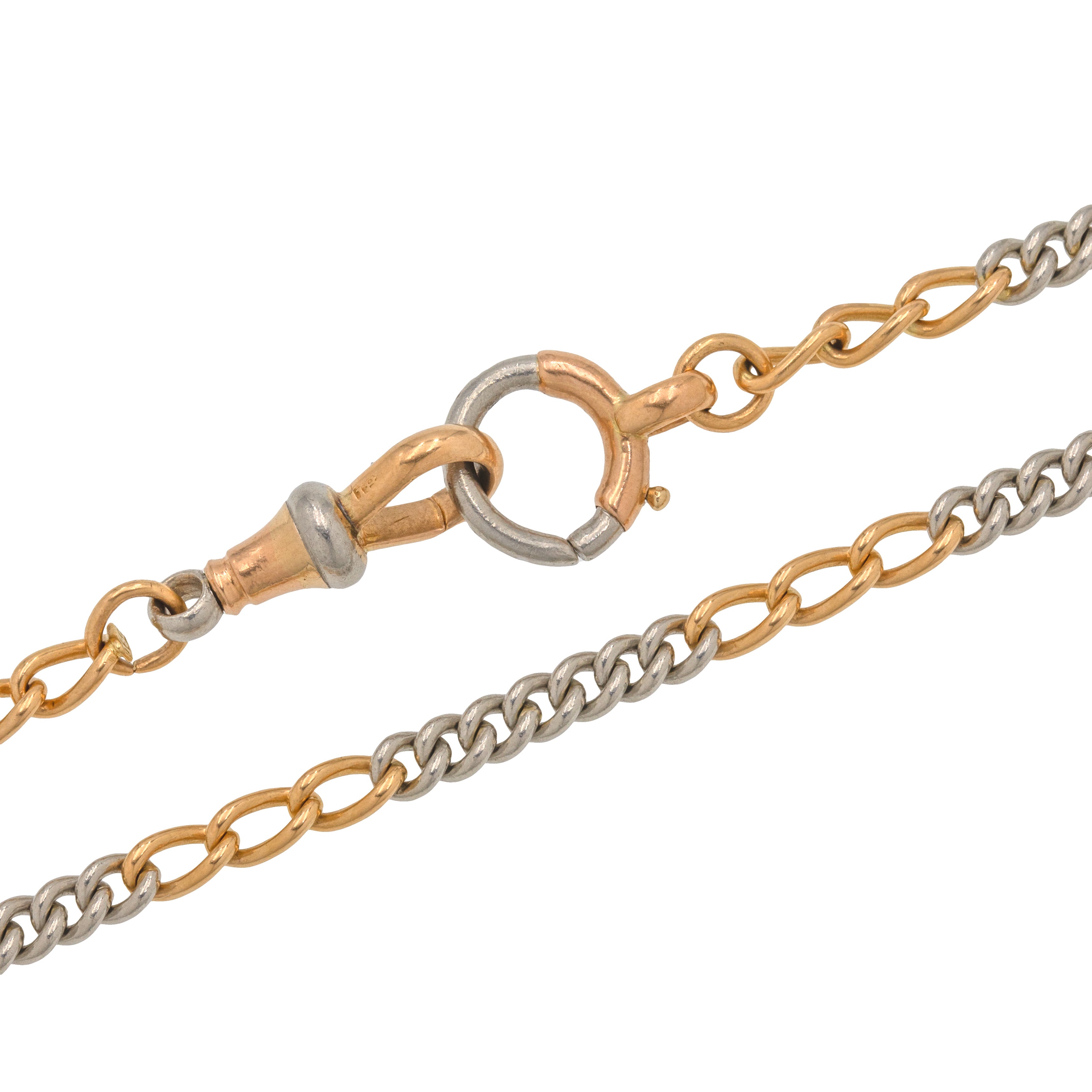 15.5" Art Deco 18ct Gold Platinum Bi-Colour Chain, Dog-Clip & Bolt Ring, 24.7g