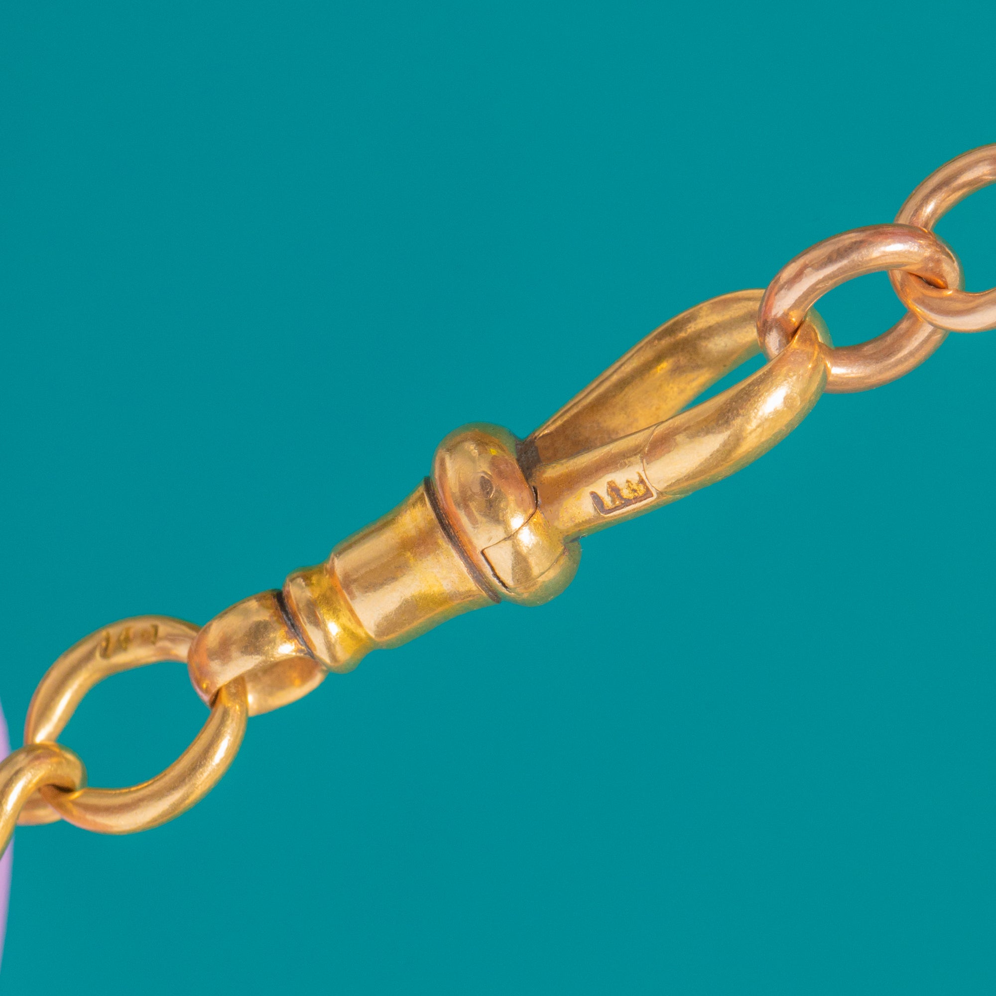 15" Antique 18ct Gold Albert T-Bar Chain, Dog-Clip