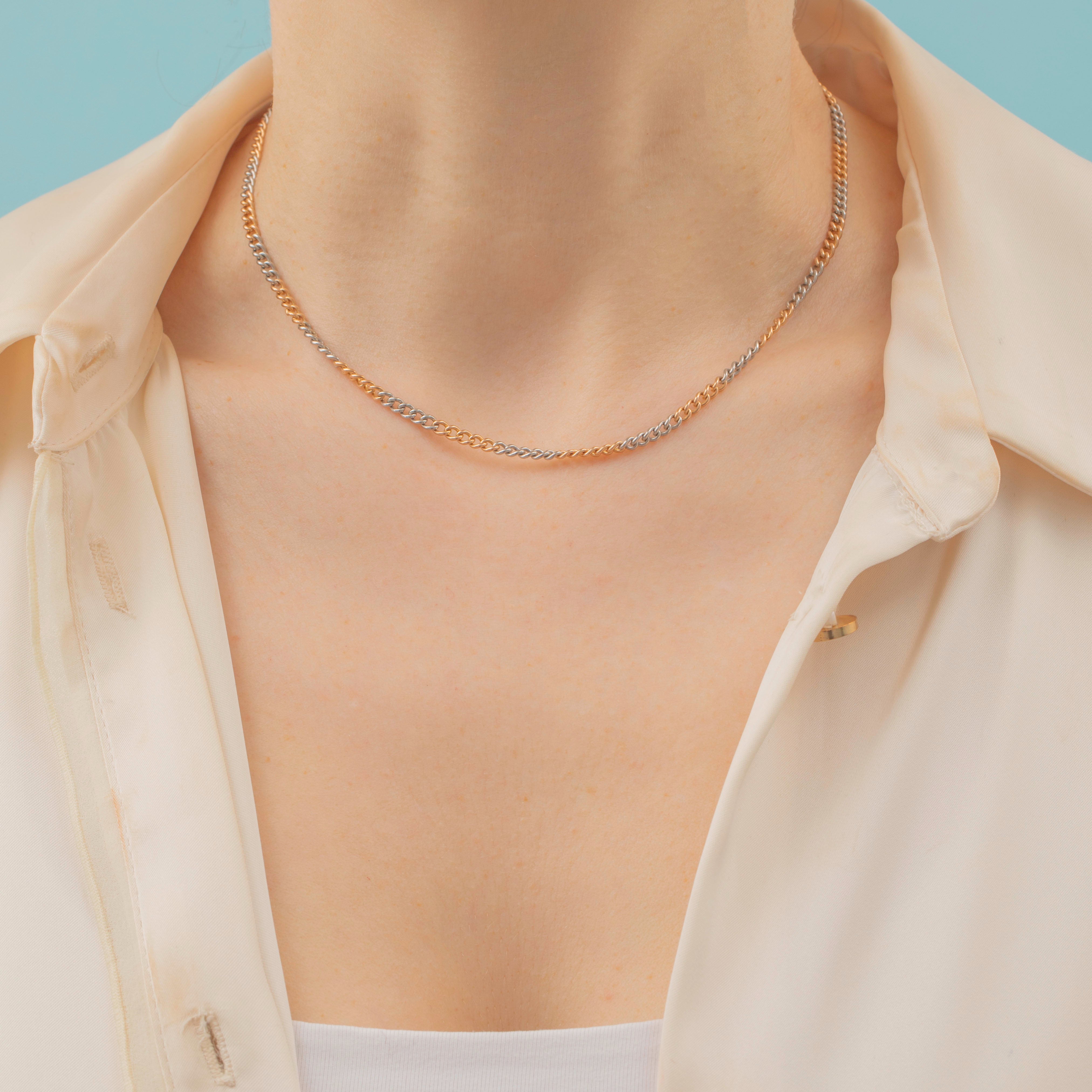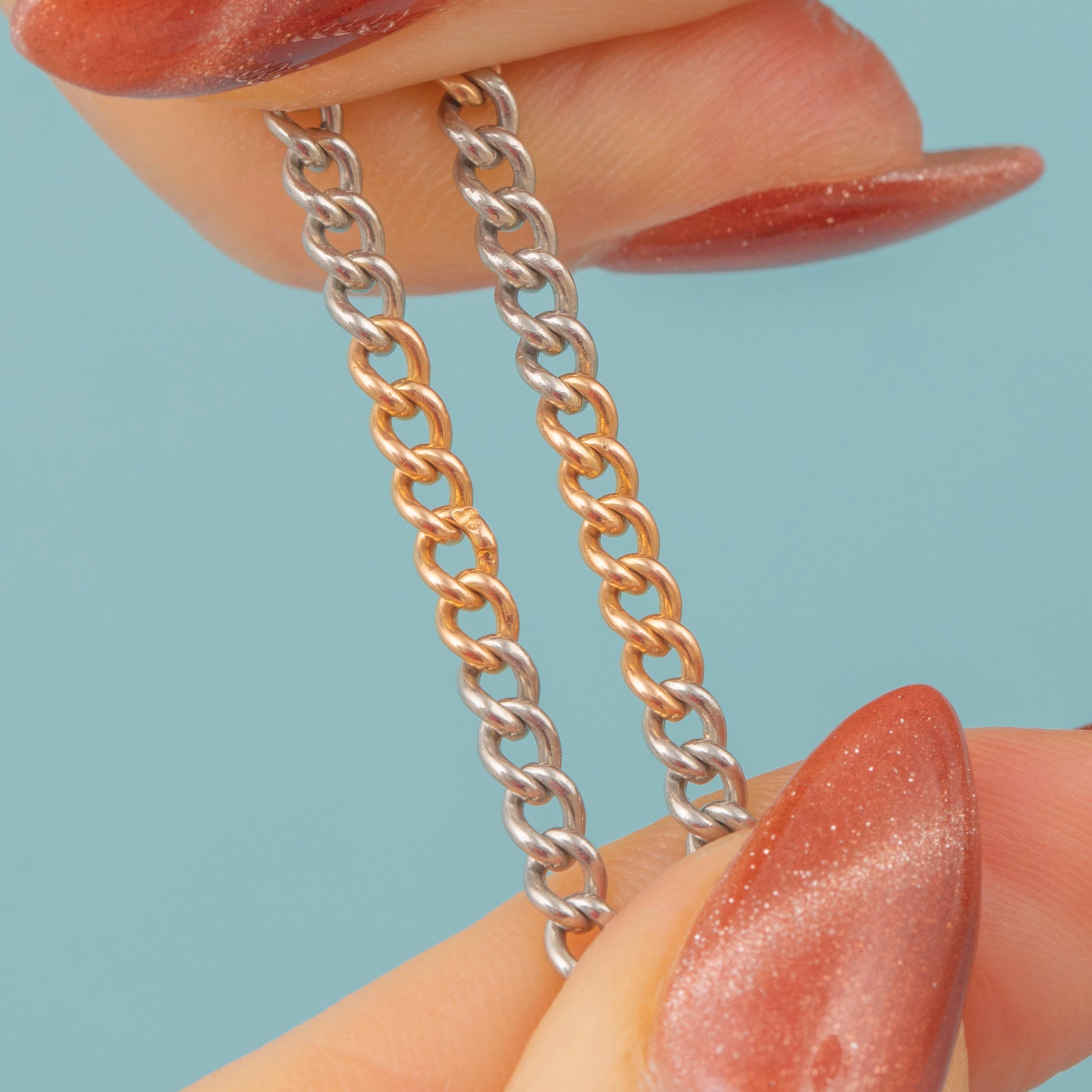 This striking antique 18ct Gold and Platinum bi-coloured chain is sure to turn heads as it graces your neckline. Featuring an elegant mix of Platinum and Gold curb links in varying sizes, its unique contrast of metals sets it apart as a standout piece in any collection.