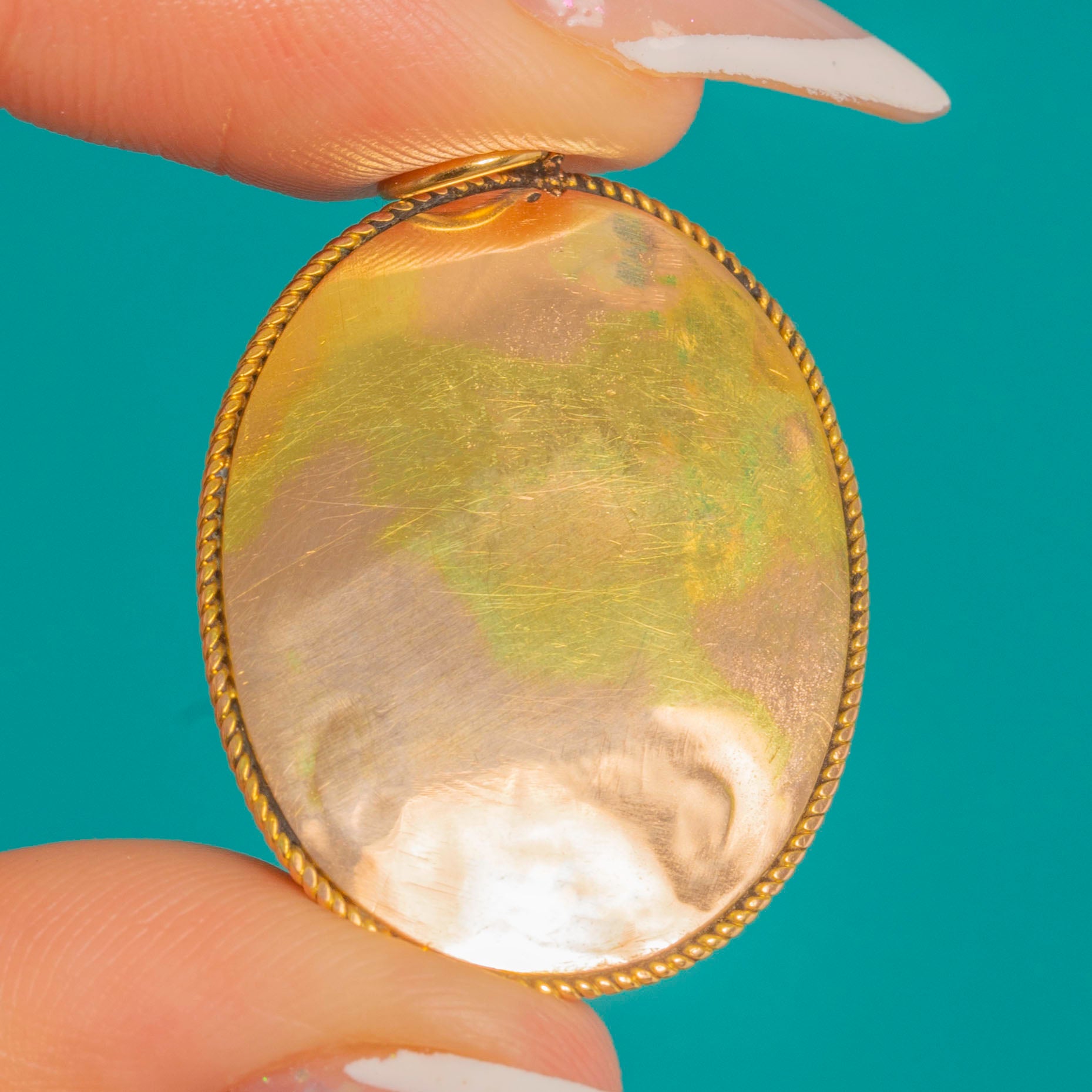 EXCELLENT: The Garnet shows light, superficial abrasions to the high dome commensurate with age, with the Seed Pearls all present and secure. The 15ct Gold mount, bezel and jump ring are sturdy with an attractive, even patina; the closed back shows minor surface wear and some discolouration to the Gold. No visible repairs or alterations noted, and overall the pendant has been very well cared for.