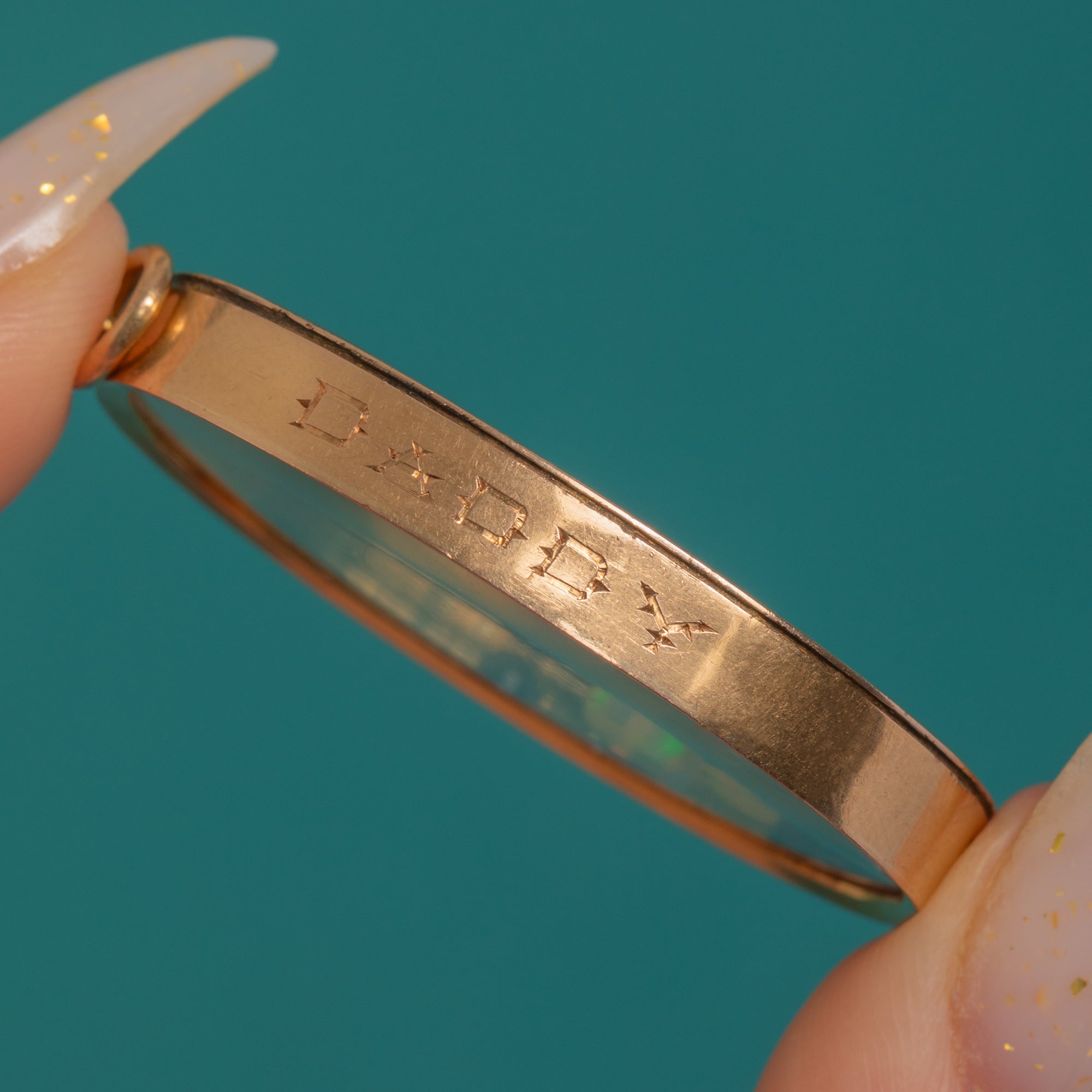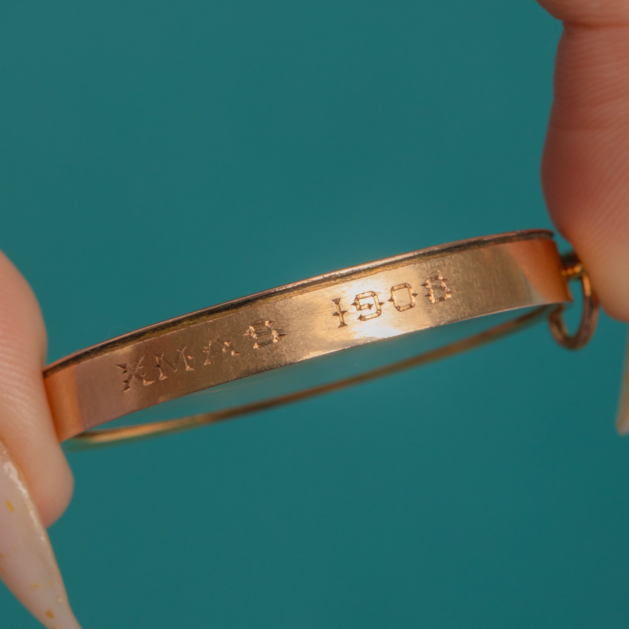 Engraved ‘Daddy, Christmas 1900’, this sentimental inscription anchors the piece in time while the minimalist silhouette keeps it irresistibly wearable. Elegant and kinetic, it brings sparkle and colour to any look.