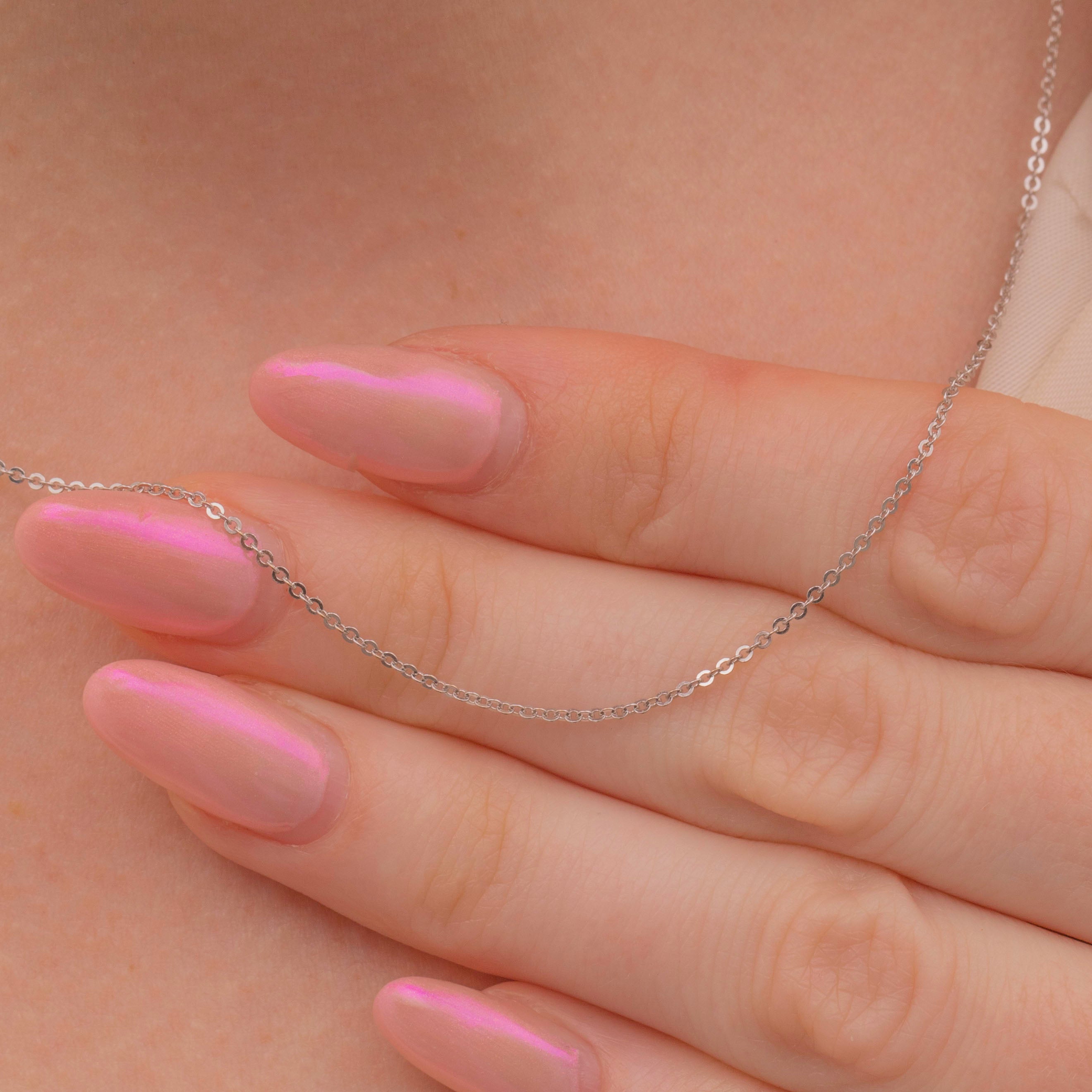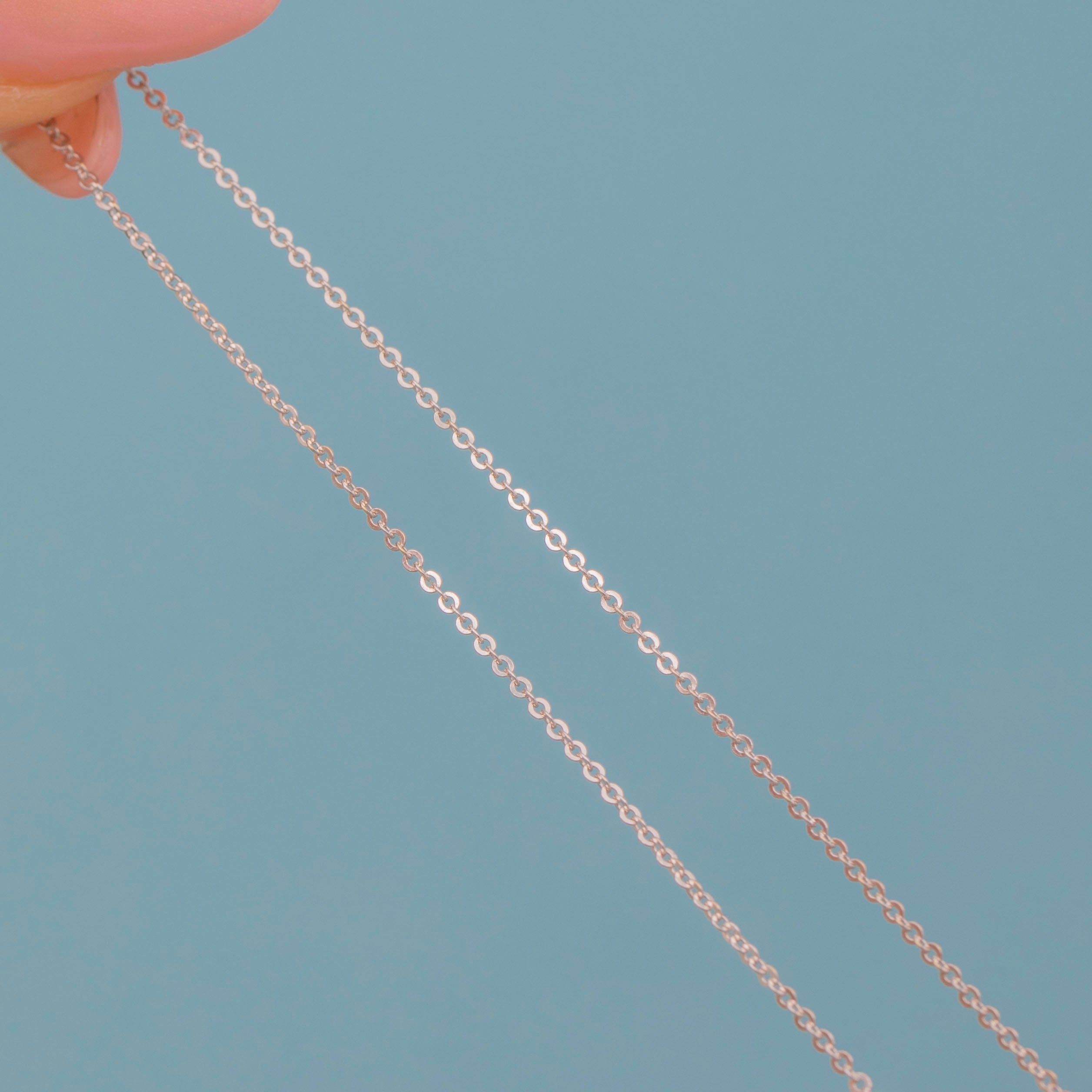 EXCELLENT. This 16" 18ct White Gold skinny pendant chain is in excellent condition. The chain has secure links, and a bolt-ring for secure closure. This chain is perfect to be worn straight from your pink Lillicoco box!