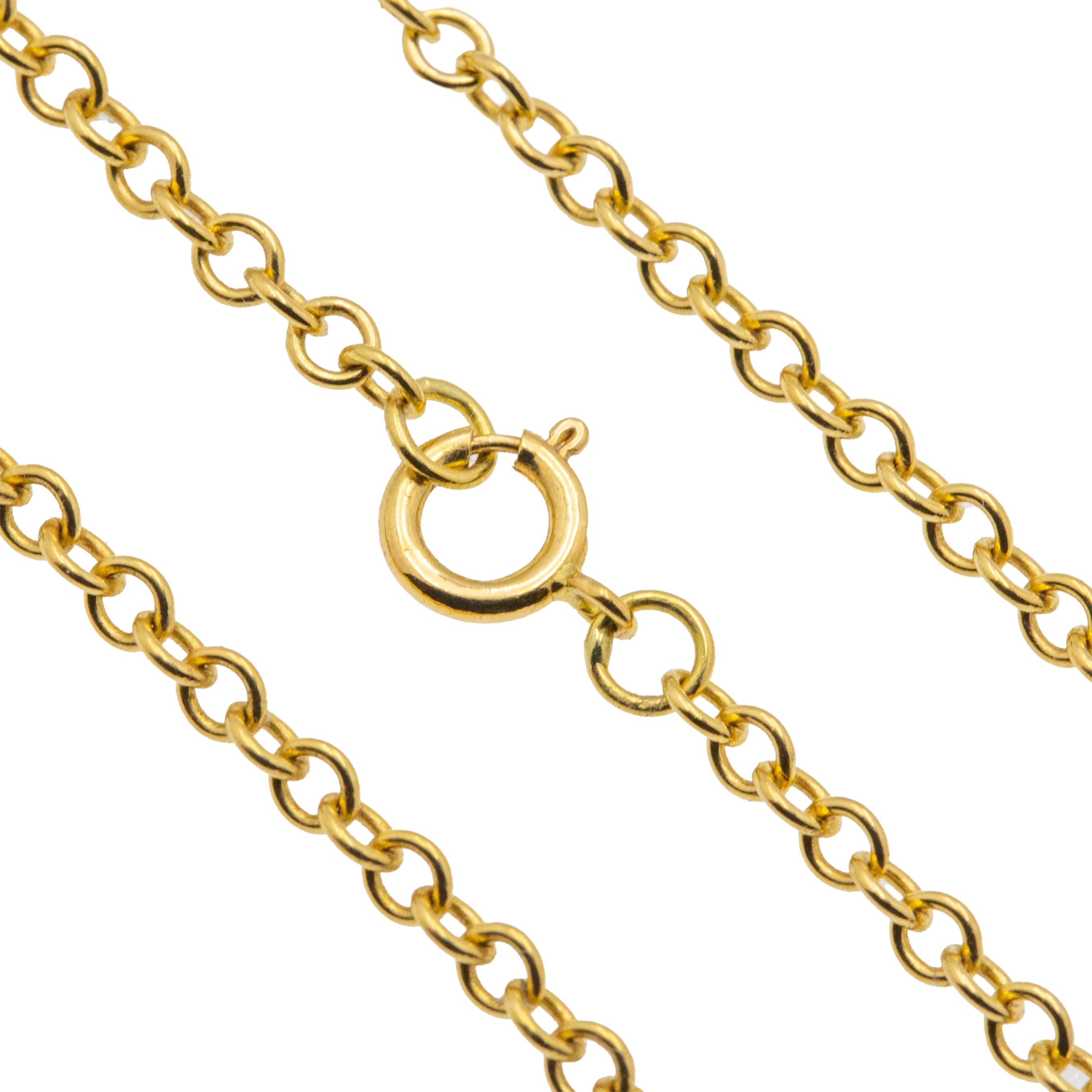 EXCELLENT.  This 16.5" antique 18ct Gold pendant chain is offered in excellent condition. Each link is connected well, glowing with a buttery hue. The bolt-ring is in perfect working order so you can wear it confidently. A perfect addition to any jewellery lover's collection!