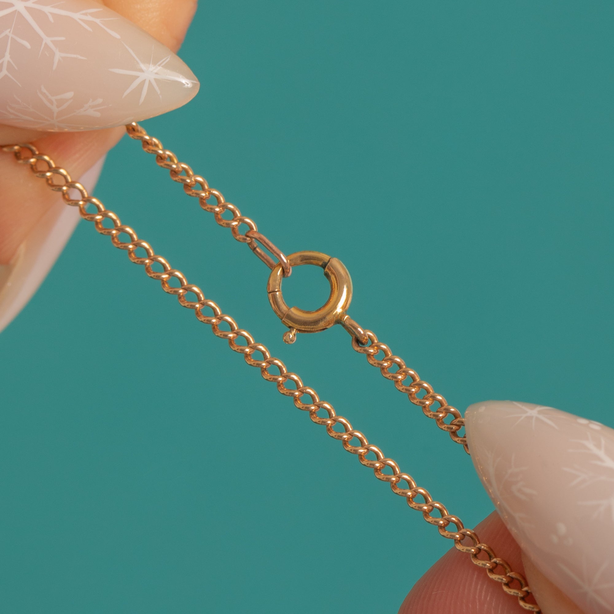 A refined Victorian 9ct Gold pendant chain with delicately proportioned curb links that glimmer with a warm, slightly rosy hue. Minimal and elegant, it wears beautifully alone or as the perfect companion for your favourite pendant.