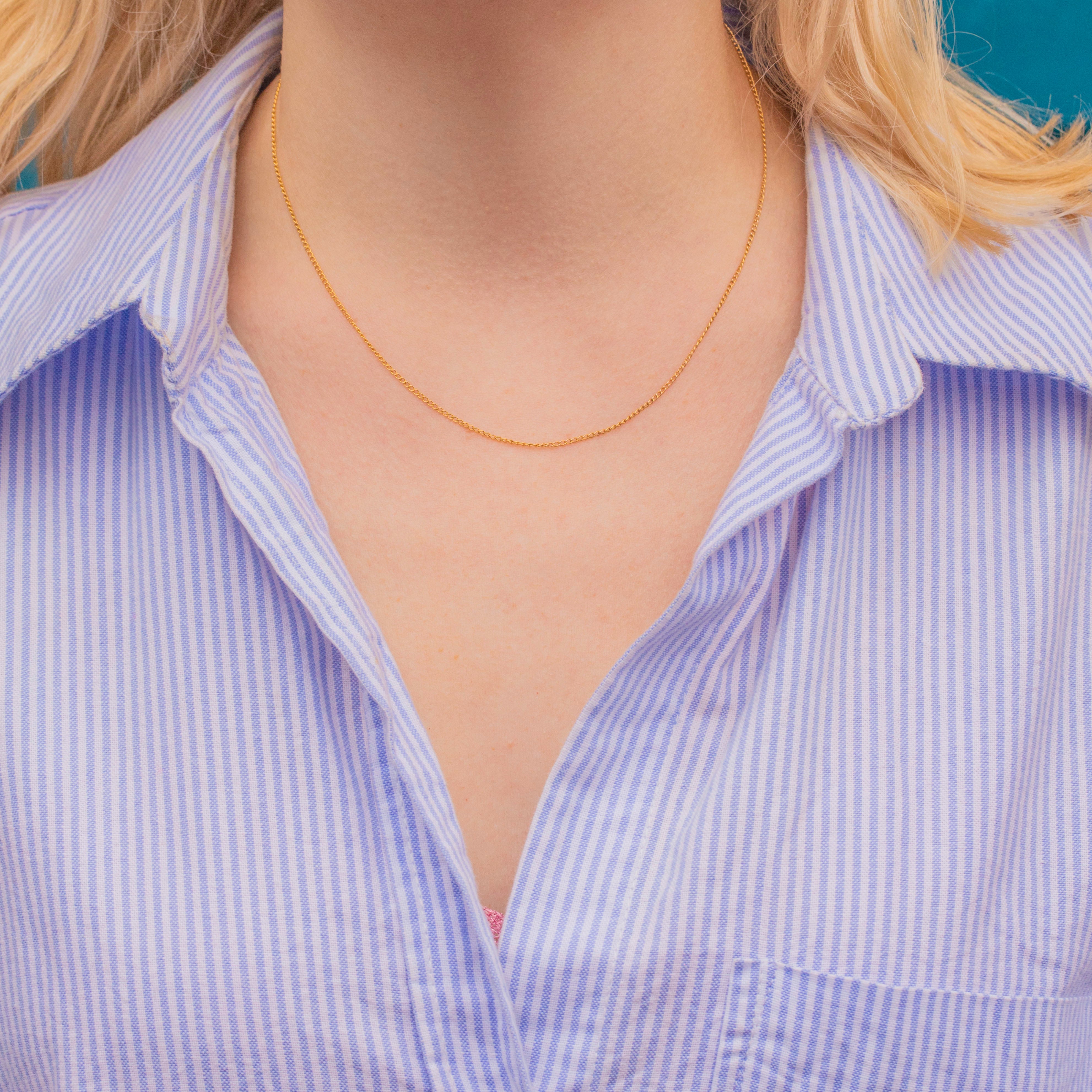 This is a gorgeous antique 9ct Gold skinny curb chain! This beauty has a lovely Golden hue and smooth links that sit comfortably against the skin.