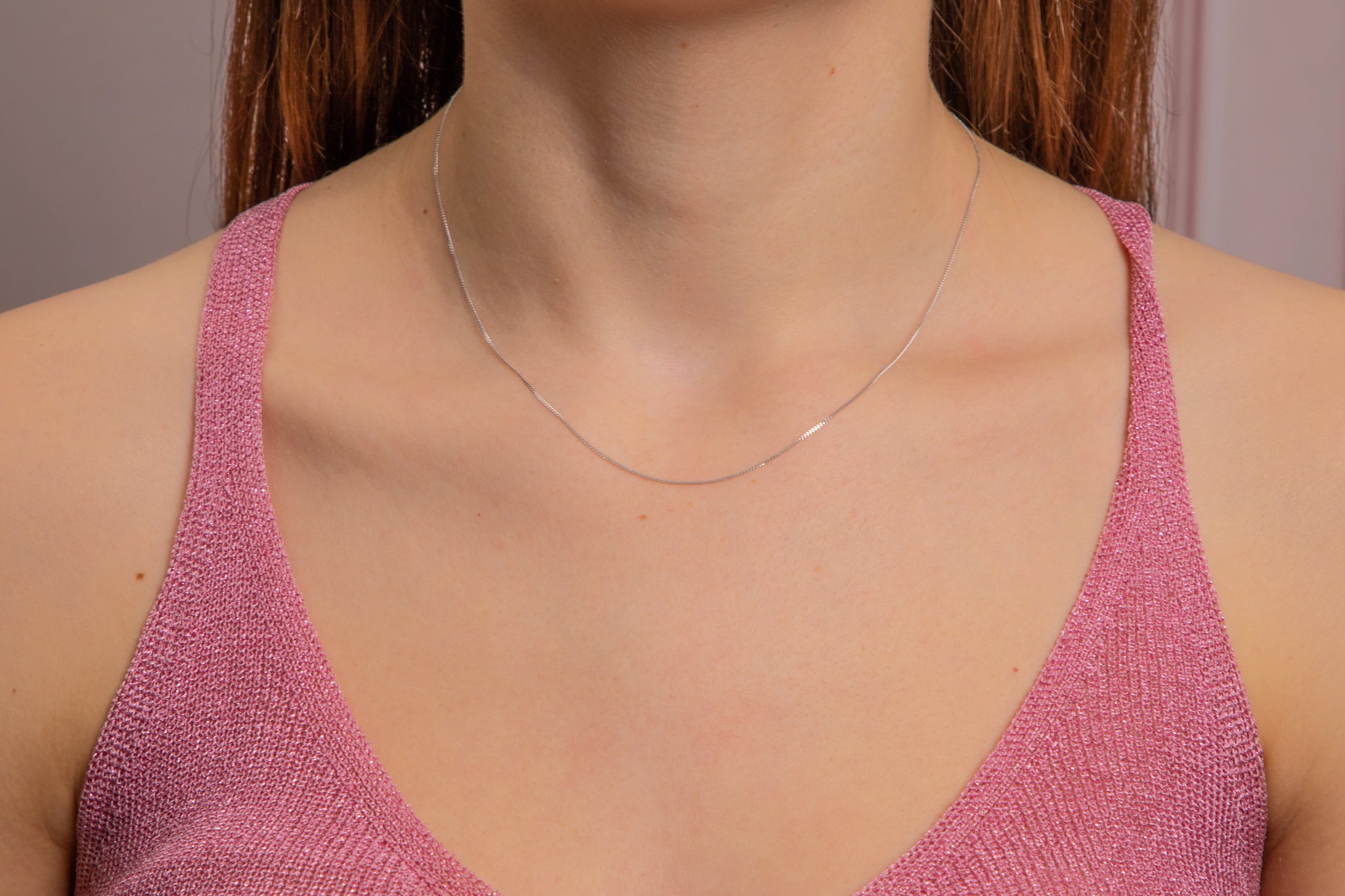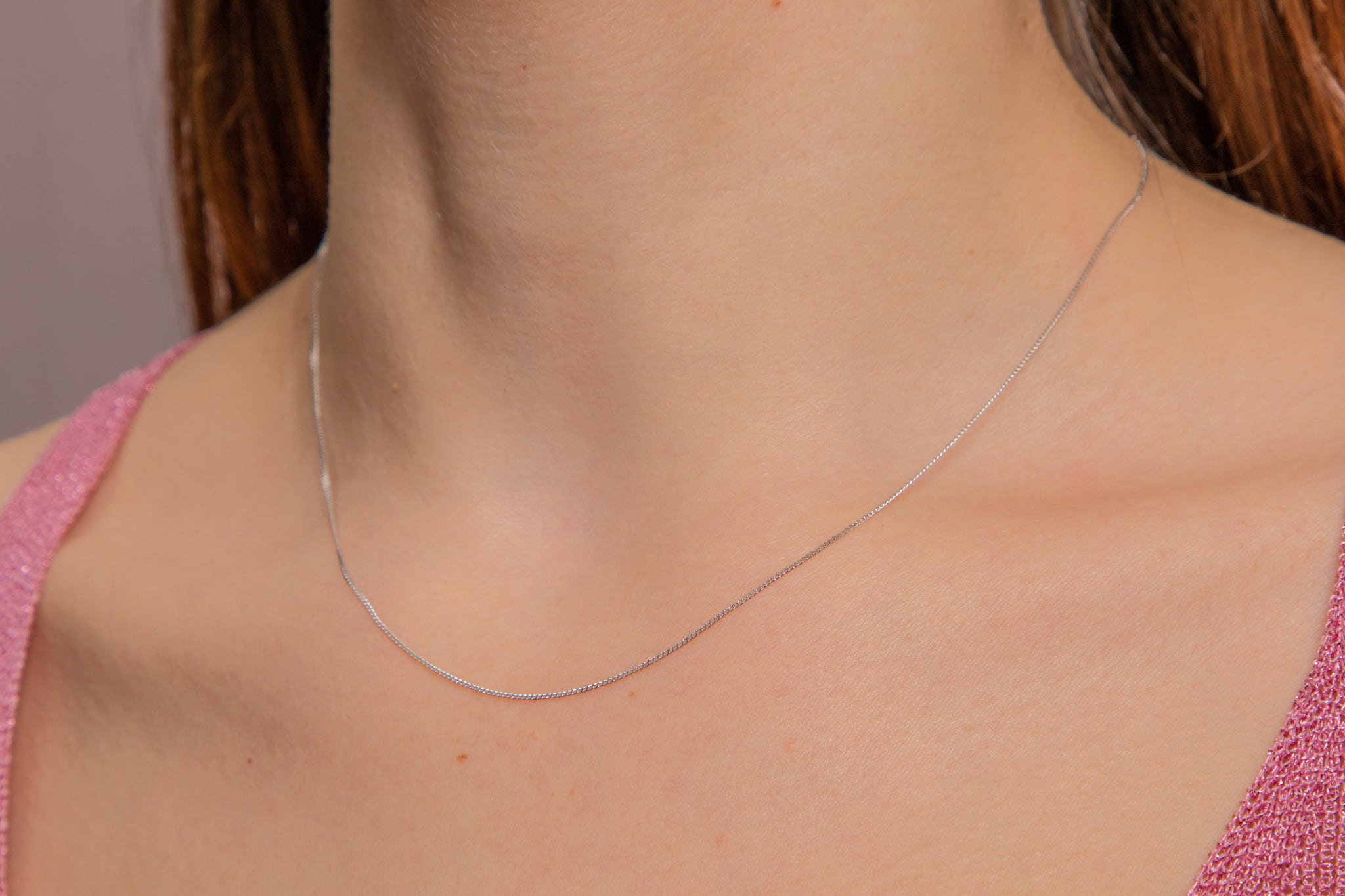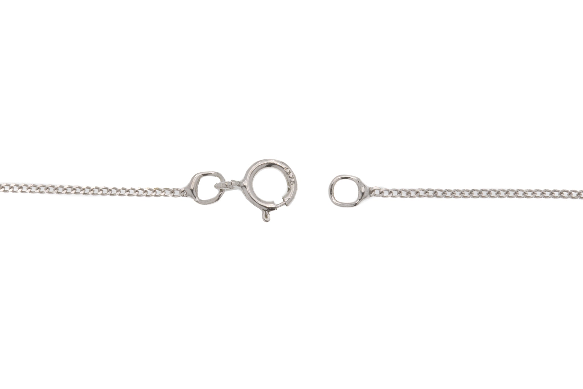 EXCELLENT. This 9ct White Gold skinny curb chain is in excellent condition throughout. The white Gold is bright and beautiful, the links are all secure and there is very little sign of wear. The bolt ring is in perfect working order allowing you to wear this piece confidently!
