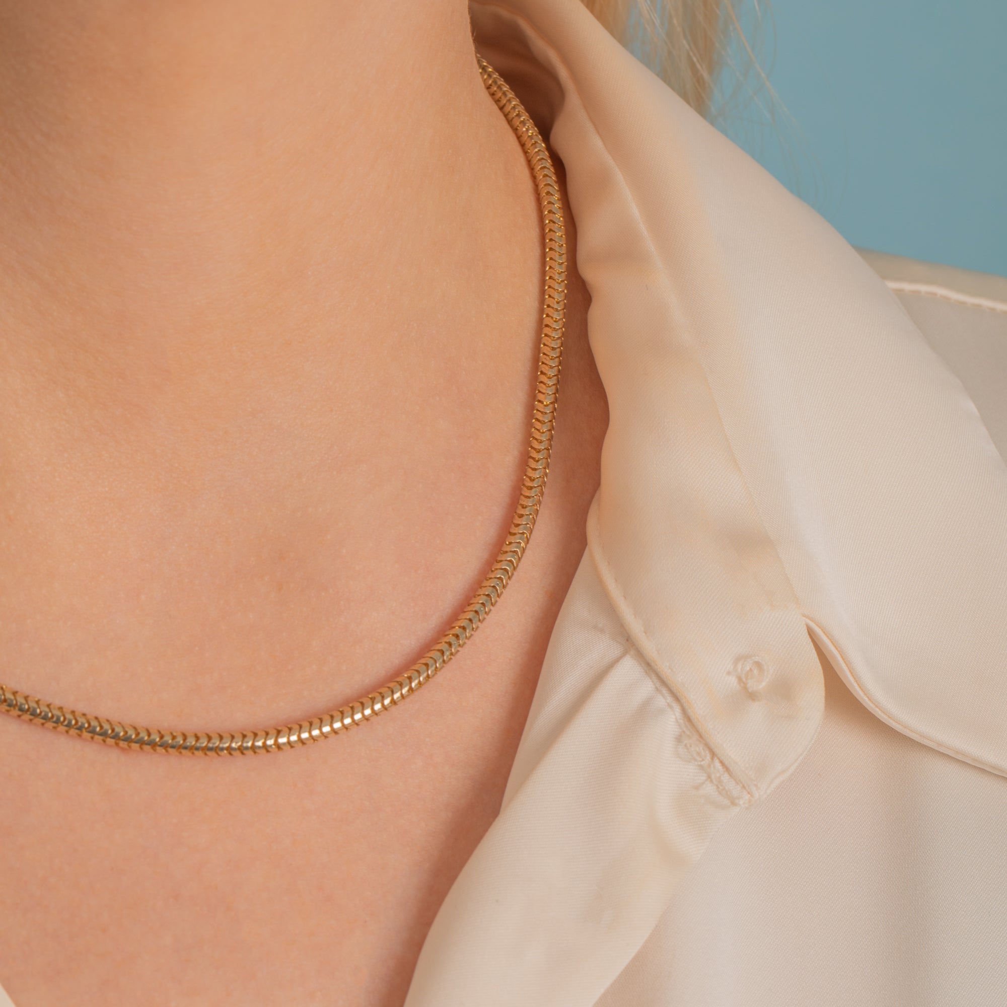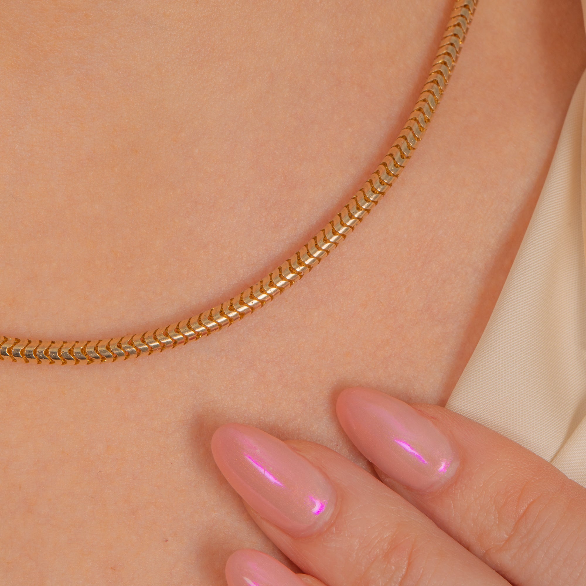 Whether worn as a standalone piece, layered amongst your other favourite chains, or utilising the bolt ring to suspend a charm, this antique snake chain will become a staple in your collection, elevating your outfit in an instant!