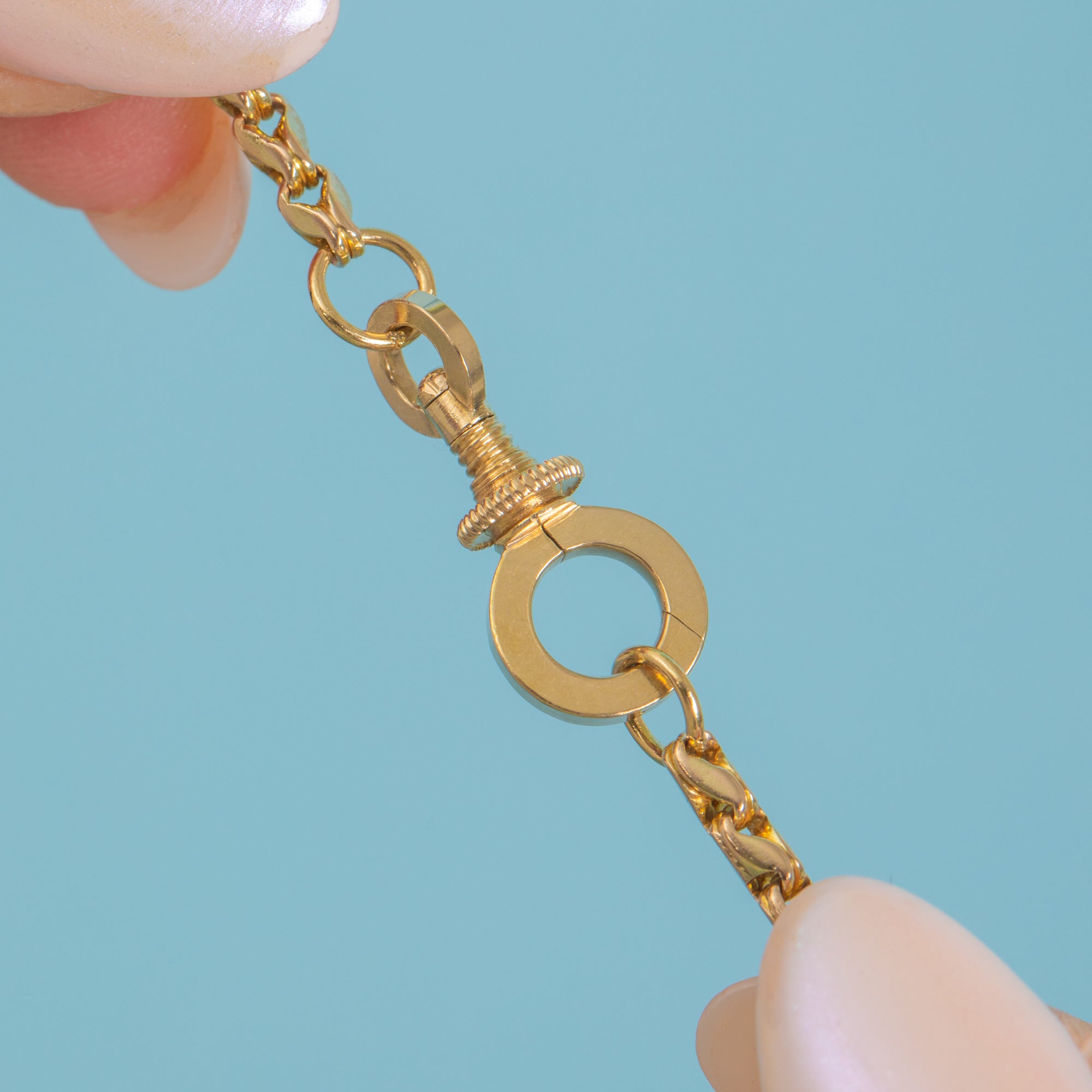 Exuding luxury and exquisite craftsmanship, this antique 9ct Gold tulip link chain is a fine investment piece and will provide you with ample styling opportunities! This Victorian Gold chain can be worn alone to add a satisfying flash of Gold to your attire, stacked in a curated neck-mess for a modern look, or you could suspend a charm from its highly coveted screw dog-clip clasp for a personal touch.