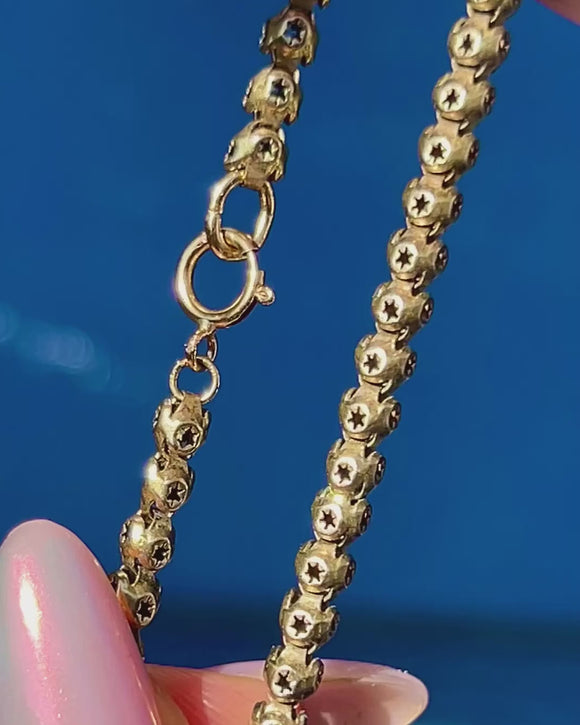 A classic example of Victorian jewellery, this antique Gold cased chain is made up of chubby box links, each side adorned with a hand-pierced star detail!