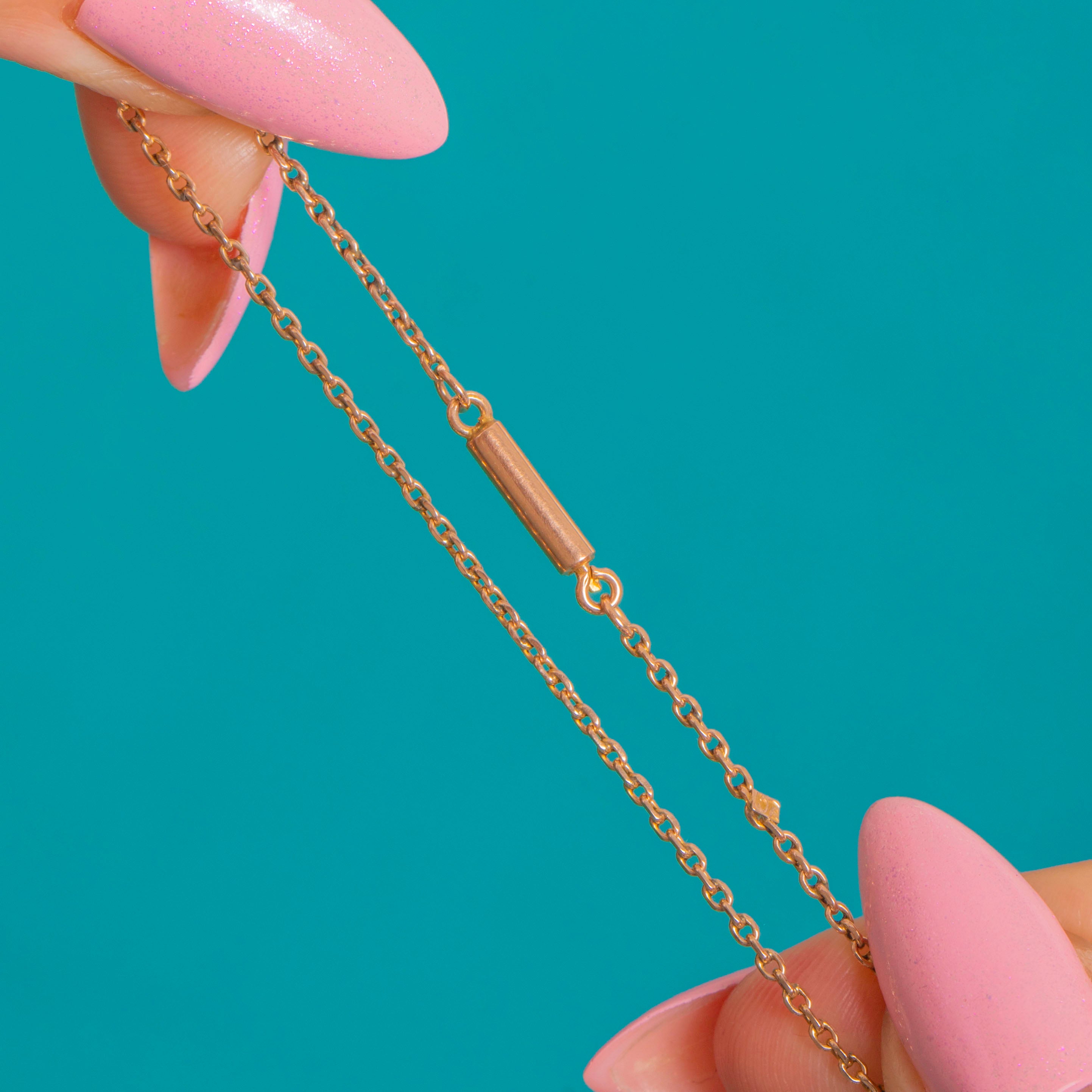 EXCELLENT: The Gold links are bright with minimal age-related surface wear and no visible kinks, breaks or repairs. The barrel clasp and tag show light surface marks only, consistent with careful use.