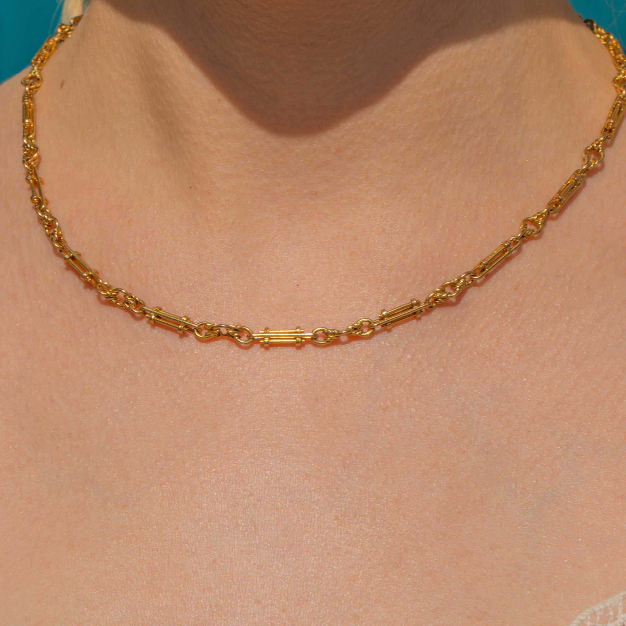 17" Antique 18ct Gold Lover's Knot Chain with Dog-Clip, 22.3g