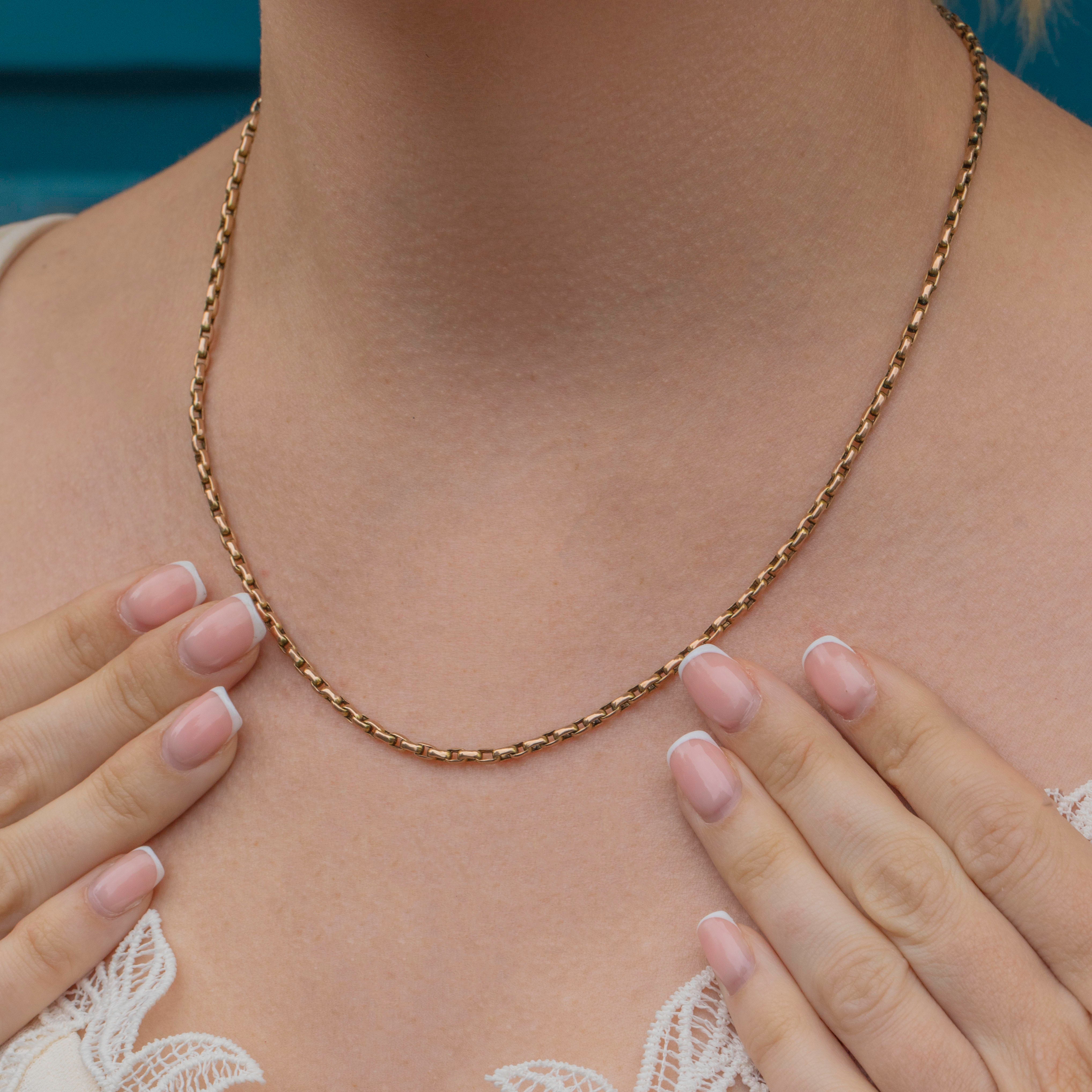 A sumptuous delight, this antique 9ct Gold belcher chain will bring texture and luxury to your repertoire! Rectangular belcher links make up the 17" length of this Victorian chain, with softly faceted edges catching the light beautifully and sending shimmers cascading across your décolletage.