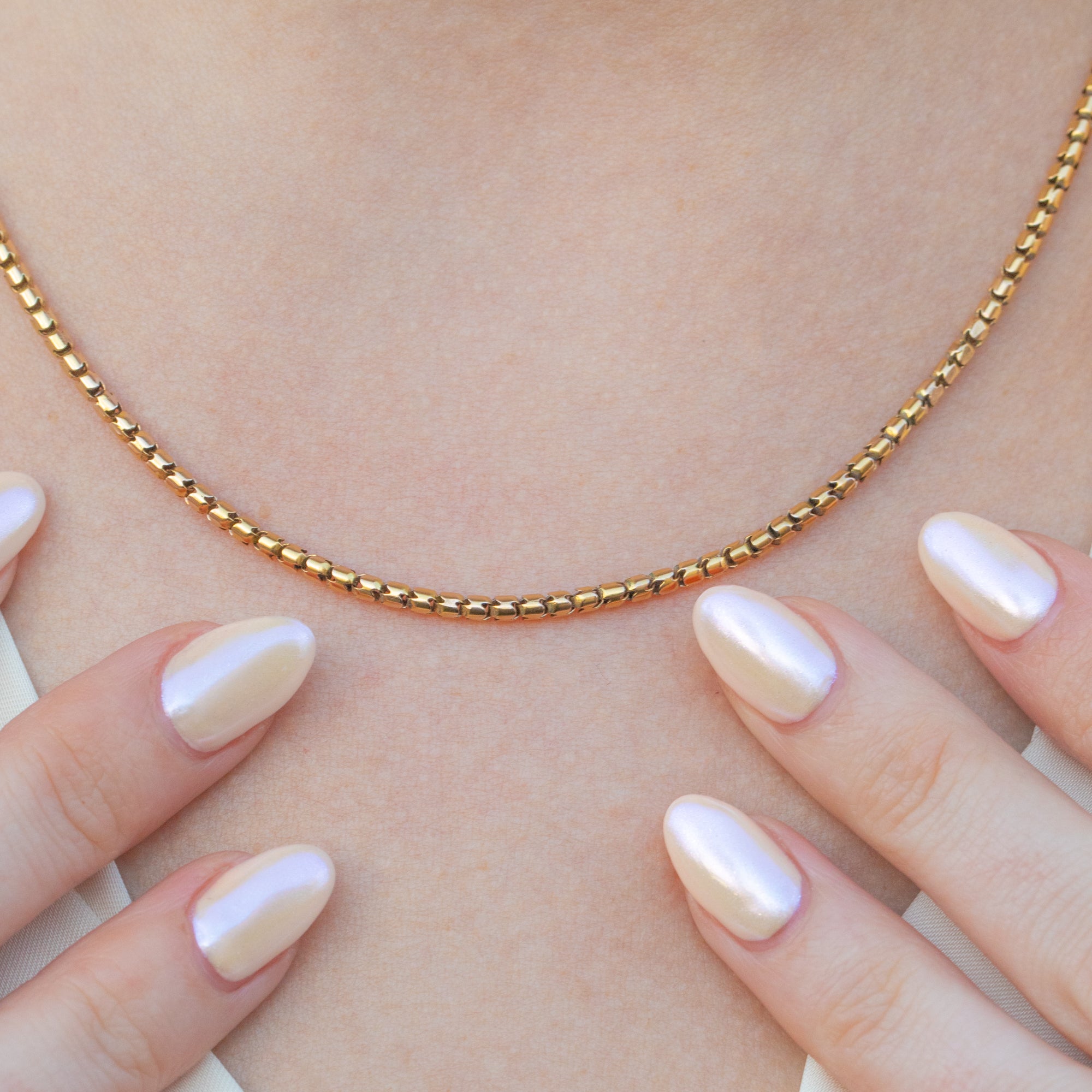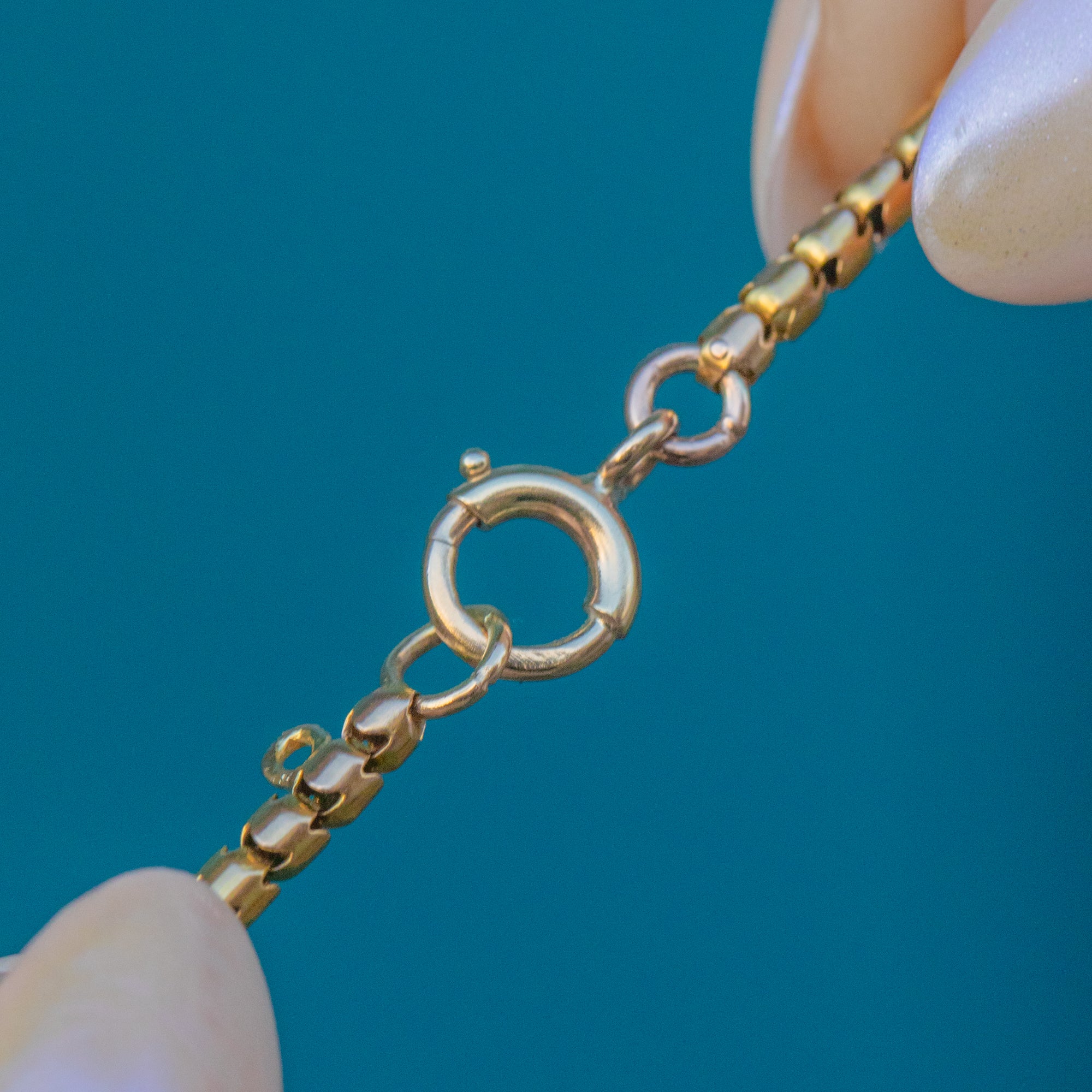 Wonderfully versatile, this antique snake chain is a glossy delight and can be worn as a standalone piece to add a satisfying flash of Gold to your attire, be stacked amongst your other favourite chains, or have a charm suspended from its authentic Victorian bolt ring for the ultimate antique look!