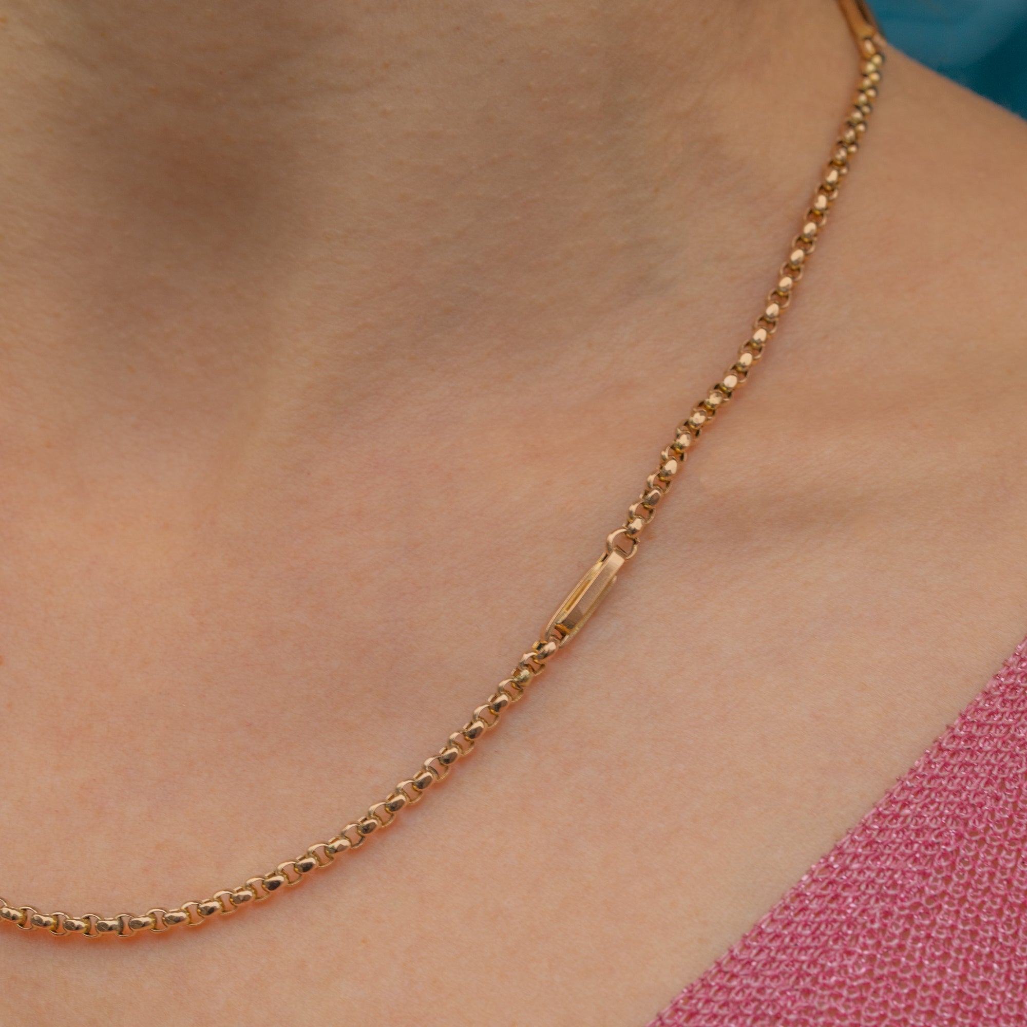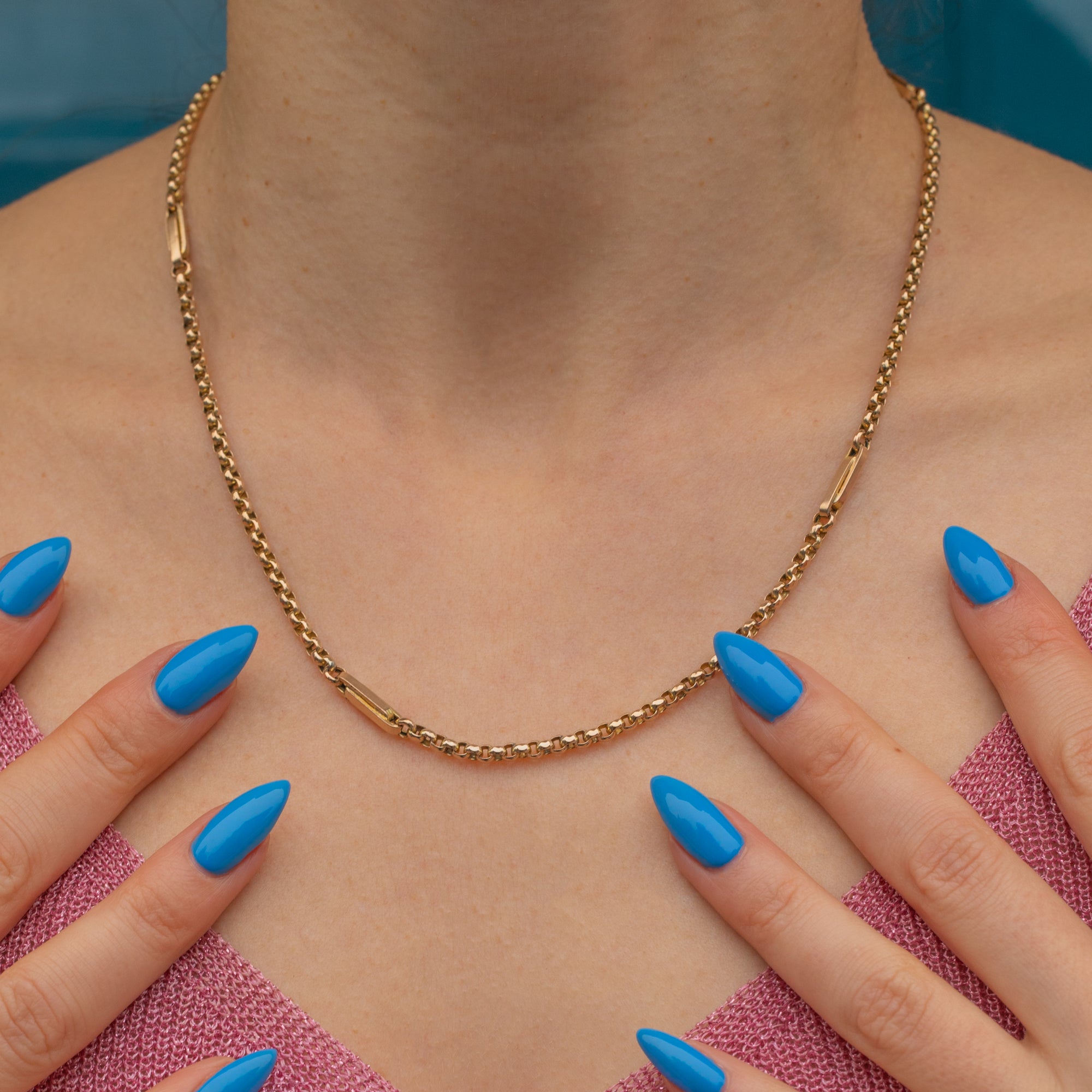 At a desirable length of 18.5", this fancy Gold paperclip chain is ideal for suspending chunkier pendants, layering with other chains, or simply worn alone as a statement piece.  Wonderfully charming, this chunky Gold chain is soon to become your favourite go-to piece!