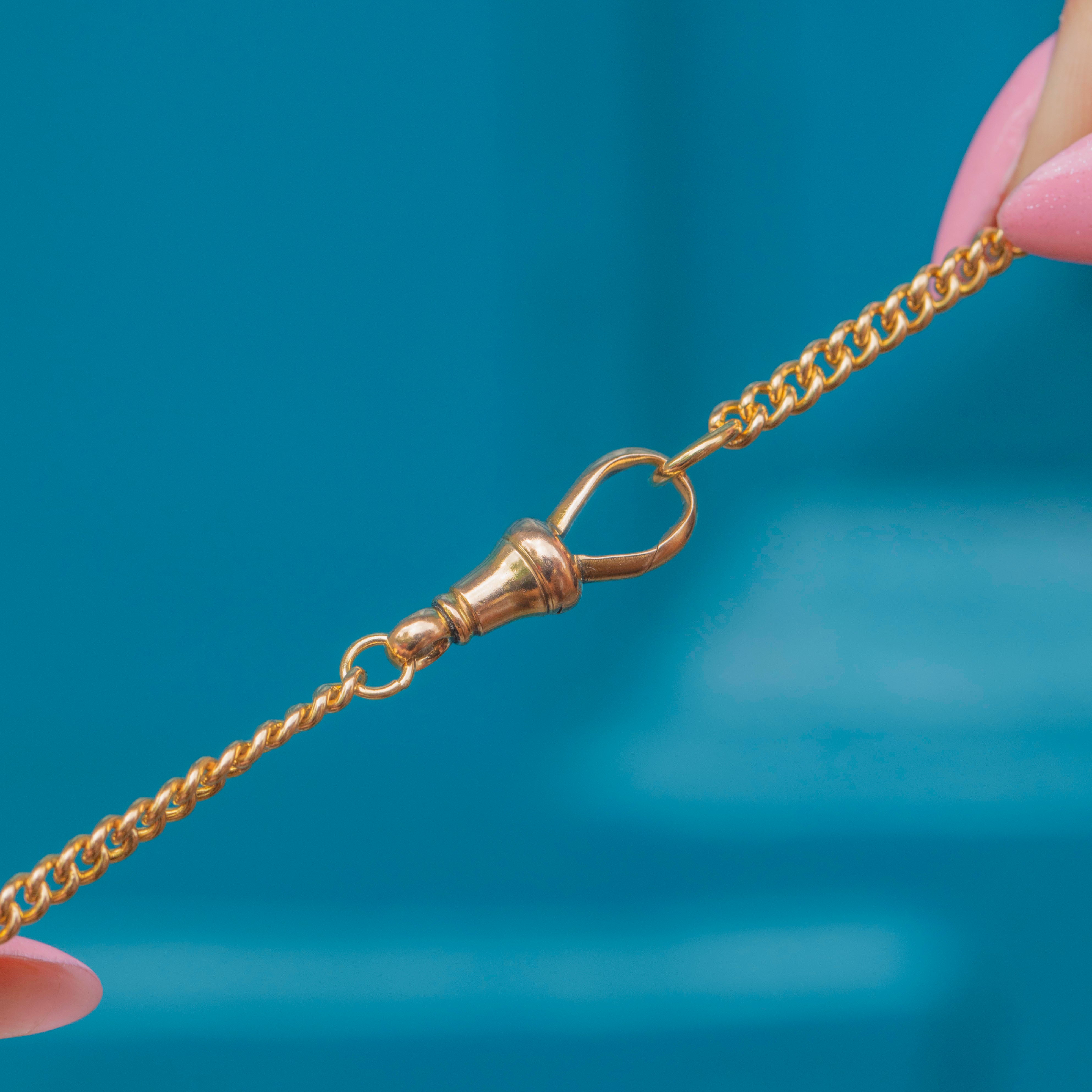 We love the versatility of this Victorian Gold chain; you can wear her alone, incorporate her into a necklace stack, or add a charm to her dog-clip if you want to add a splash of glitz. Complete with a much-coveted 18ct Gold dob-clip, you will never tire of this Victorian curb chain being part of your antique jewellery collection!