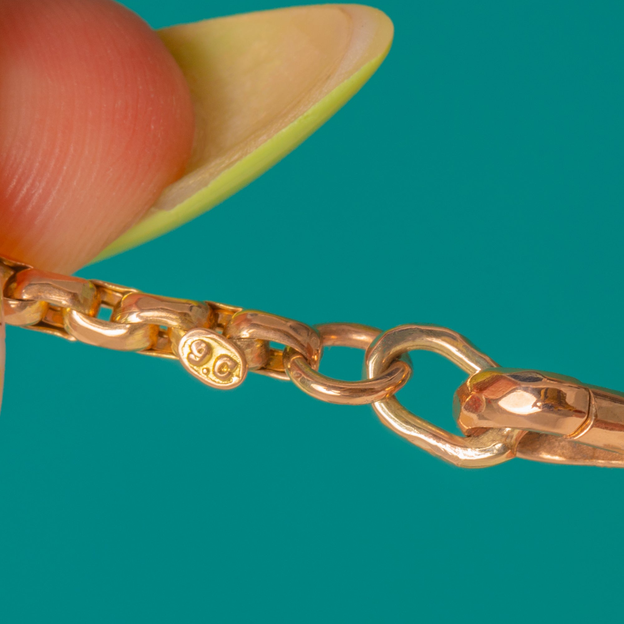 EXCELLENT: The high-polish links show only light surface wear consistent with age and retain a bright, even lustre. The dog clip fastens securely and the chain lies smoothly with no distorted or stretched links. No visible repairs or alterations.