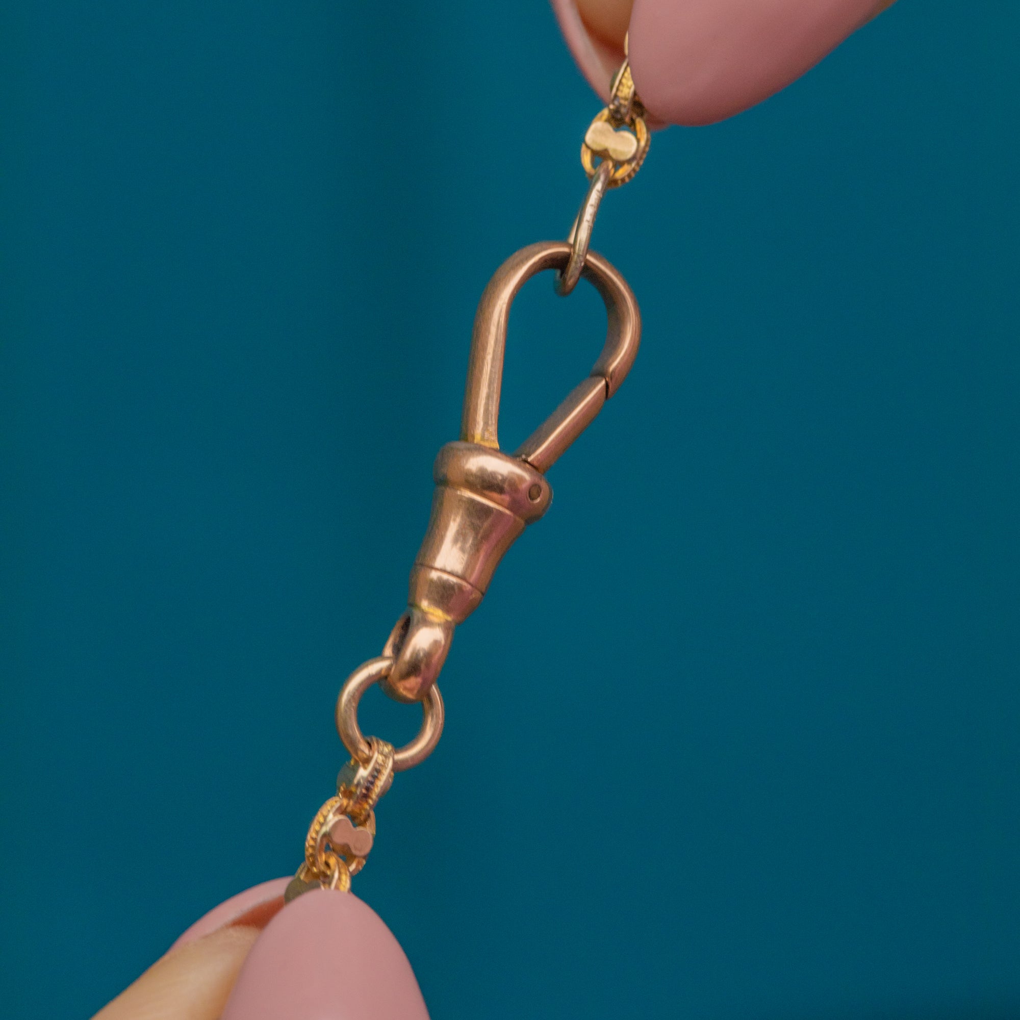 EXCELLENT. We are pleased to present this 18" antique 9ct Gold fancy link chain in superb condition. The warm, saturated Gold links are uniform and secure, flowing effortlessly and gleaming in the light. She is secured with a coveted dog-clip which fastens easily and securely, allowing for comfortable and confident wear. In such great condition, this Victorian fancy link chain is a must-have!