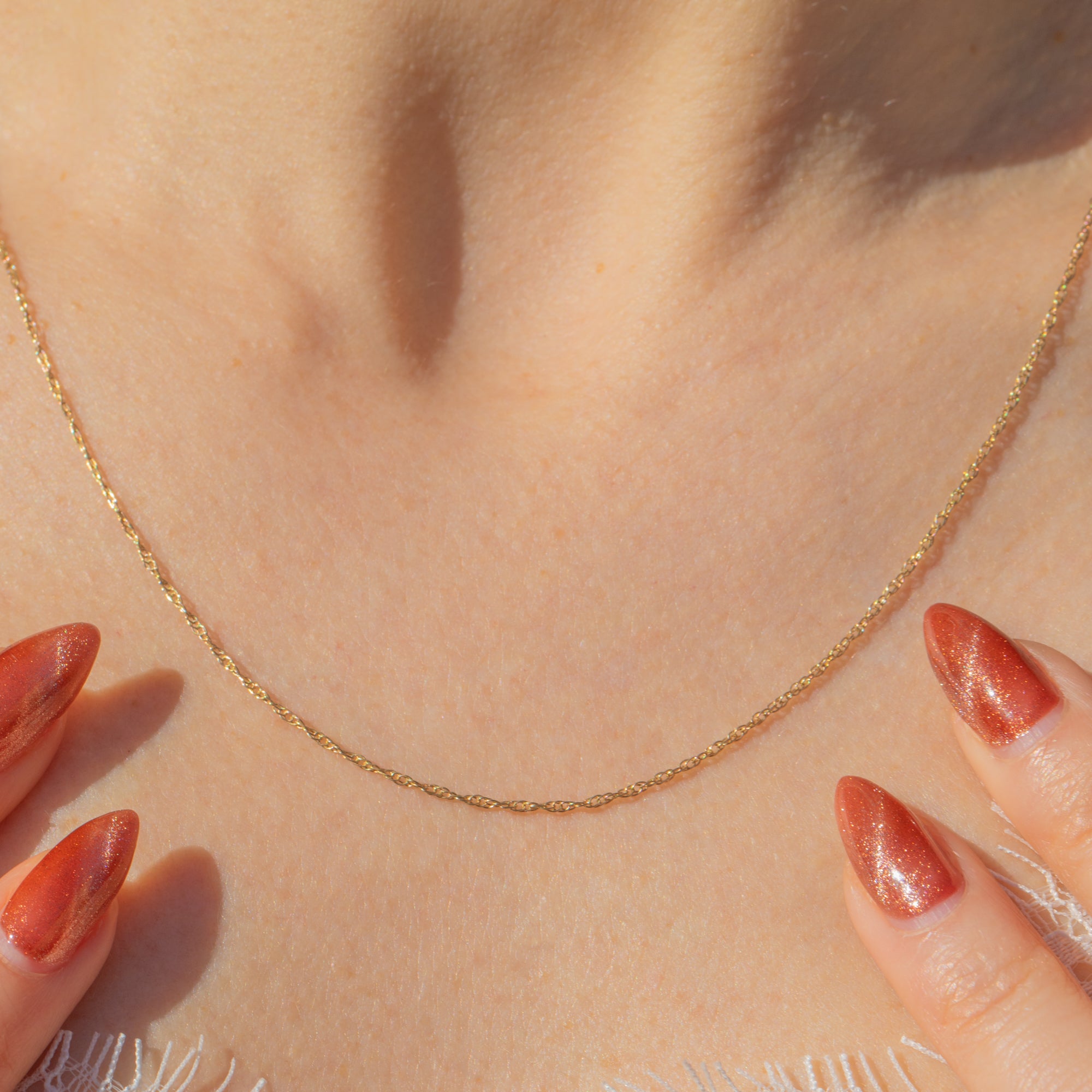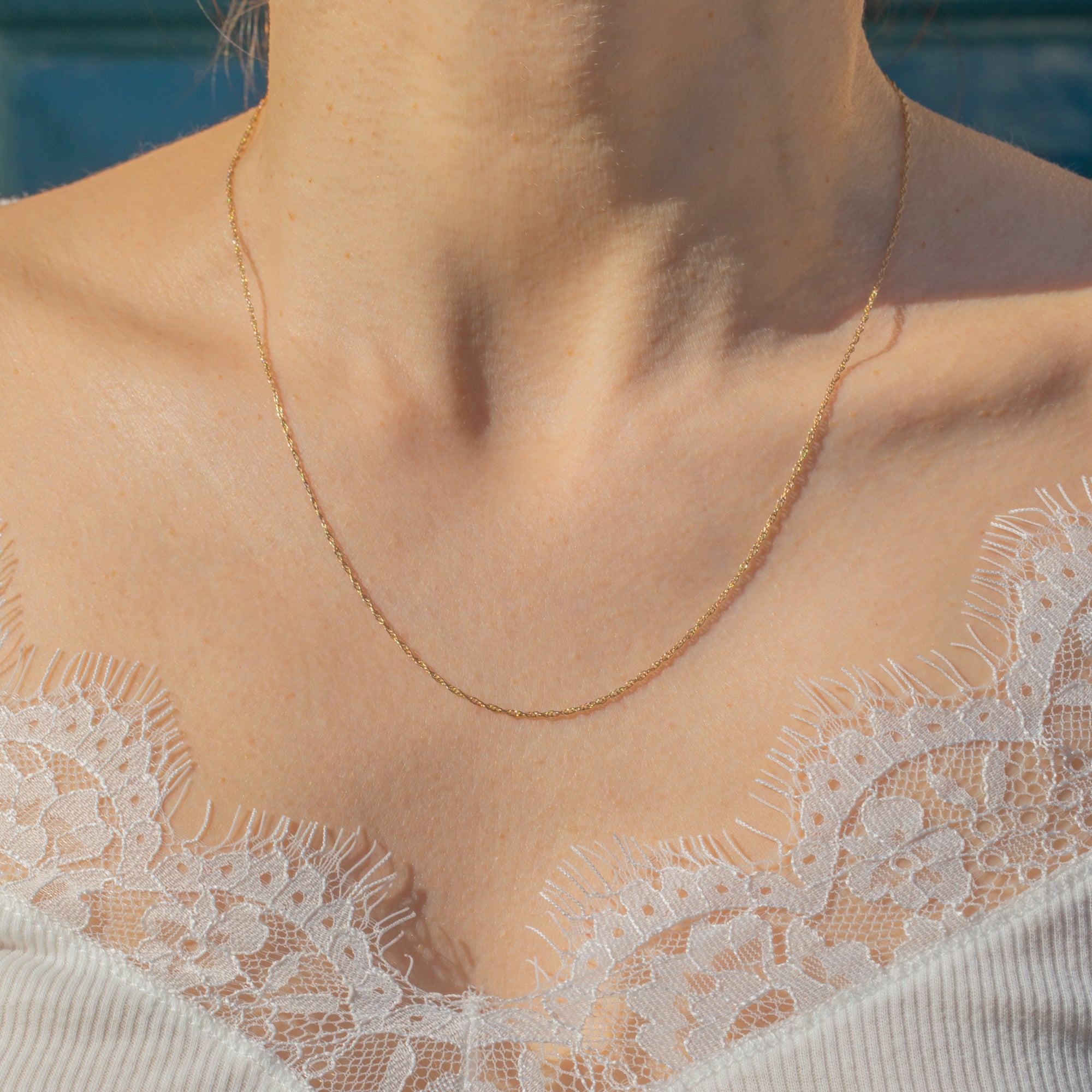 The 9ct Gold has a joyous, sunny golden hue that will effortlessly complement other shades of yellow and rose Gold jewellery. This chain is a princess length of 18", and it will look chic either worn on its own, incorporated into a necklace stack, or suspending a pendant.