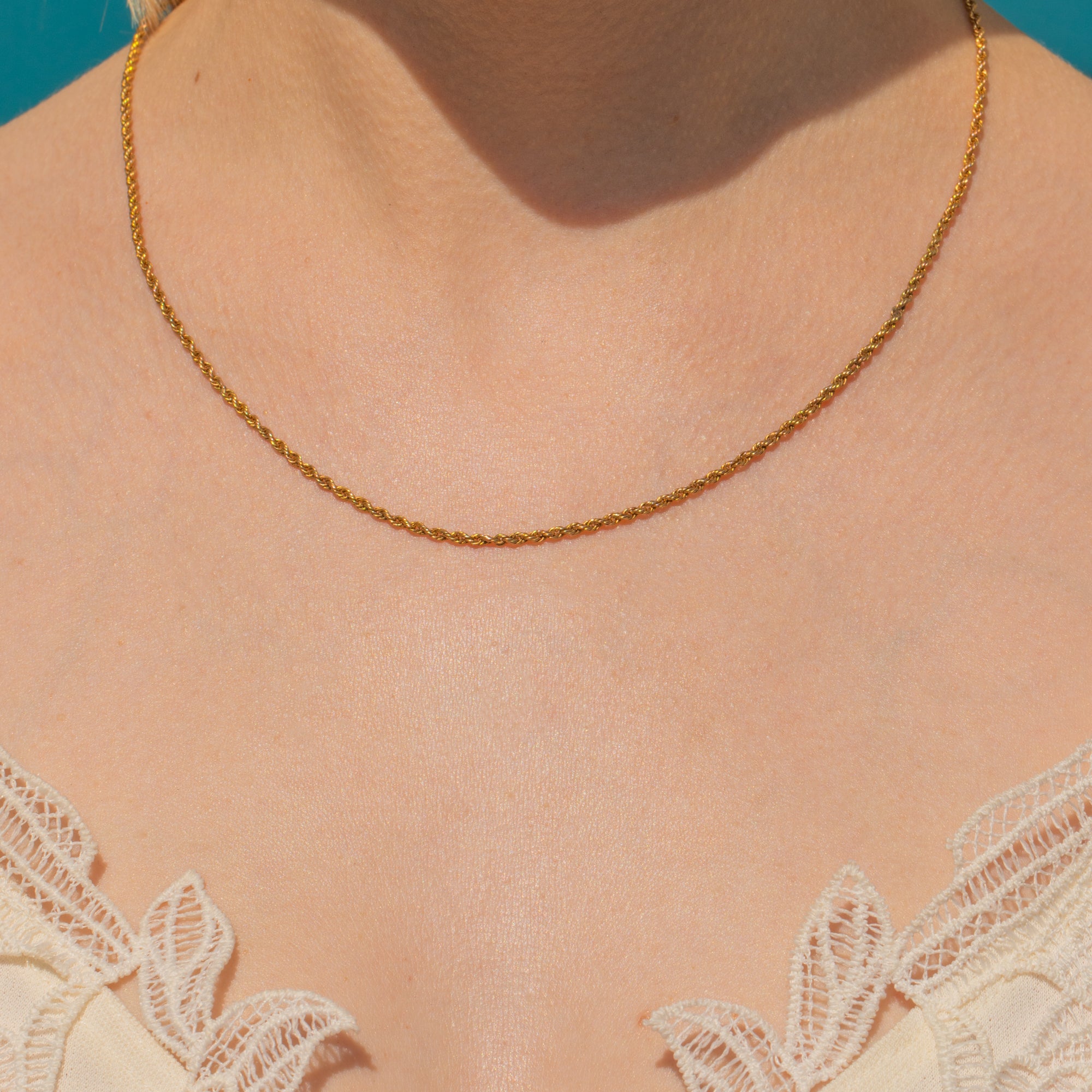 How pretty is this elegant 18" antique 9ct Gold twisted rope chain! Comprised of fine strands of buttery 9ct Gold, woven together to form her twisted design, her 18" length sits effortlessly across your décolletage.