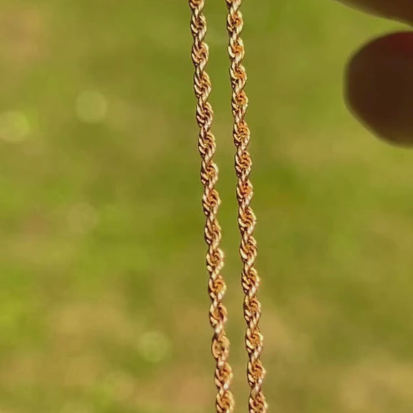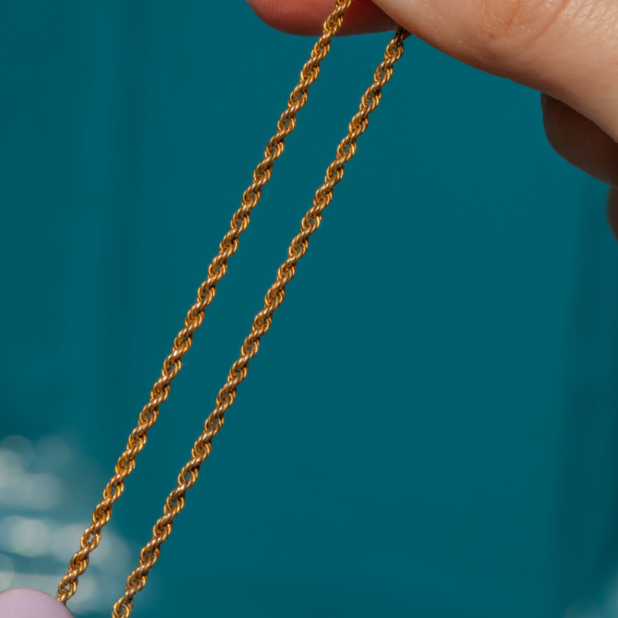 EXCELLENT. This 18" antique 9ct Gold twisted rope chain is in wonderful condition throughout. Her twisted rope chain is tightly woven throughout, with no surface abrasion to note. Her 9ct Gold has a lovely saturated hue and gleams when worn. Her barrel clasp is in perfect working order, so can be worn with the utmost confidence. The perfect addition to your antique jewellery collection!