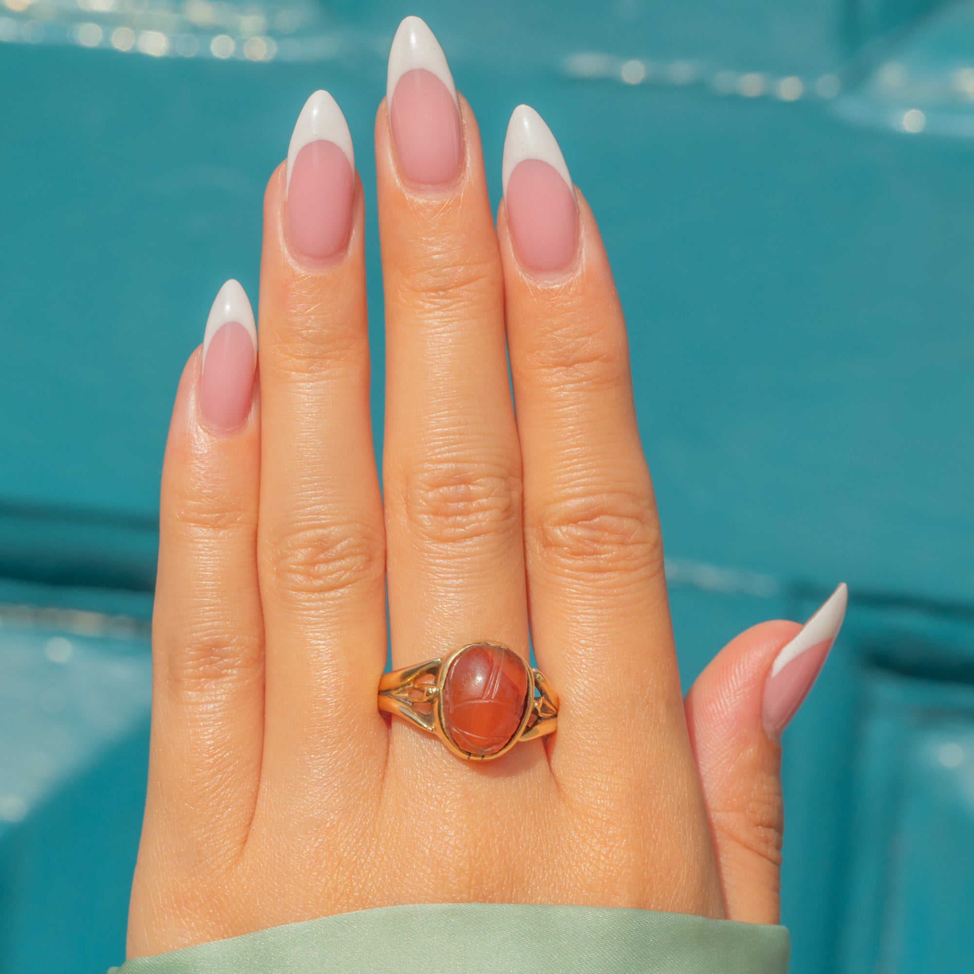 18ct Gold Archaelogical Revival Agate Scarab Ring
