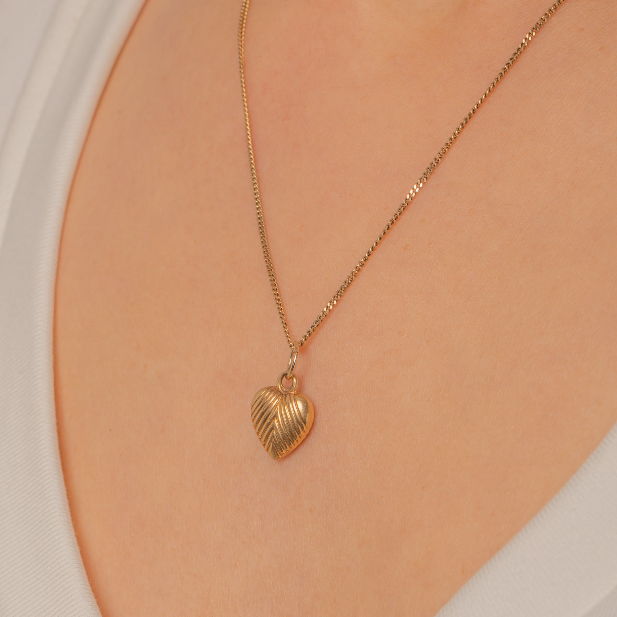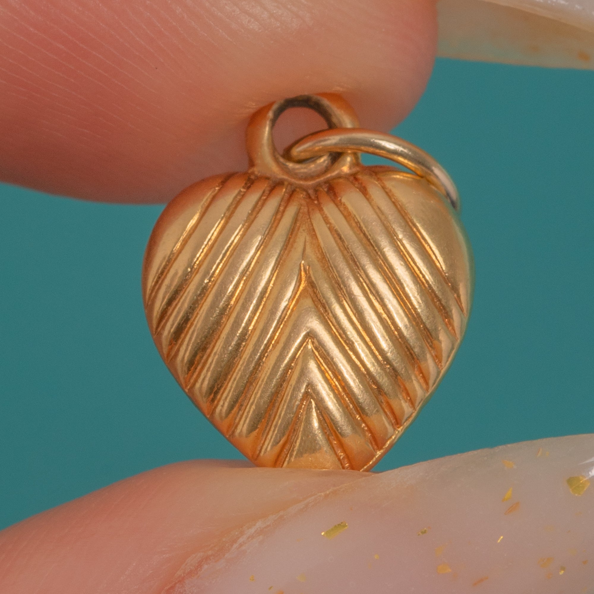 Sweet and timeless, this Victorian 18ct Gold heart pendant is adorned with crisp chevron ribbing and a softly puffed profile that catches the light beautifully. Its bright polished finish enhances the texture, creating a refined yet playful glow.