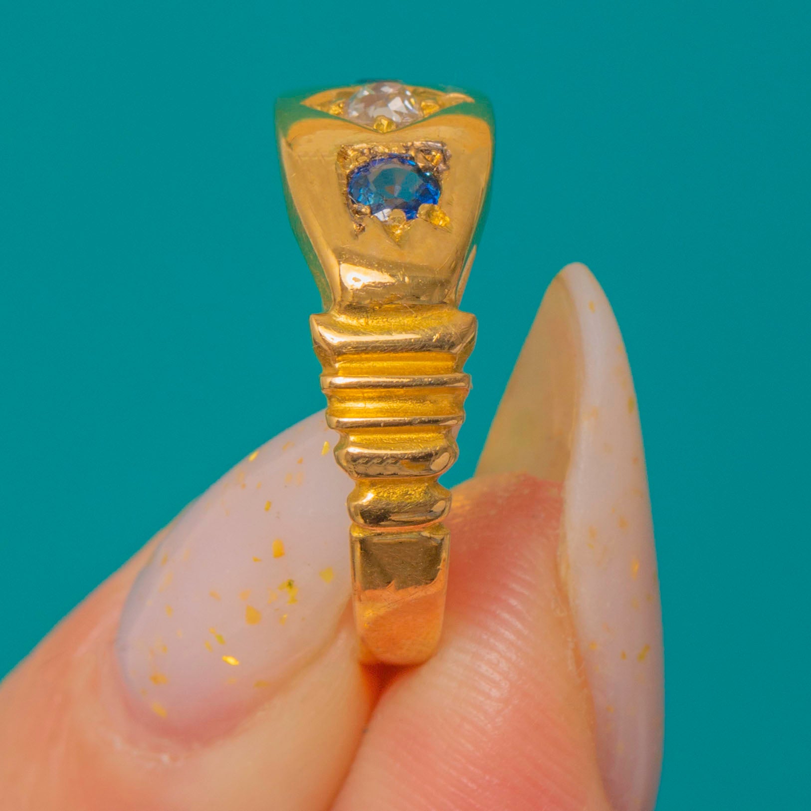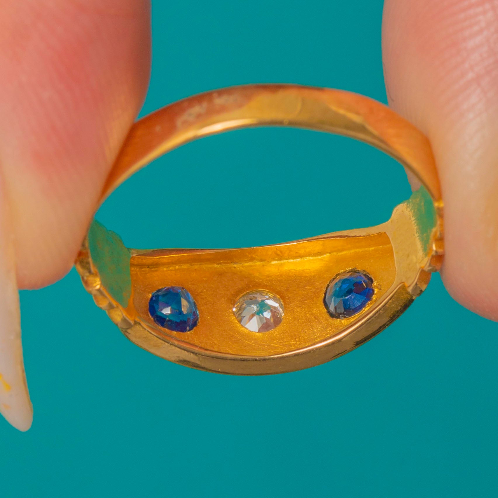 18ct Gold Sapphire Diamond Three Stone Gypsy Ring c.1889