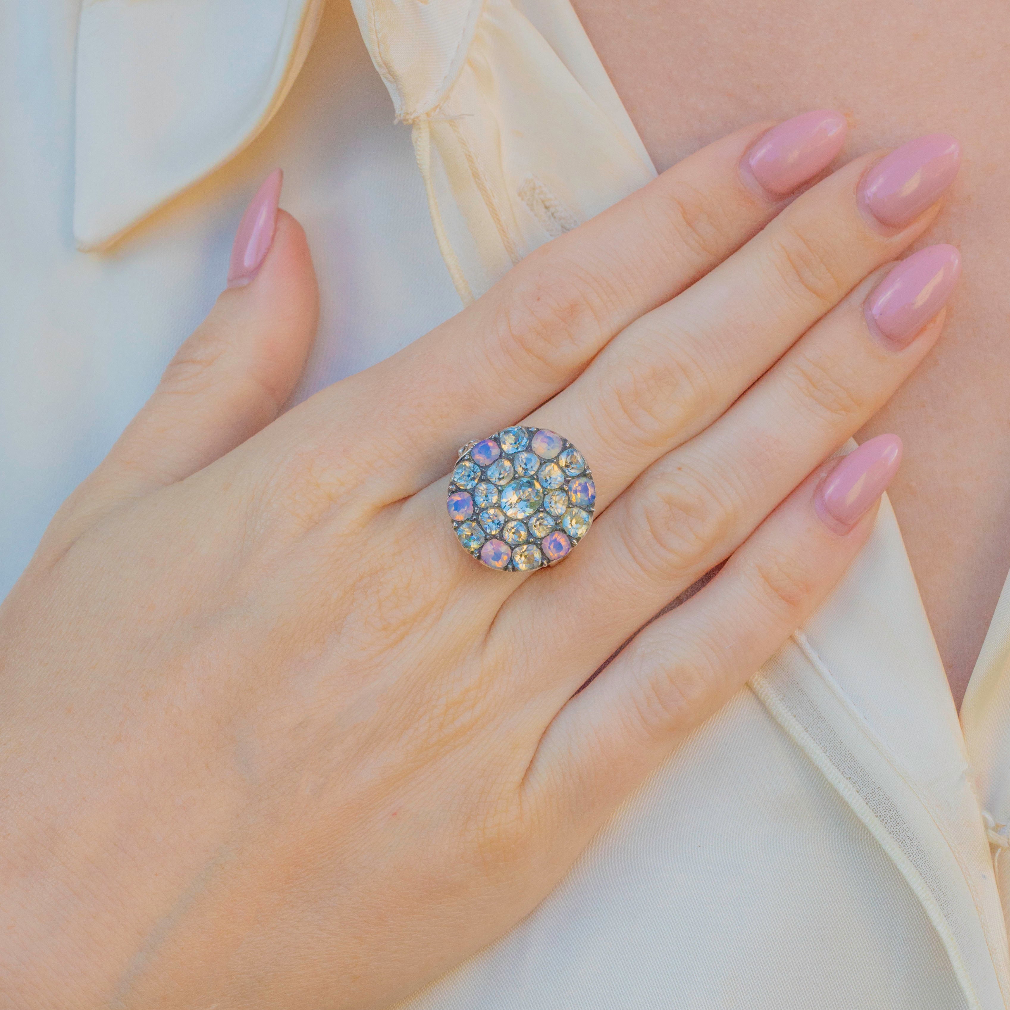 This antique cluster ring would have originally been a button in the Georgian era and has been given new life as a ring likely over a hundred years ago.