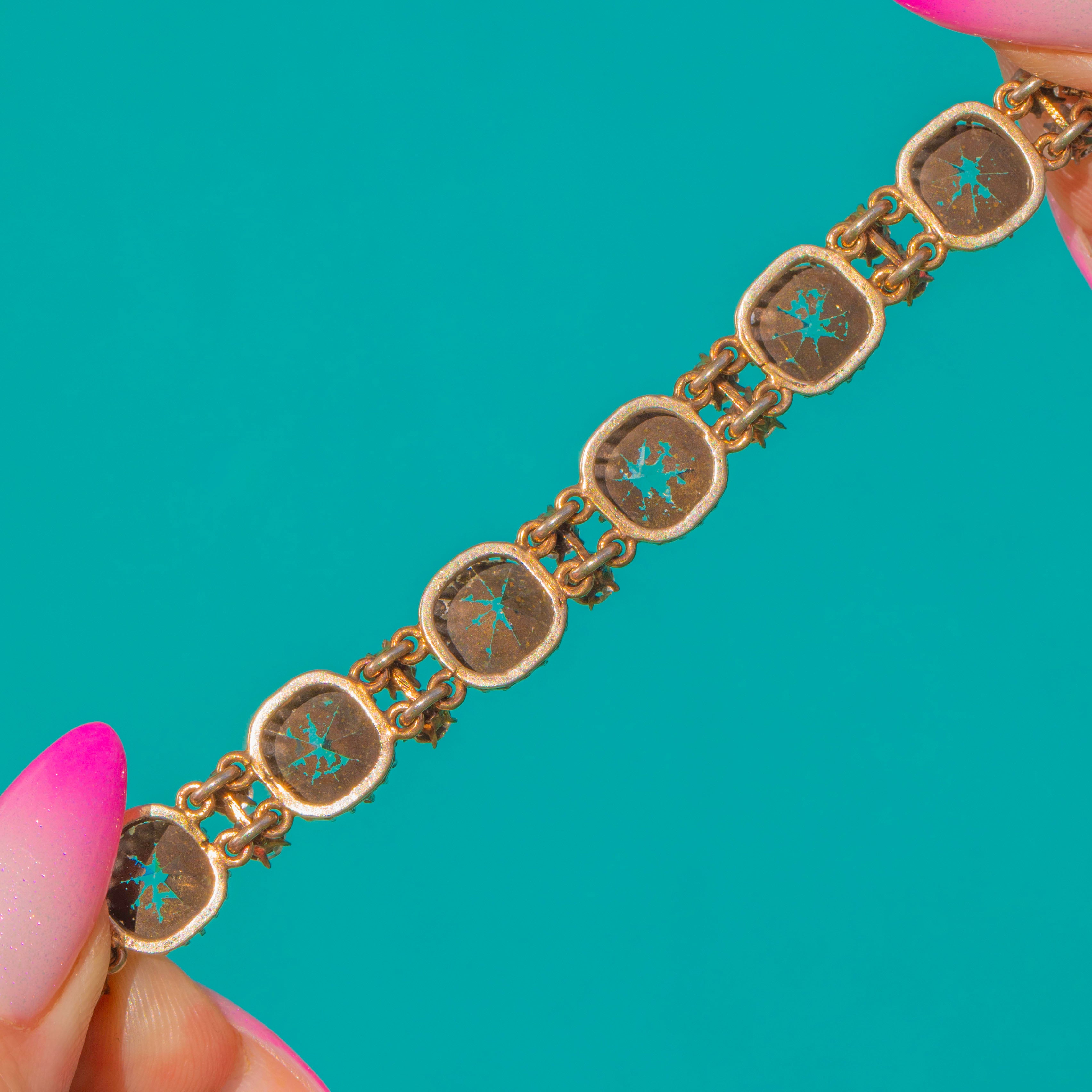 Classic and beautifully wearable, this 19th-century treasure embodies the effortless glamour of the period. Its graduated design flatters the wrist and transitions seamlessly from day to evening—an exquisite piece for lovers of antique elegance.