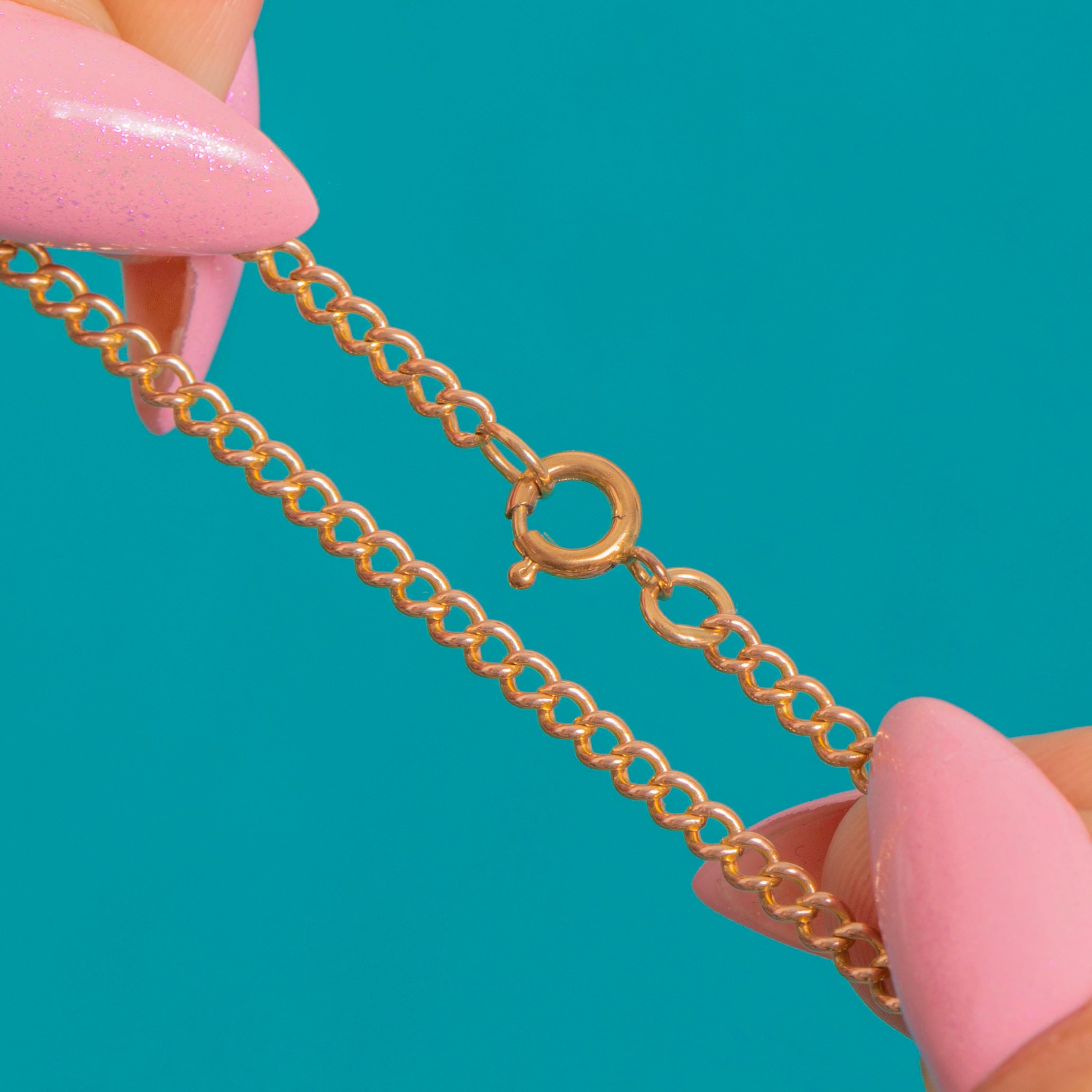 A timeless Vintage essential, this 9ct Gold curb chain brings effortless polish to every look. Its uniformly machined links lie beautifully flat, catching the light with a sleek, glossy finish for a refined, minimalist silhouette.