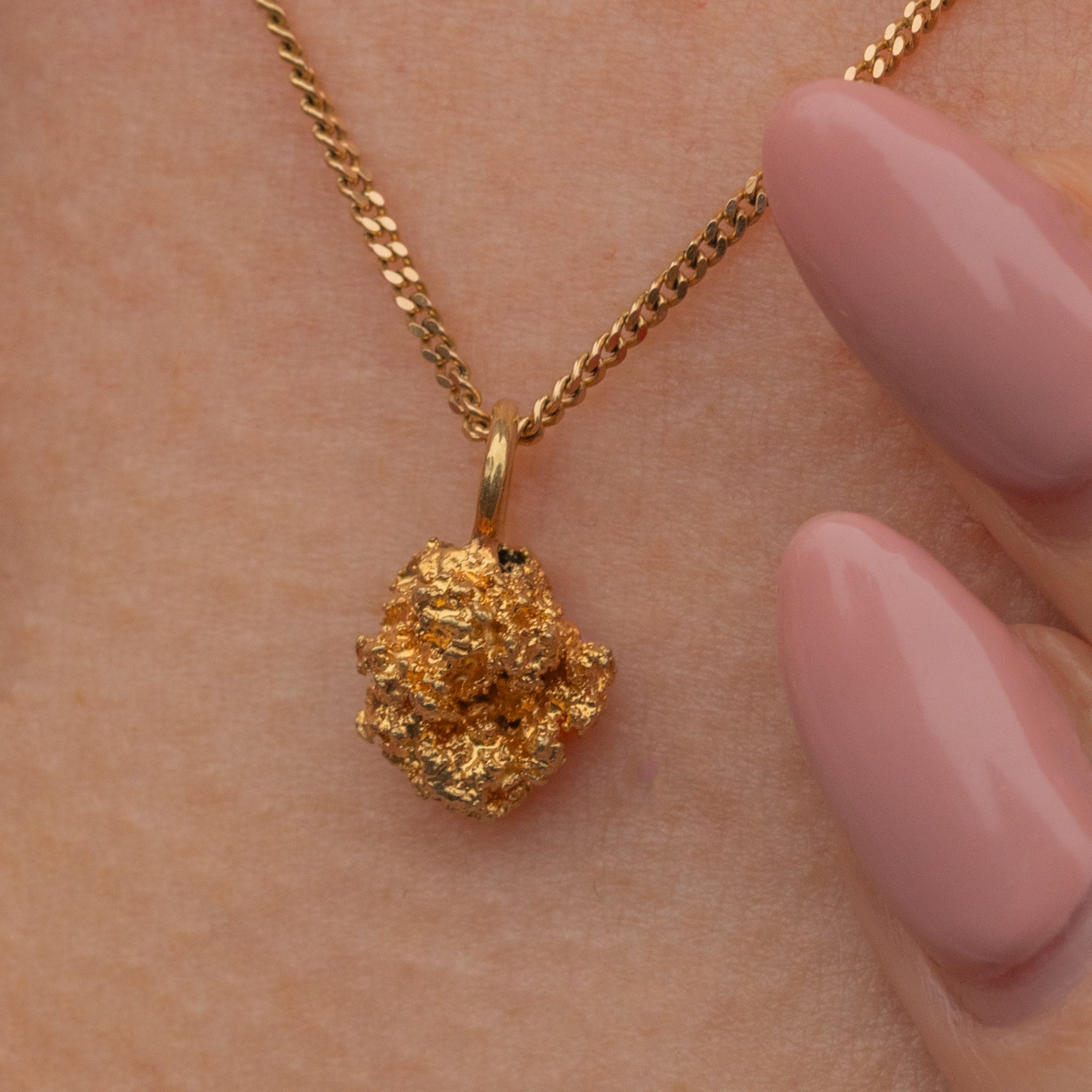 Add some organic form to your neck stack with this 22ct Gold nugget charm! Symbolic of the Californian Gold rush from 1848 to 1855, the Gold nugget is a reminder of the craze caused by the discovery of Gold by James W. Marshall.