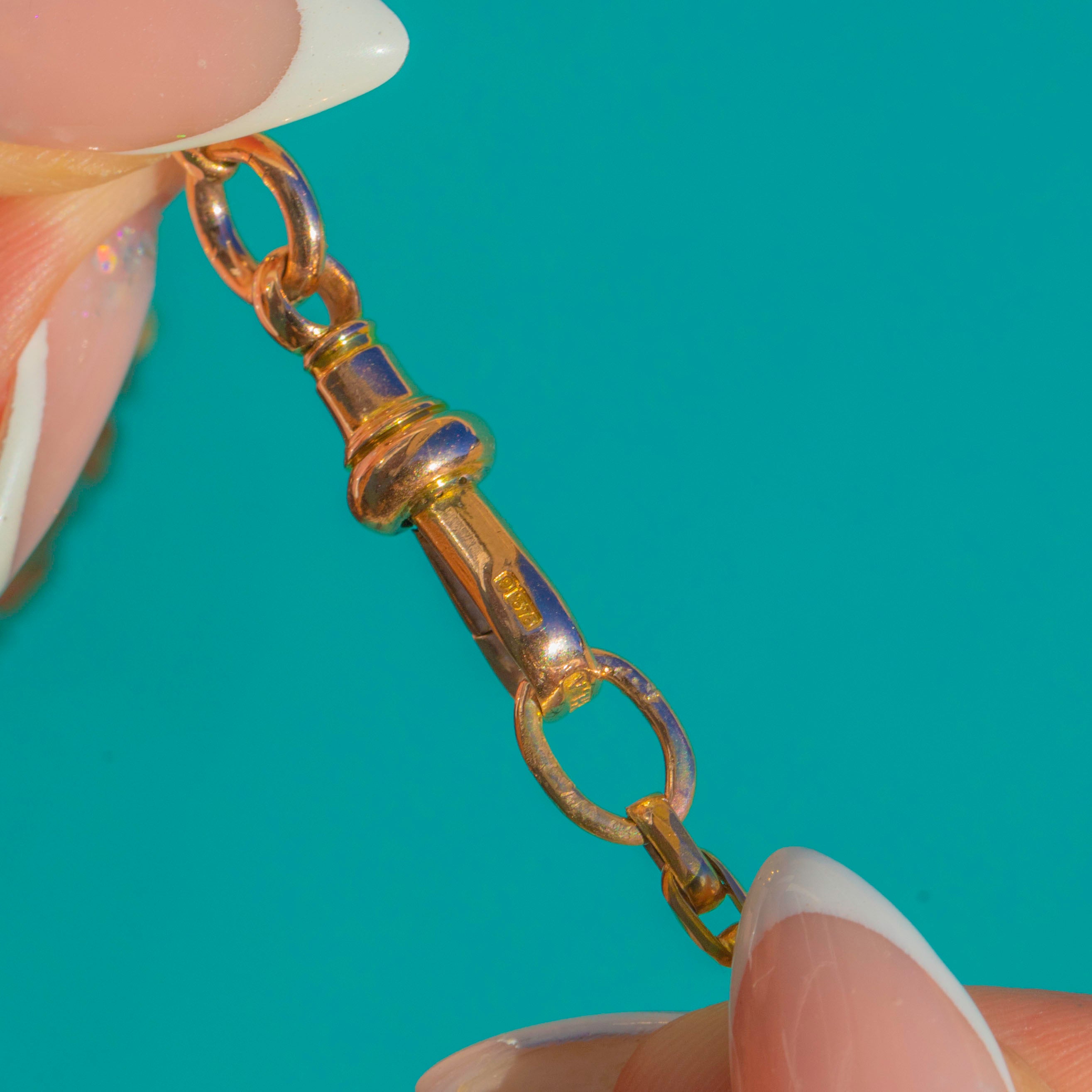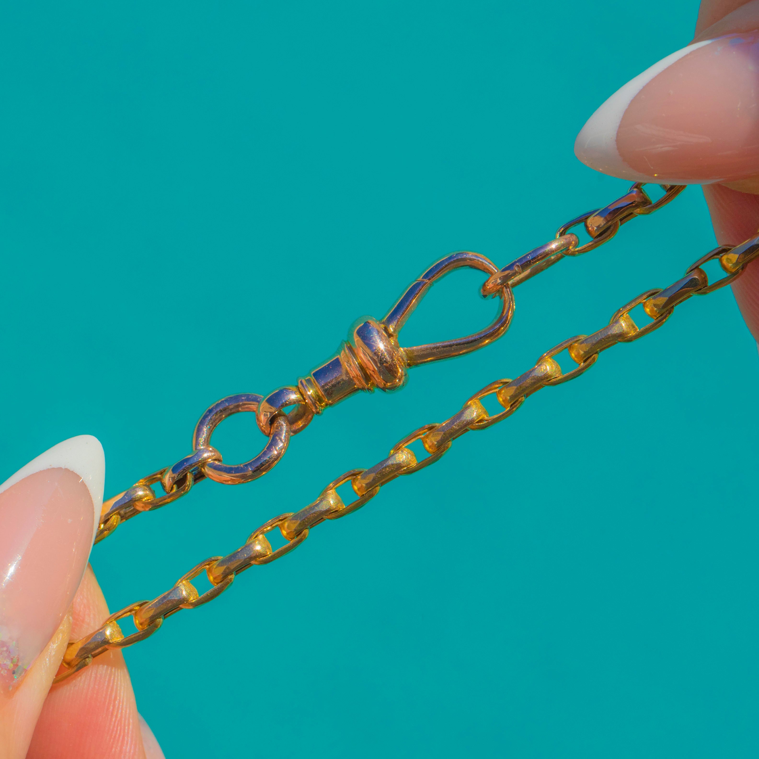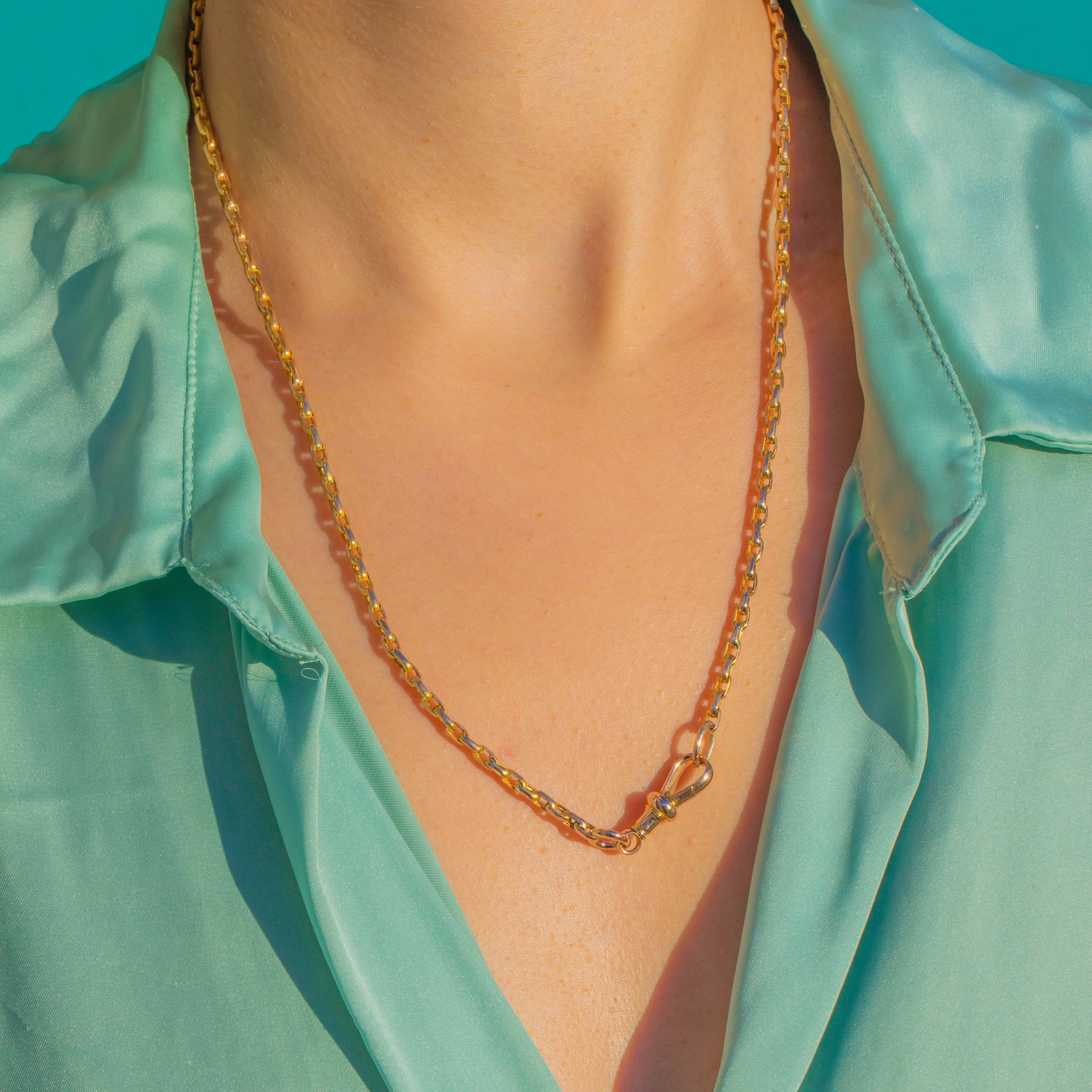 An elegant Edwardian staple, this 9ct Gold belcher chain is the perfect everyday staple. The softly faceted links catch the light beautifully and have a fluid drape. Its warm, lustrous finish pairs effortlessly with everything from a crisp white shirt to evening silk.