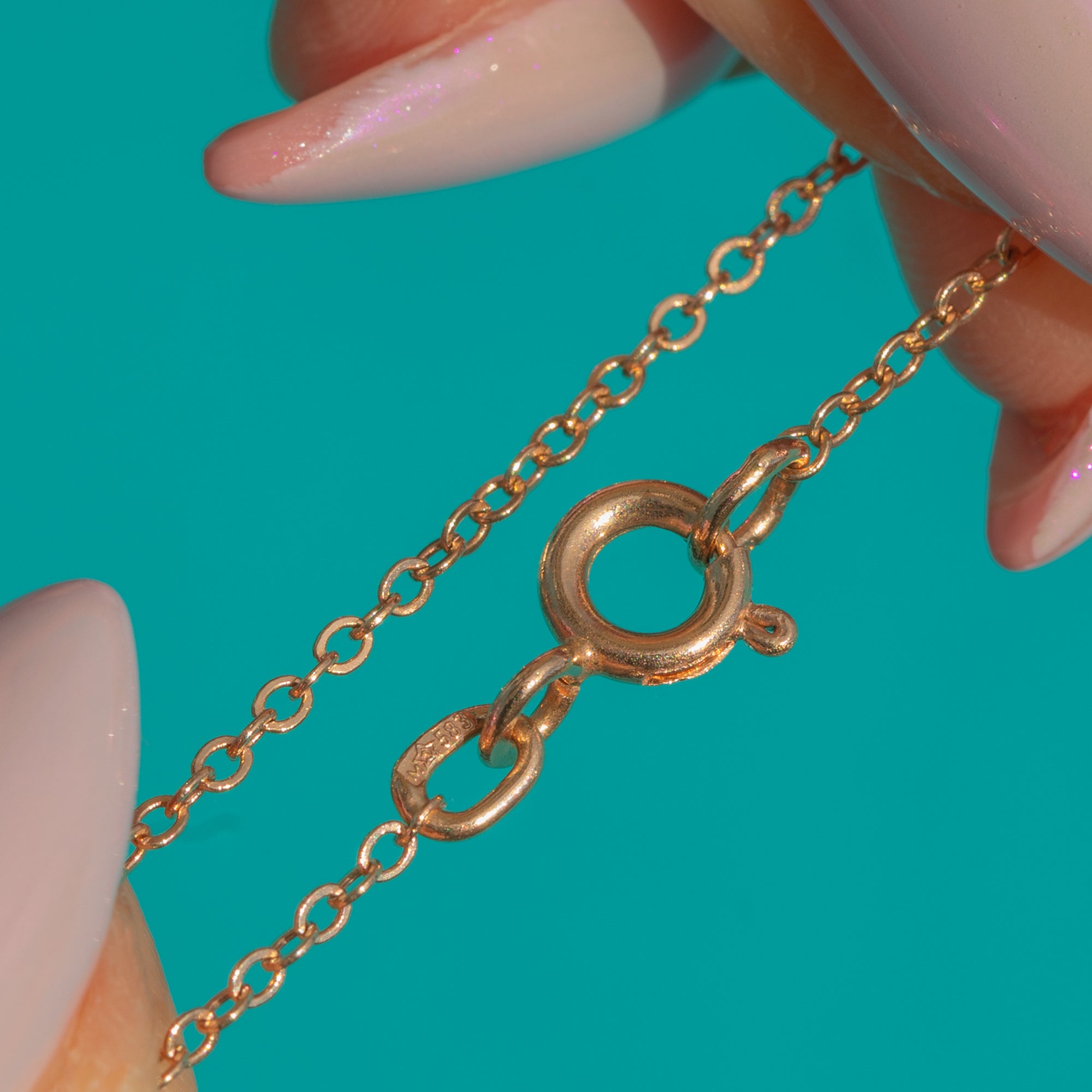 This elegant 14ct Gold chain is a versatile vintage treasure. Measuring 26" in length, its fine 1.5mm links create a delicate silhouette, making it perfect for layering with other chains or showcasing a favourite pendant.