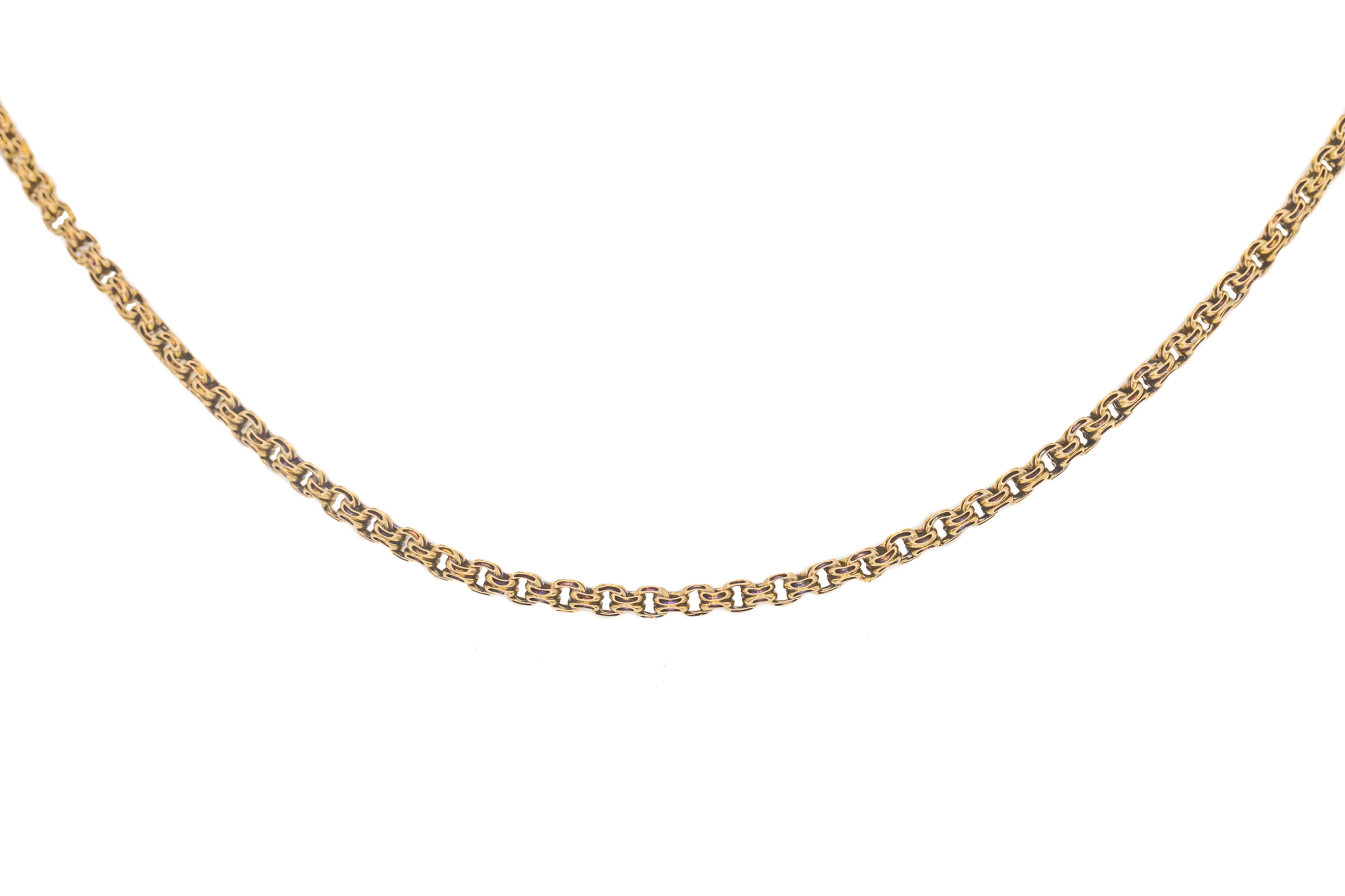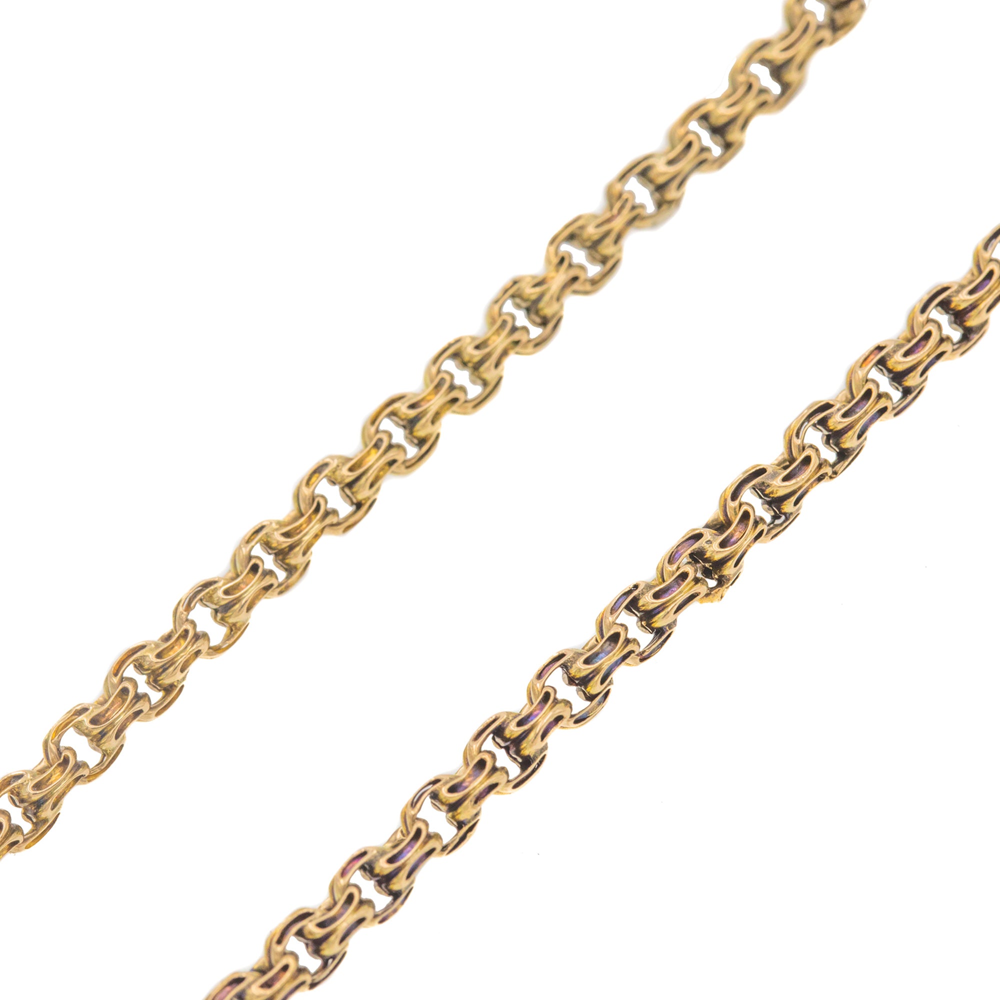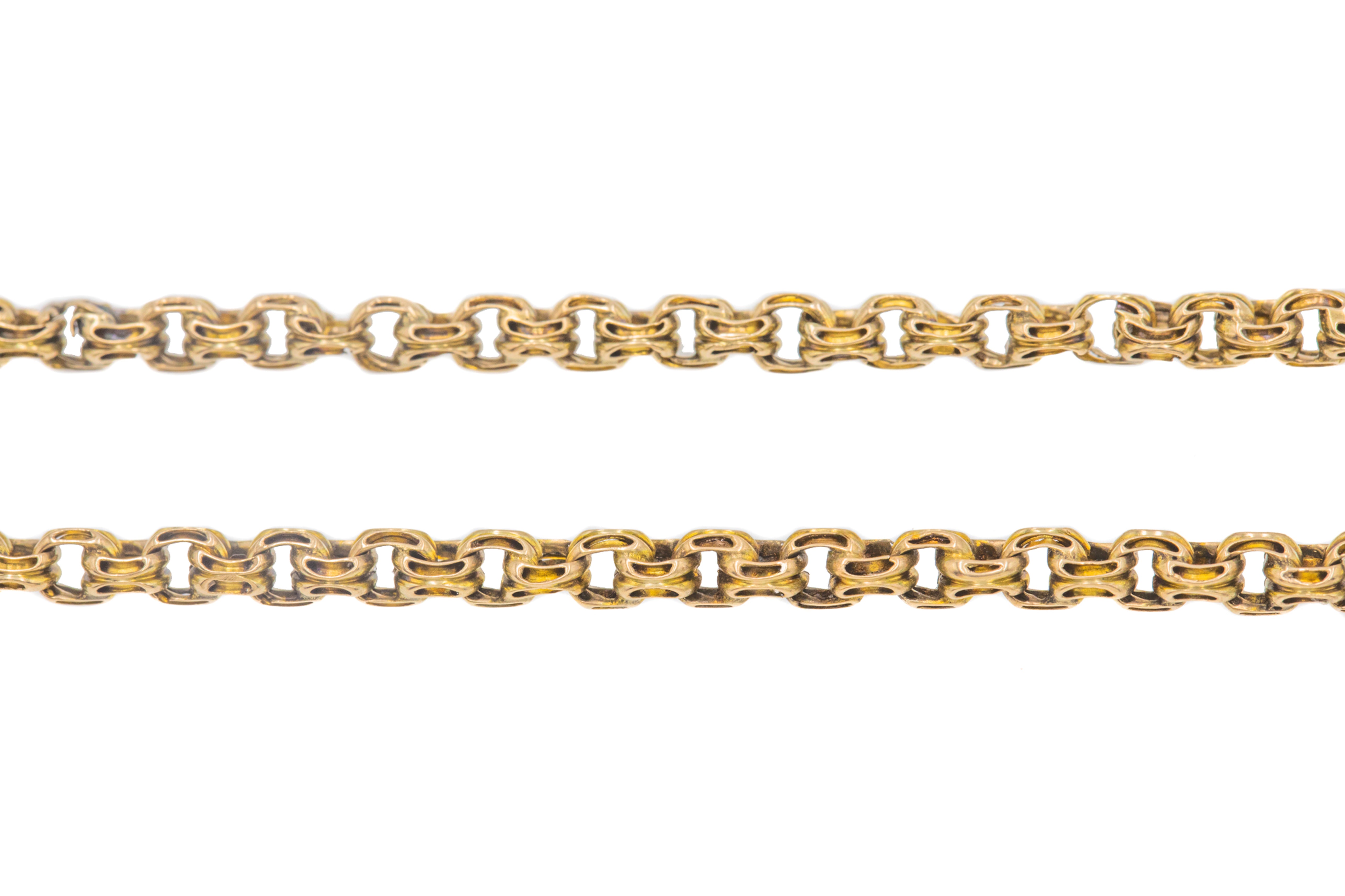 EXCELLENT. This antique 9ct Gold longuard chain is in wonderful condition for her age. Her links are all securely attached for your peace of mind, and there is no clasp to worry about. She'd look great stacked alongside other Gold chains!