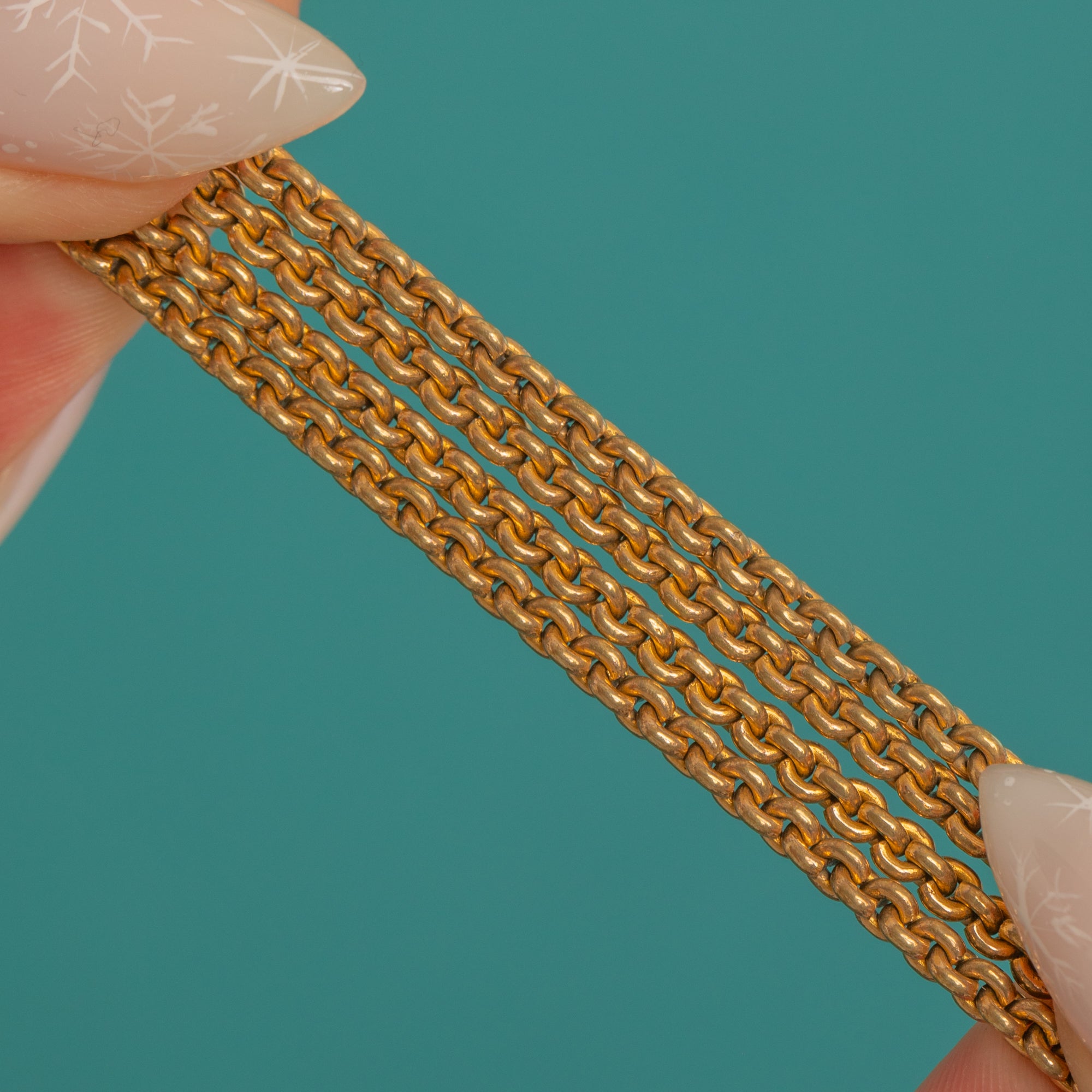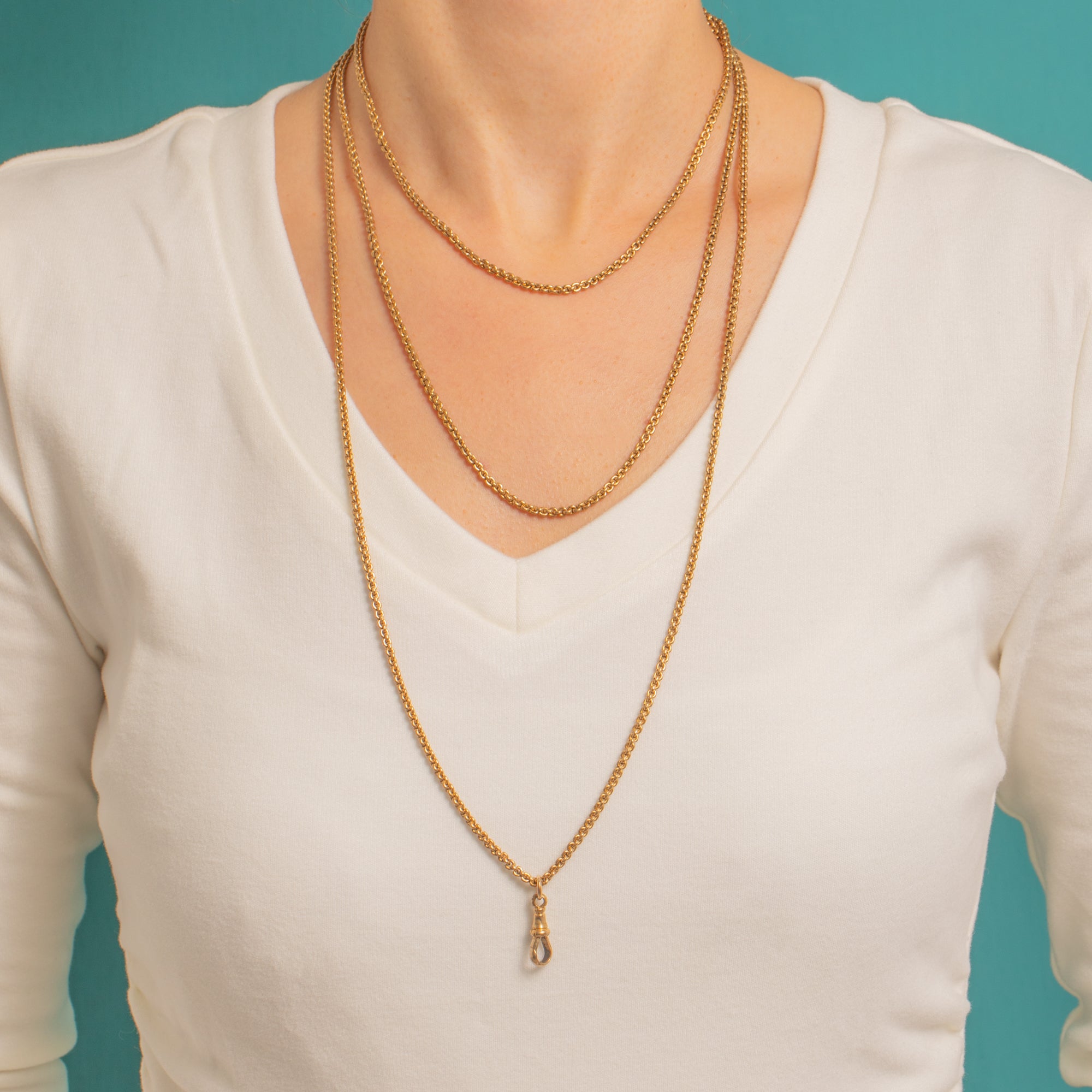 Wear it long, doubled or tripled, and use the dog-clip to add your favourite lockets, fobs or pendants. With its mellow antique glow and satisfyingly substantial feel, this is a quintessential late-19th century chain that elevates every ensemble.