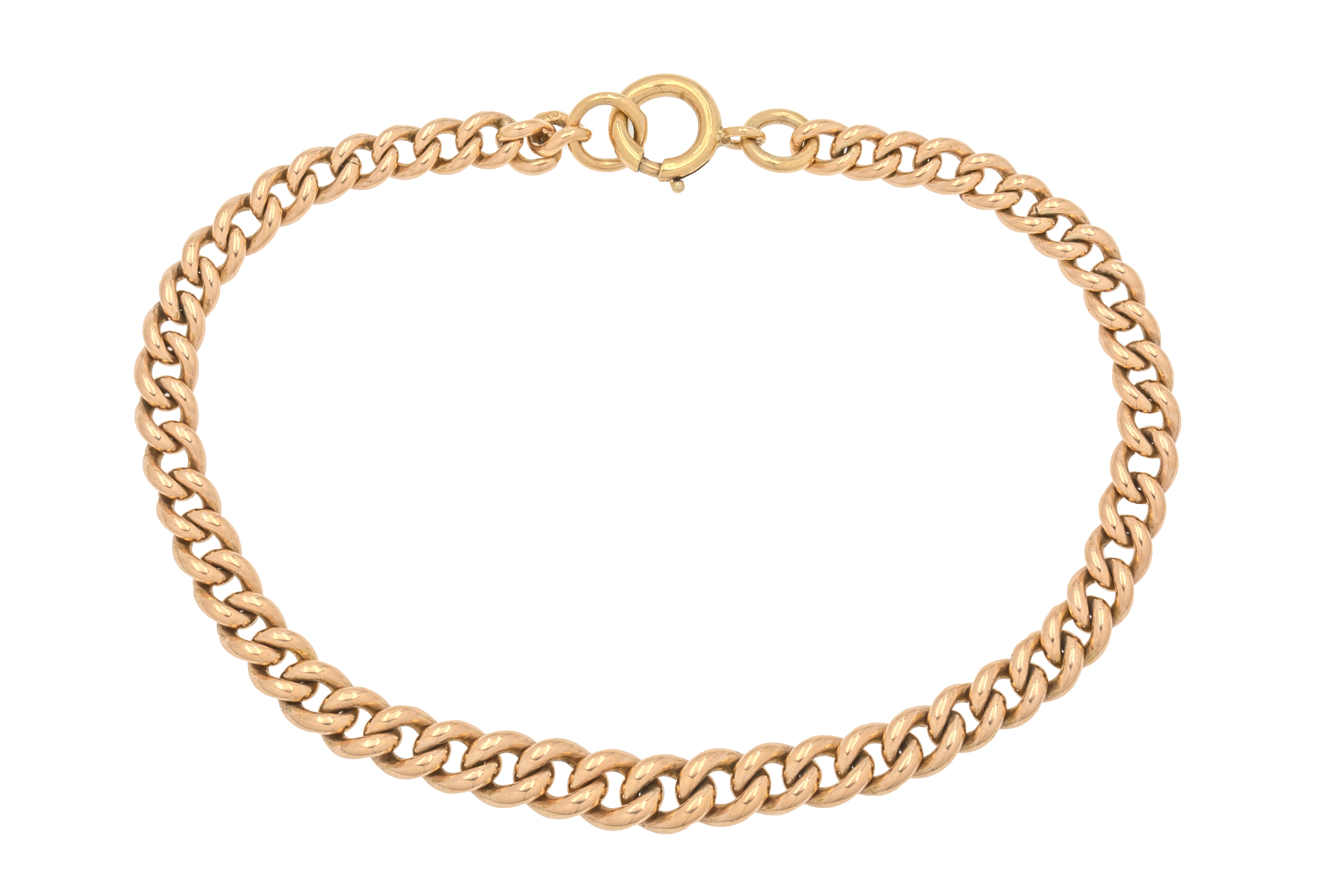 EXCELLENT. This 8" 9ct Gold graduating curb link bracelet is in excellent condition; there are no faults to note! Each of the links are connected securely, with the bolt ring in perfect working order allowing you to wear her confidently.