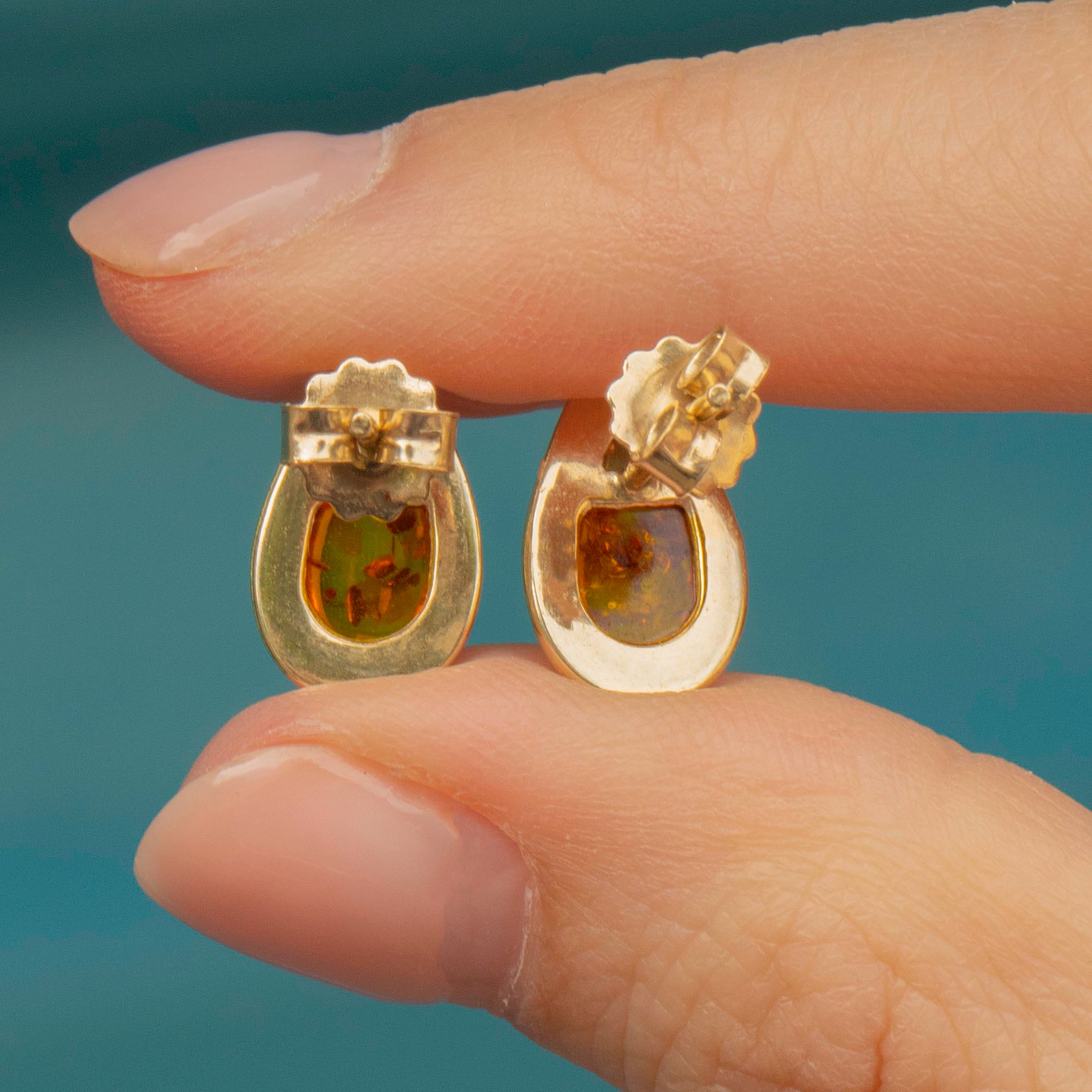 Akin to pools of marmalade with flickers of confetti at their core, these 9ct Gold Amber pear stud earrings will have no trouble brightening up your ear stack!
