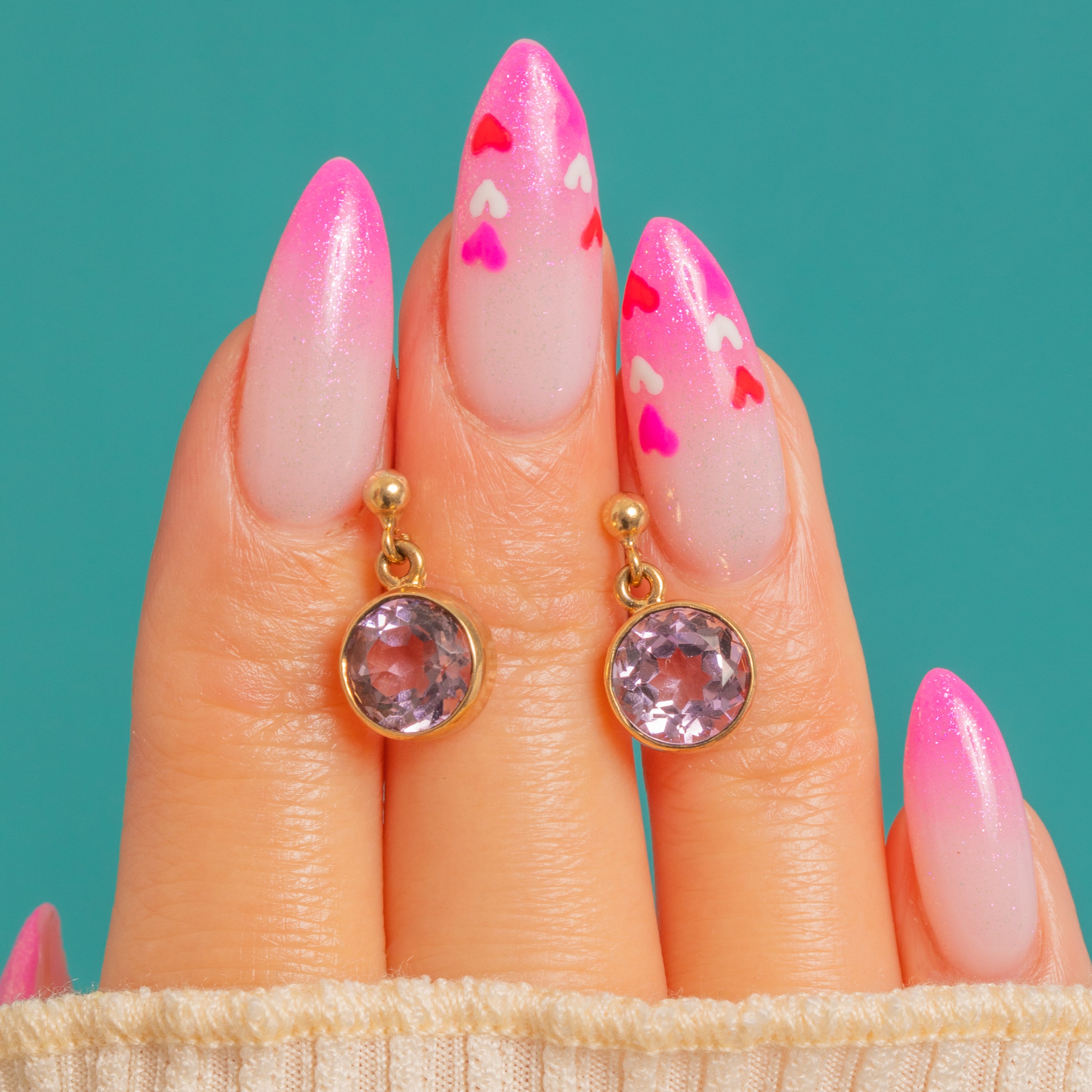 Hallmarked in Birmingham for 1994, this pretty pair totals approximately 2.40 carats of Amethyst, offering a delicate pop of colour perfect for everyday wear or a subtle evening accent. The articulated construction lends just the right touch of movement and sparkle.