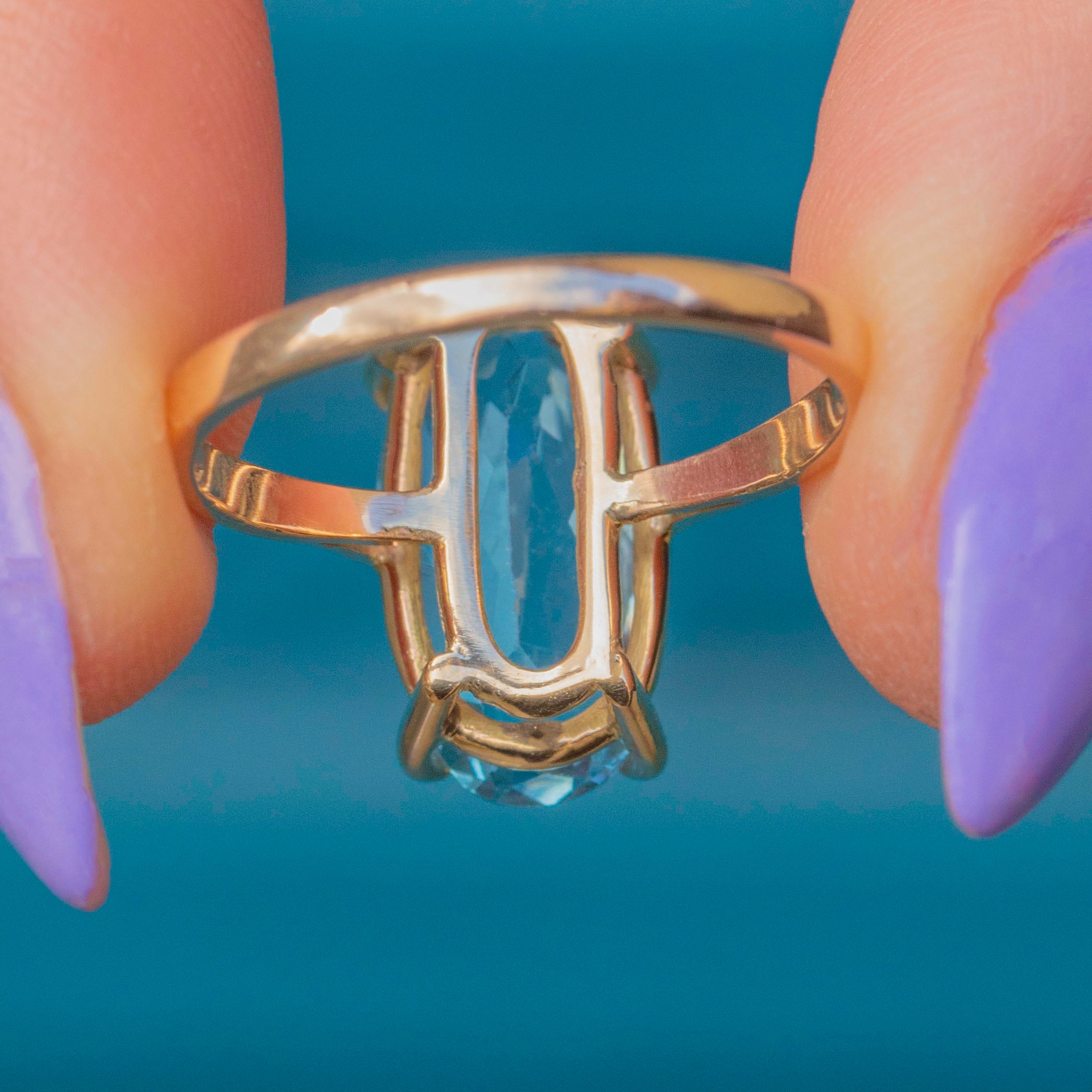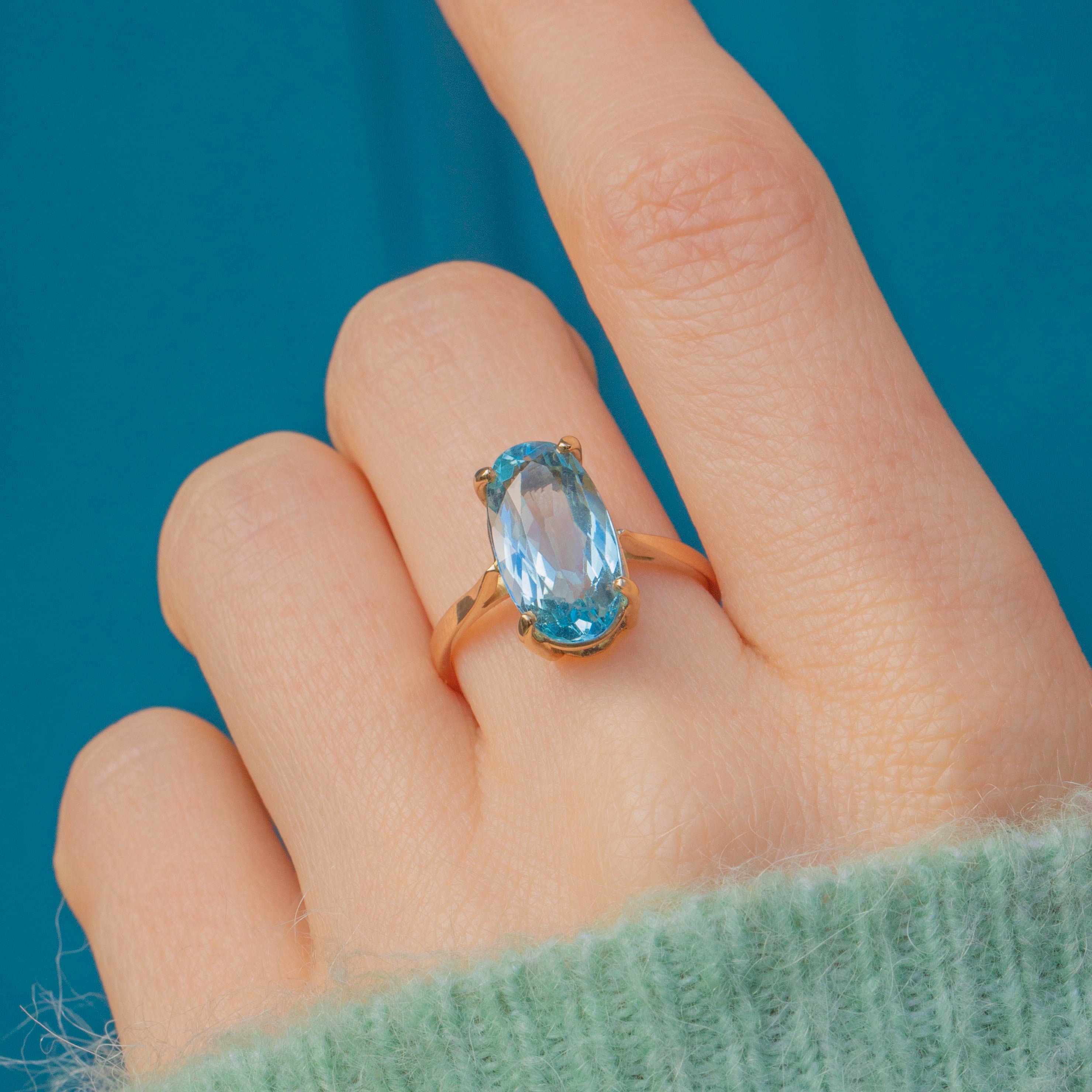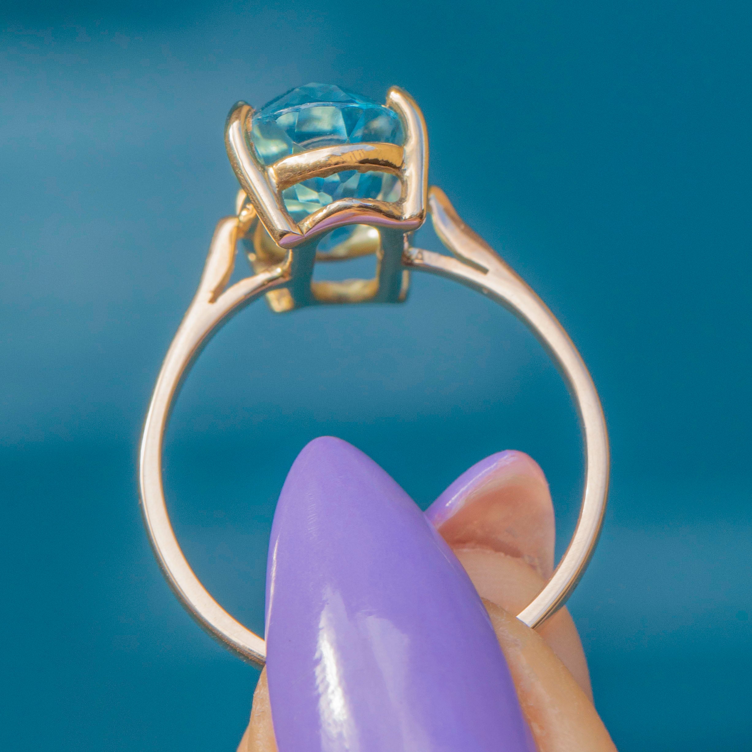The colour combination of 9ct Gold and icy blue makes a pretty pairing, and the claw settings frame the stone elegantly. This is a unique mid-century vintage solitaire ring to add to your collection!