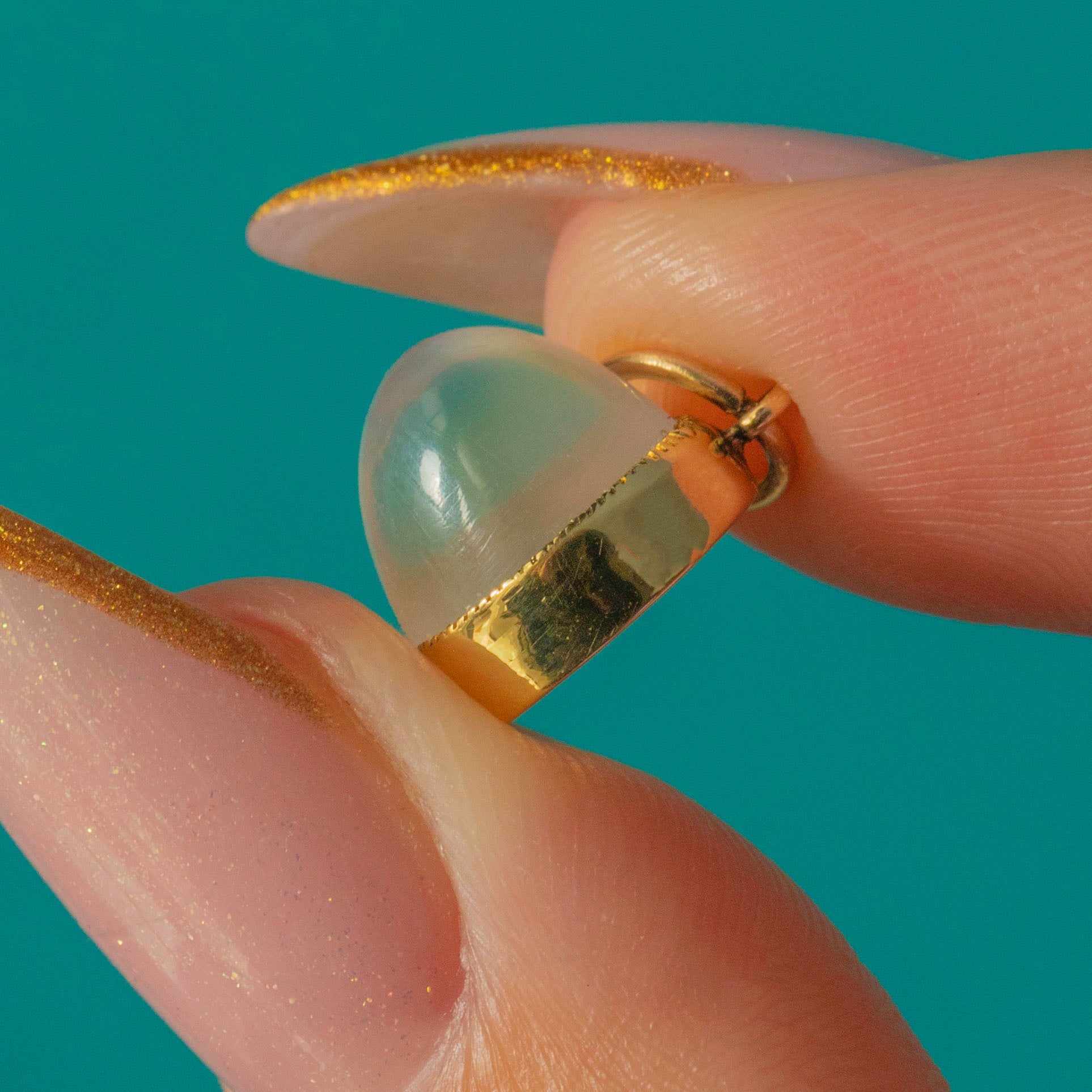 EXCELLENT: The Moonstone cabochon is smooth and glossy with no chips, cracks or notable abrasions, and displays lovely adularescence. The 9ct Gold bezel and jump ring are secure with only light surface wear consistent with age. A well-preserved antique pendant, ready to wear and enjoy.