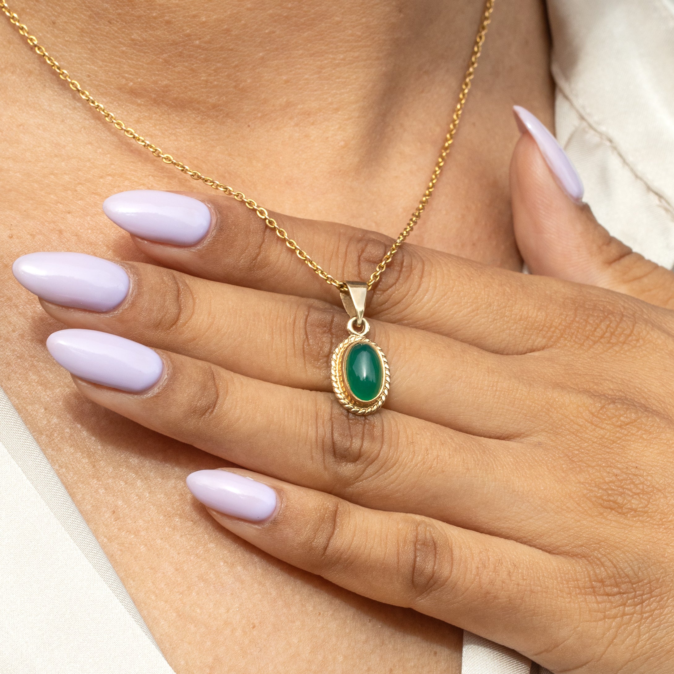 This 9ct Gold Chrysoprase charm will turn your friends green with envy! Her smooth Chrysoprase cabochon is filled with milky forest green hues swimming across her surface.