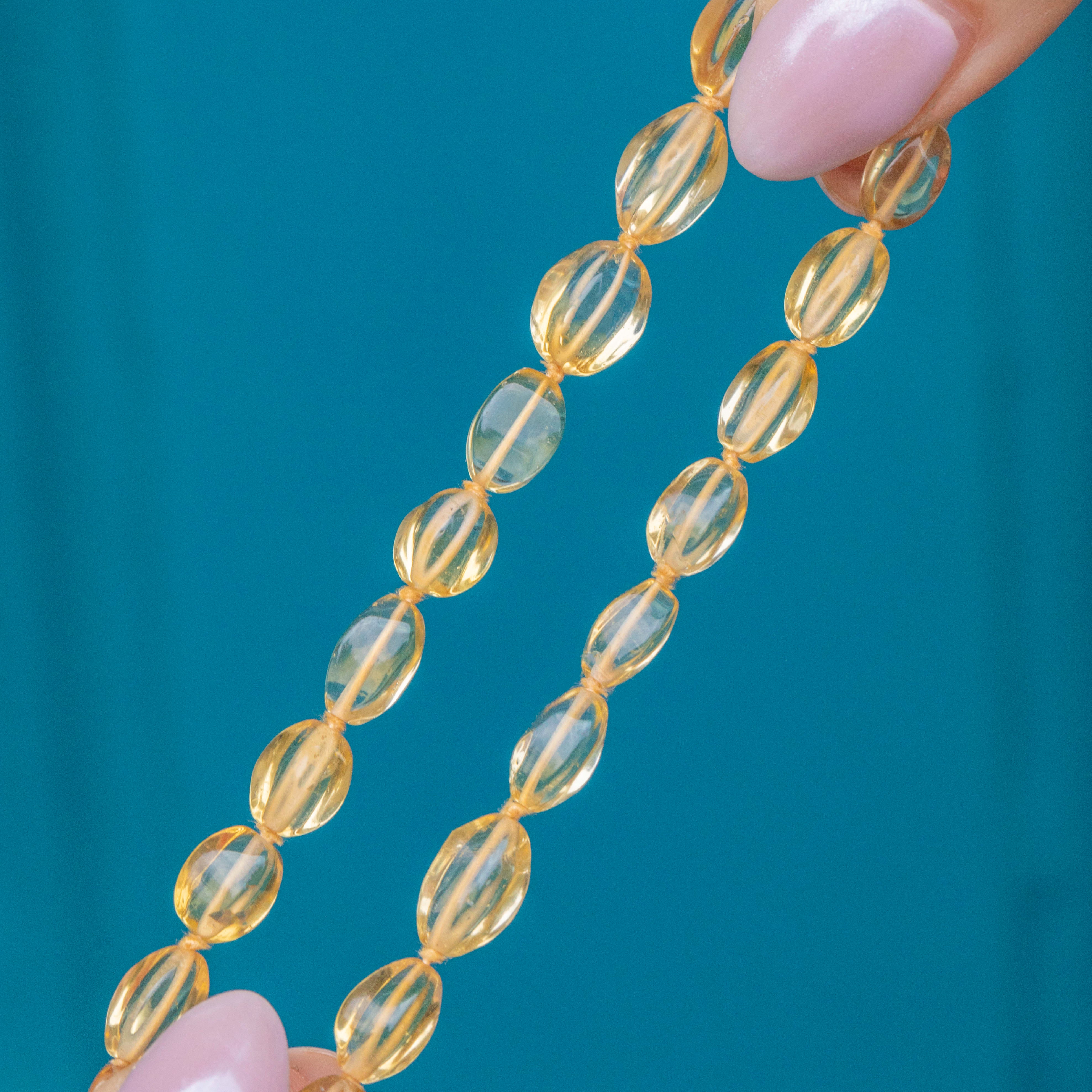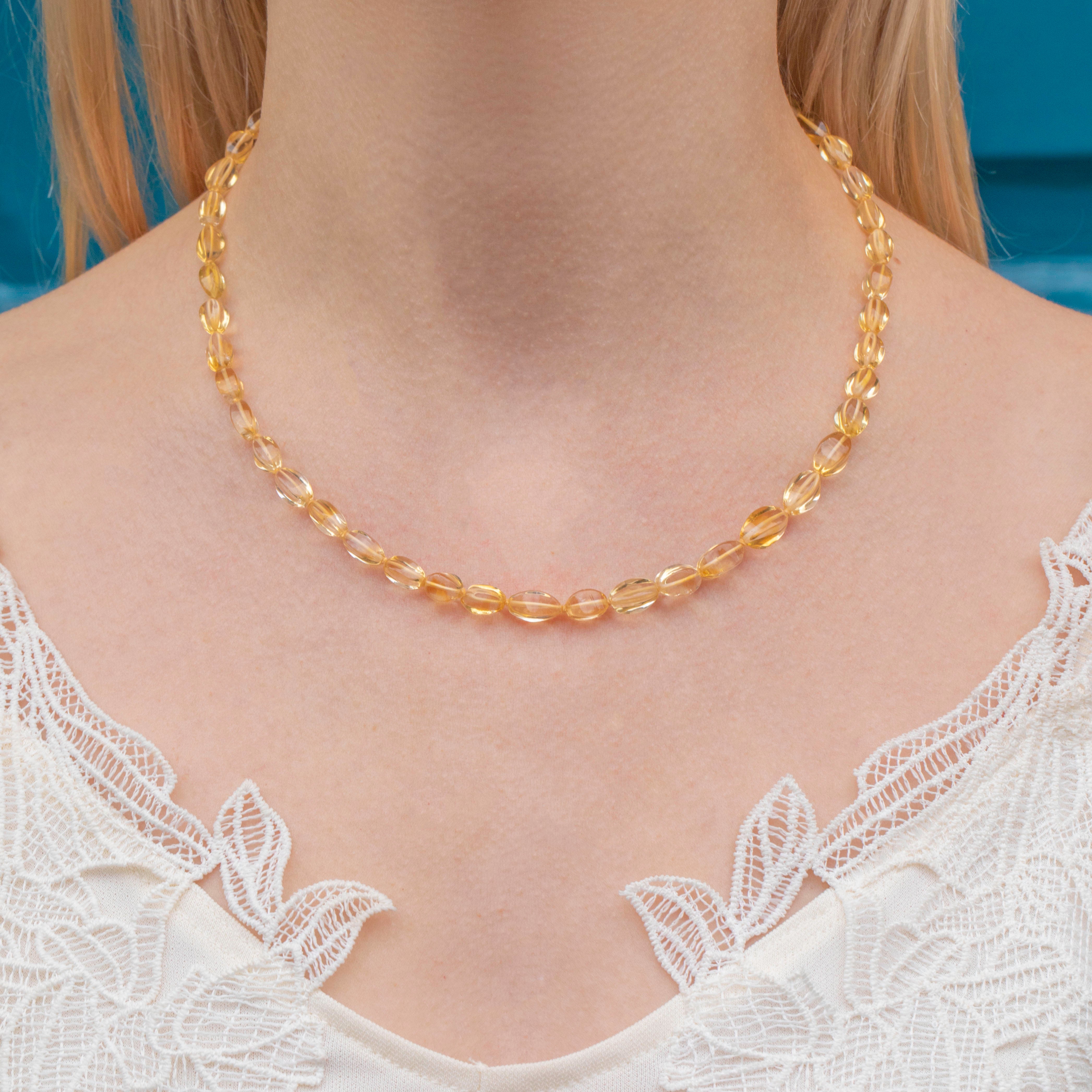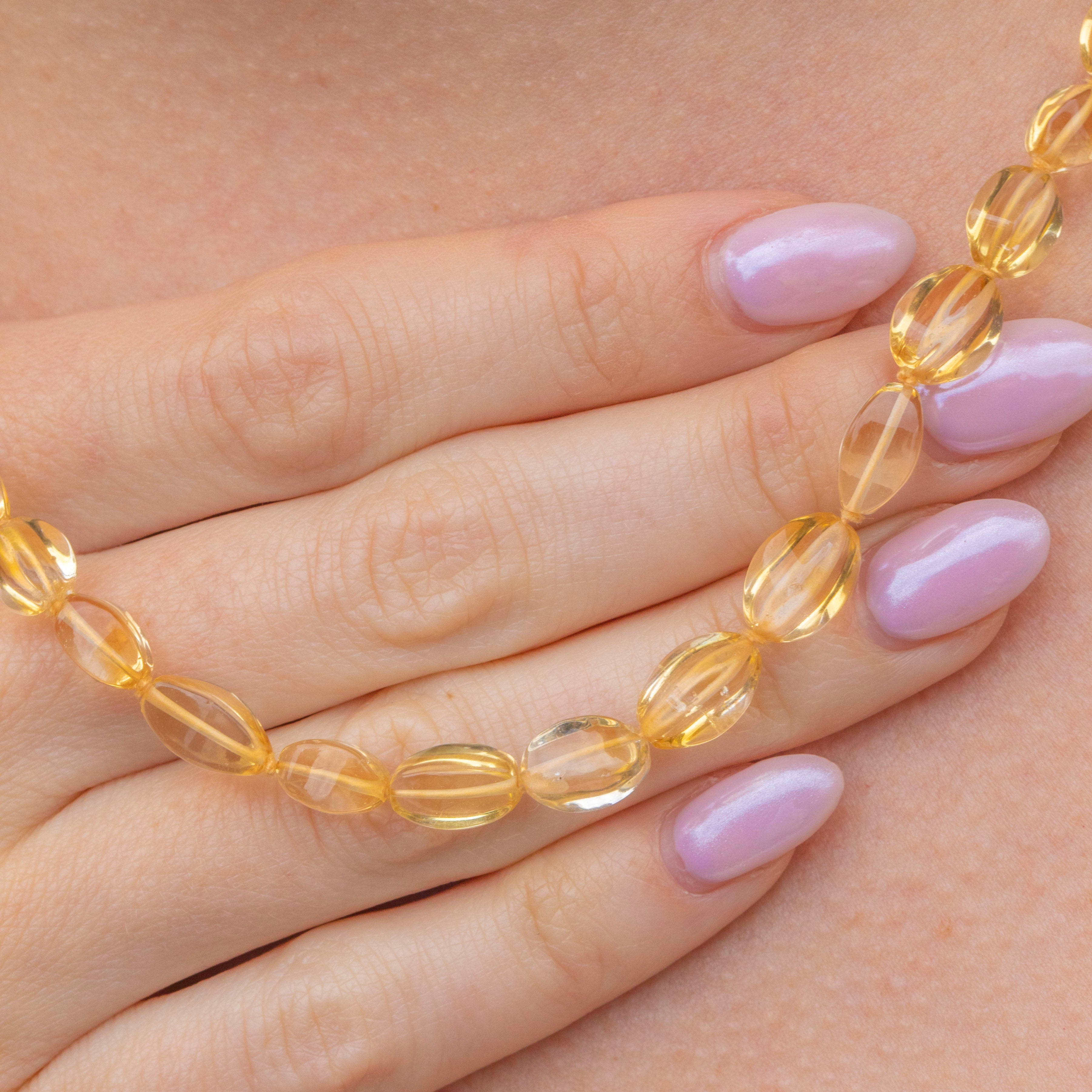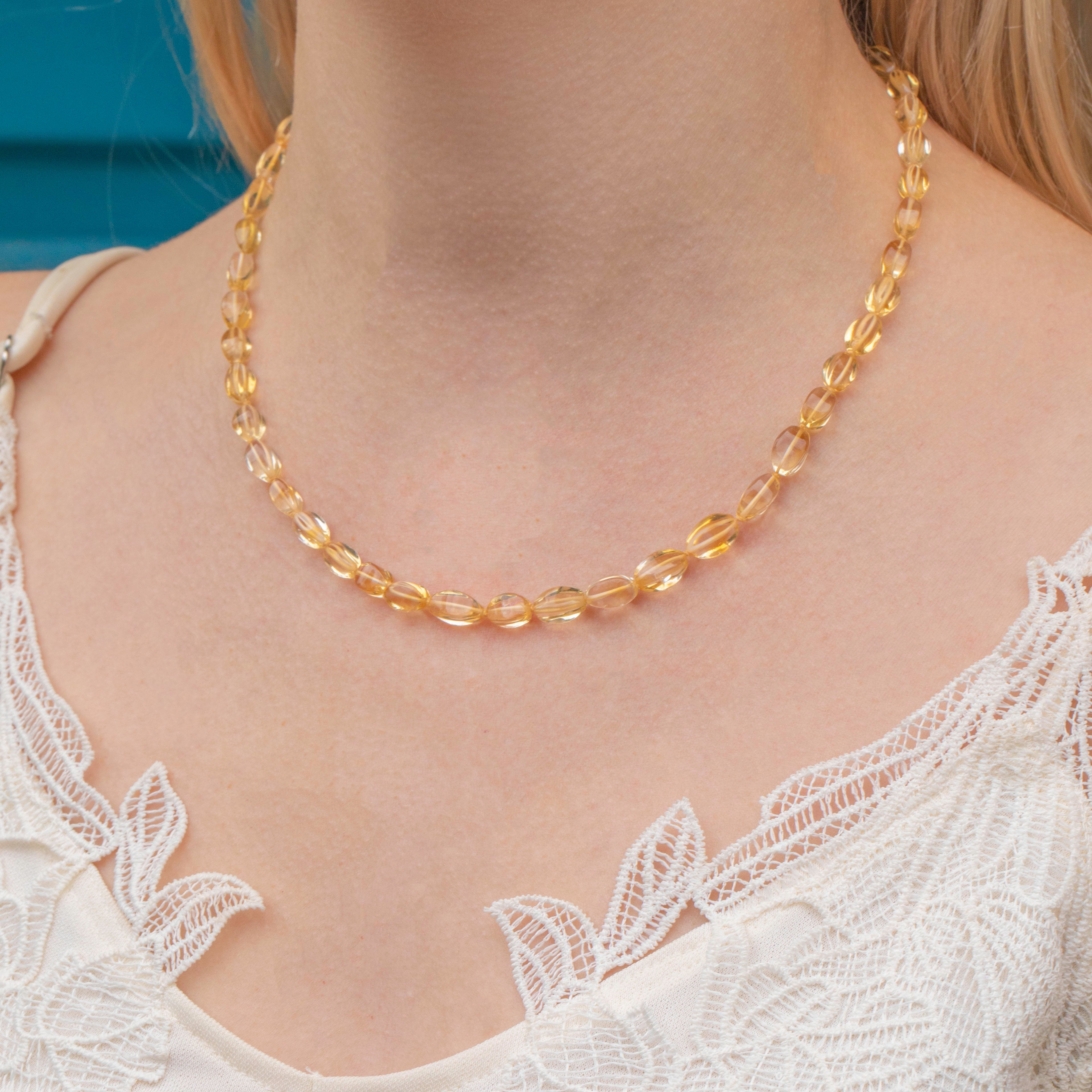 Bring summer fashion into autumn with this 9ct Gold Citrine beaded necklace! Flaunting a delectable row of hand-cut Citrines, boasting zesty lemon hues, this mid-century Citrine necklace will add a touch of zing to any attire you pair her with.