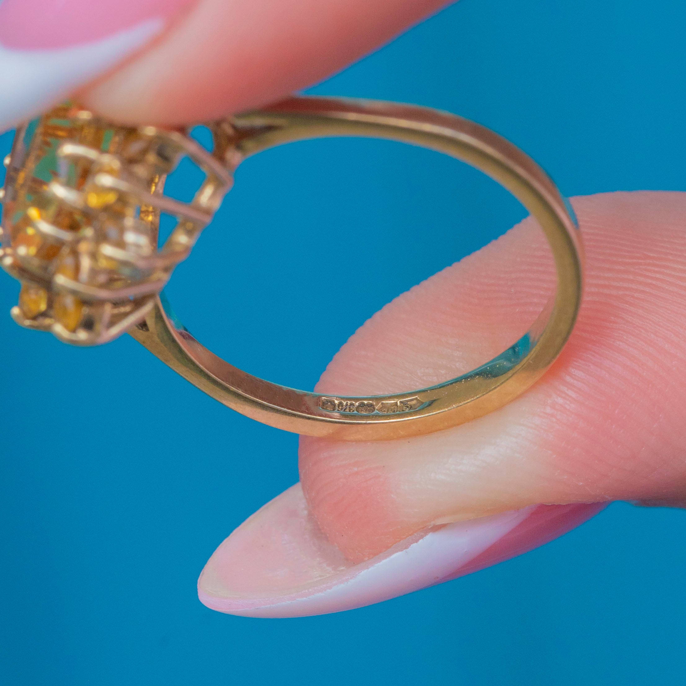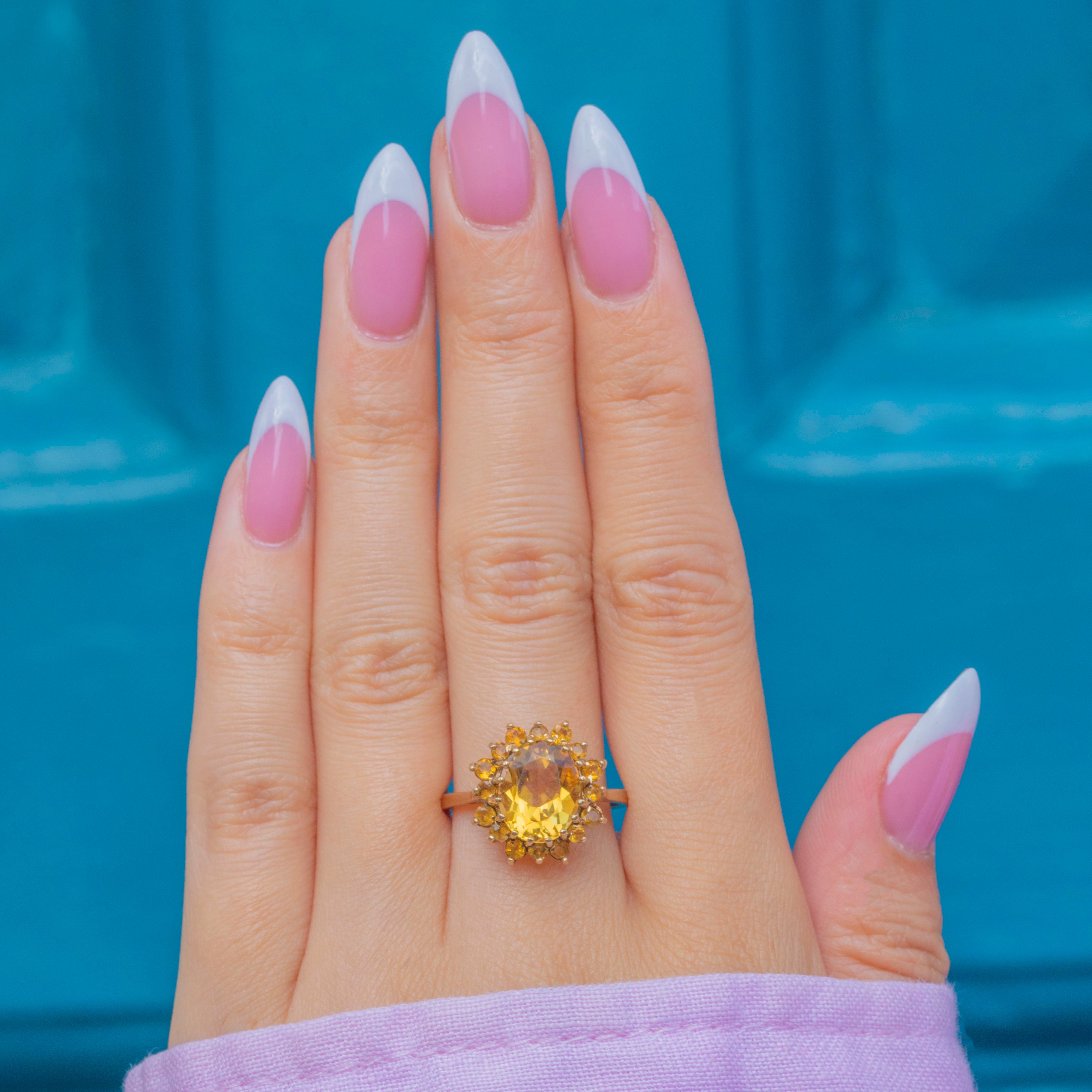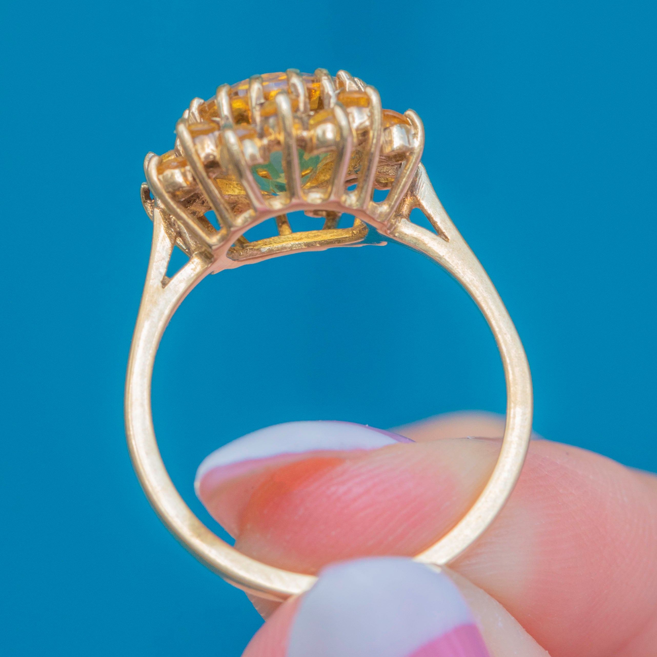 A bright and sunny piece, this vintage ring displays a large Citrine cluster boasting 2.00ct and pouring sweet honey nectar hues from its crisp facets.