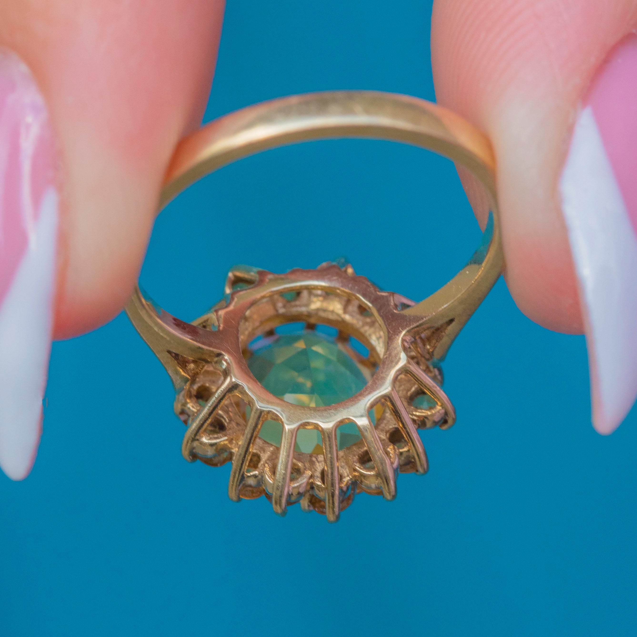 EXCELLENT: Each gemstone is radiant, free from any scuffs or nibbles and is secure within its settings. The Gold band is glossy and provides a comfortable wear, allowing you to wear this vintage ring with utmost confidence.